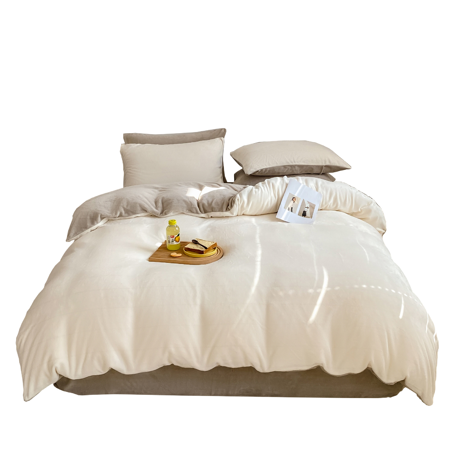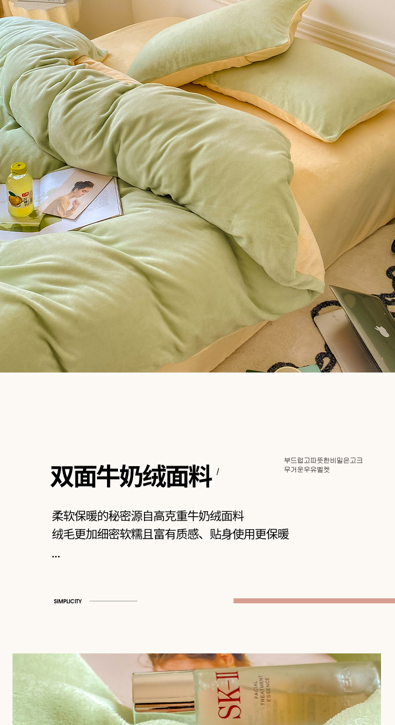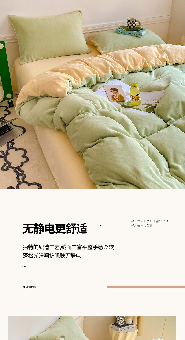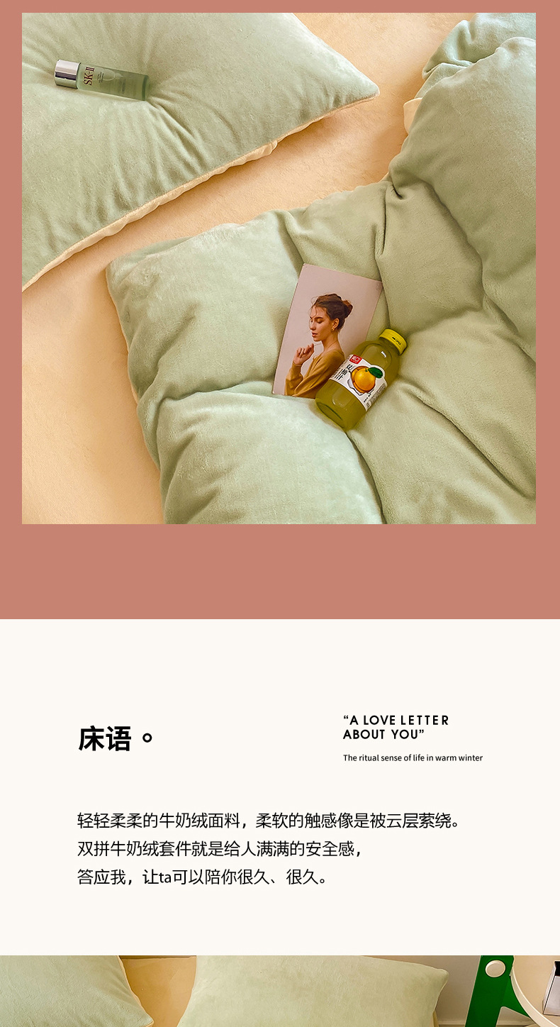 ins加厚牛奶绒A类四件套冬季法兰绒珊瑚绒被套被罩床笠宿舍三件套