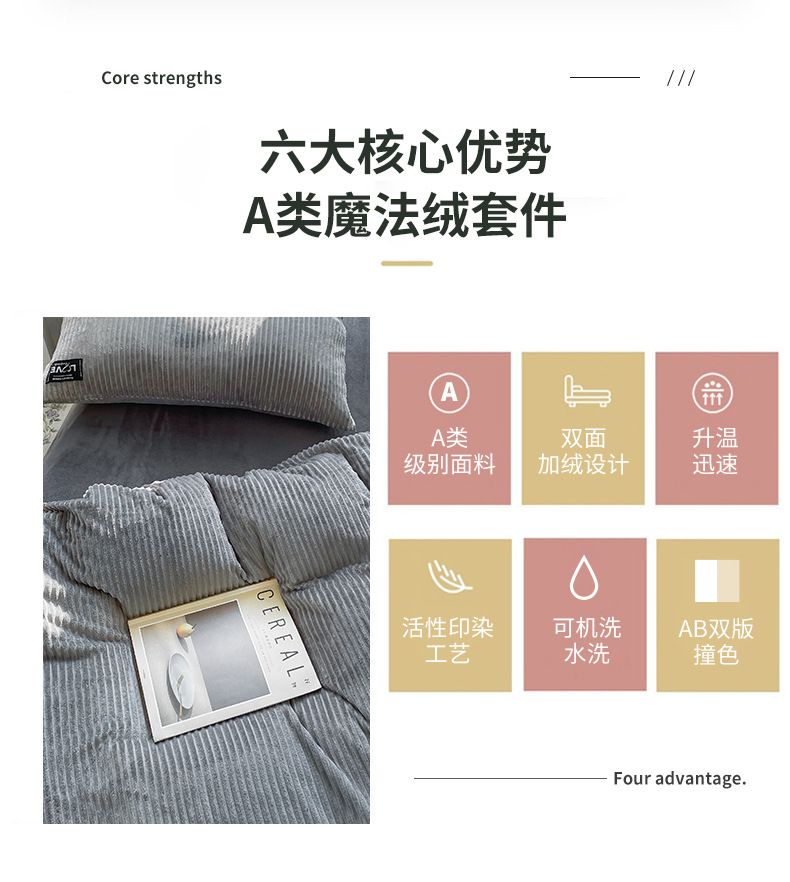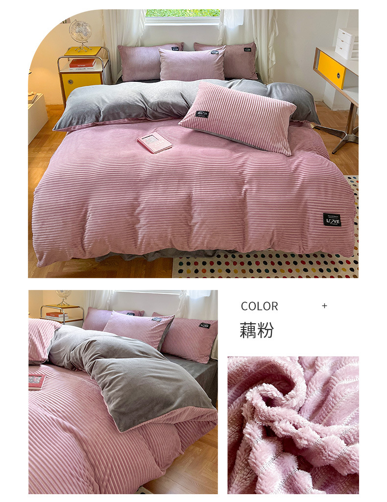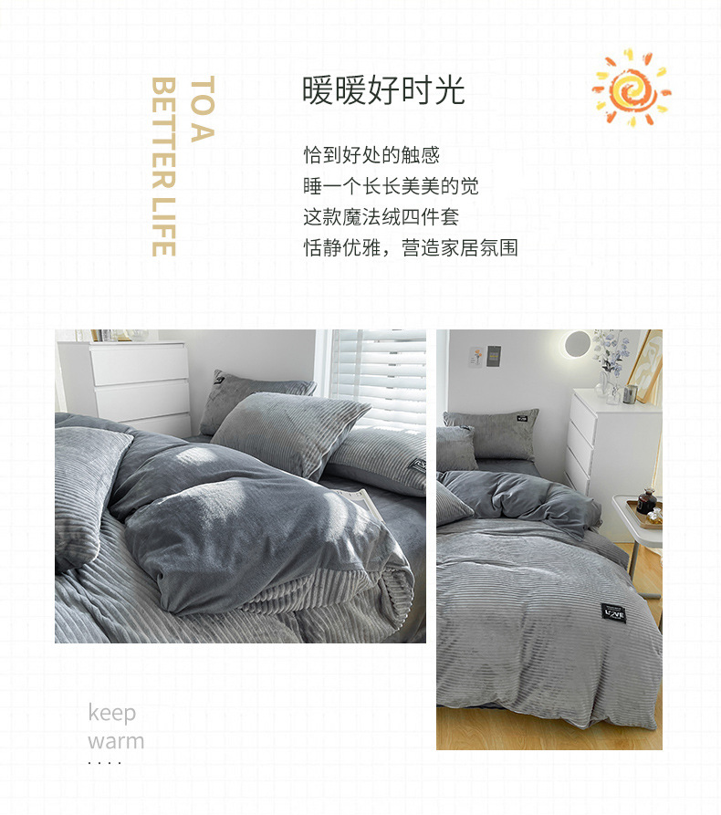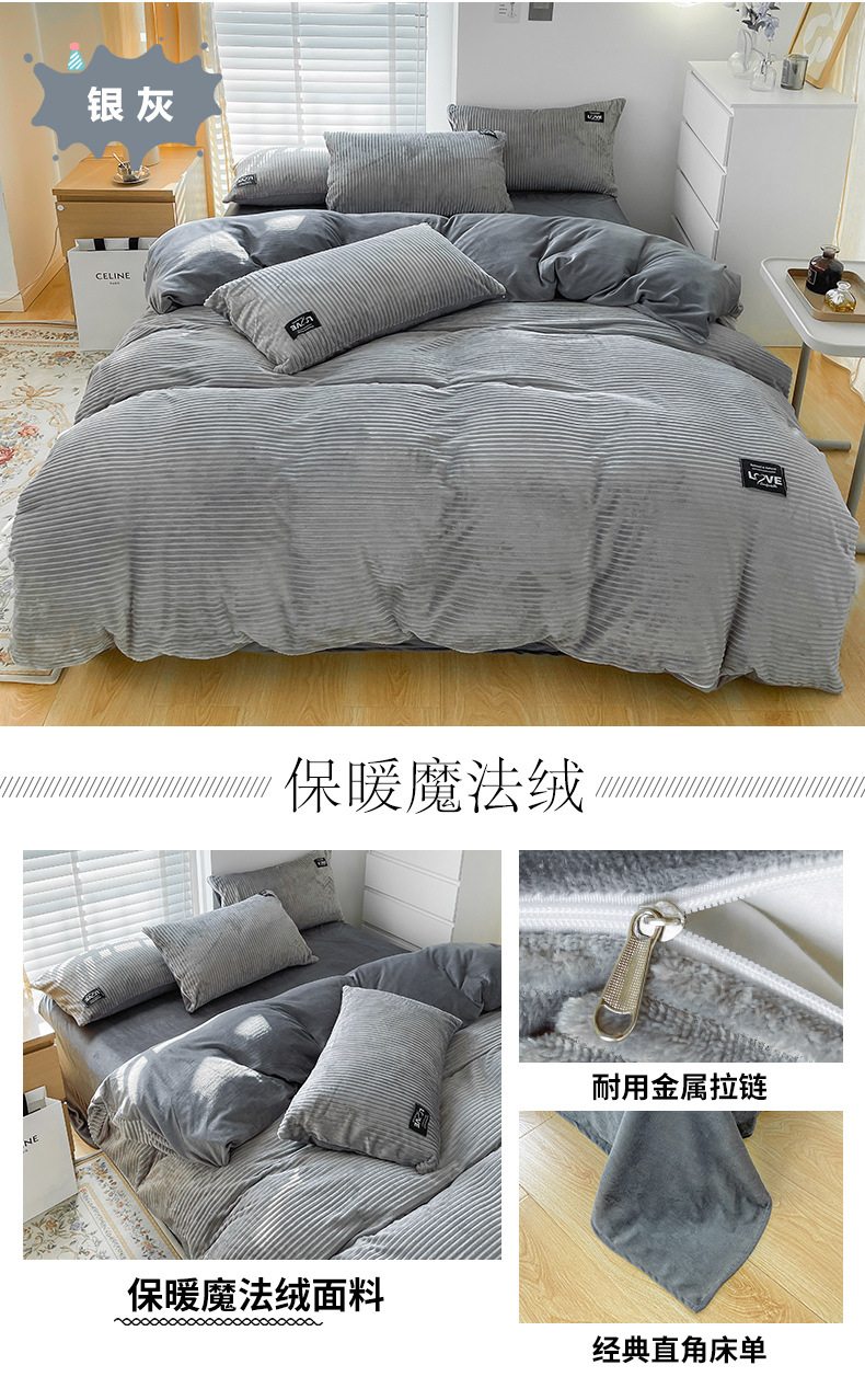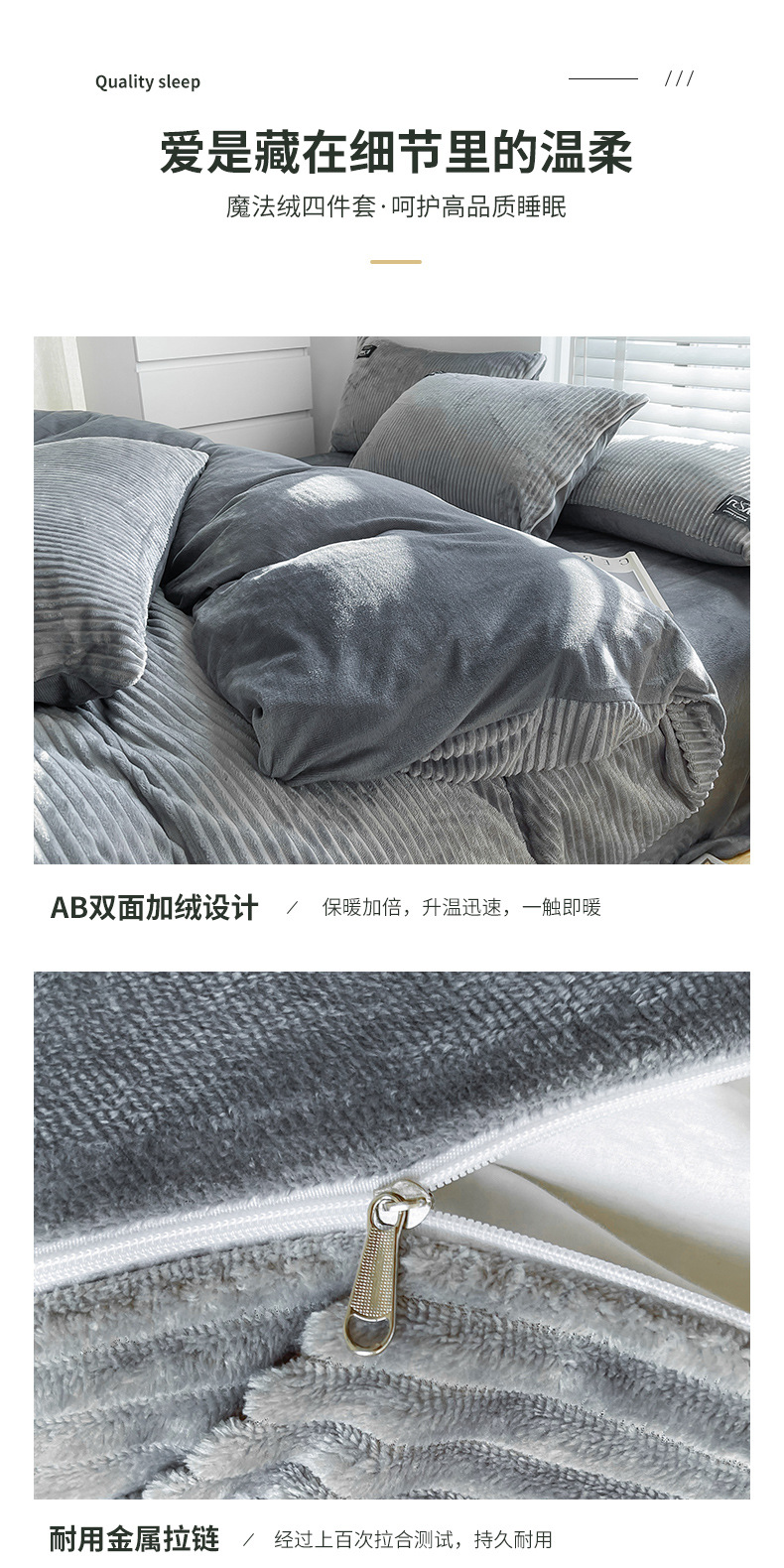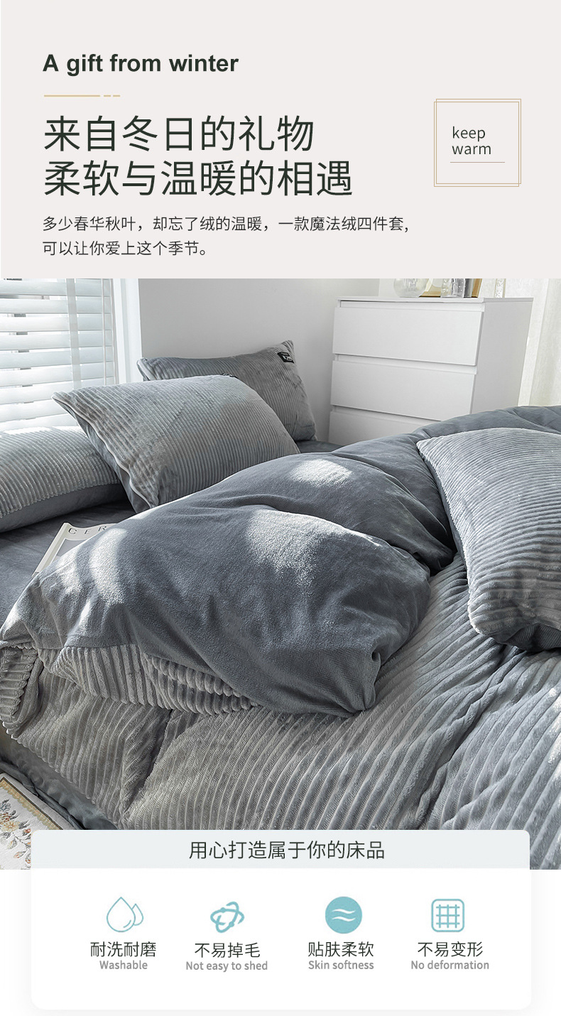冬季牛奶绒四件套a类珊瑚绒床单被罩法兰绒被套加绒床上三件套秋