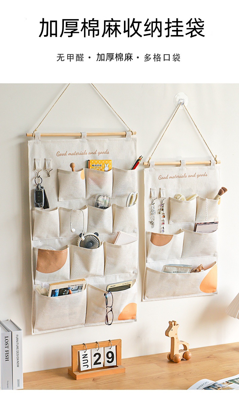 棉麻宿舍床头家用卧室客厅门后墙壁式多功能收纳挂袋大储物袋