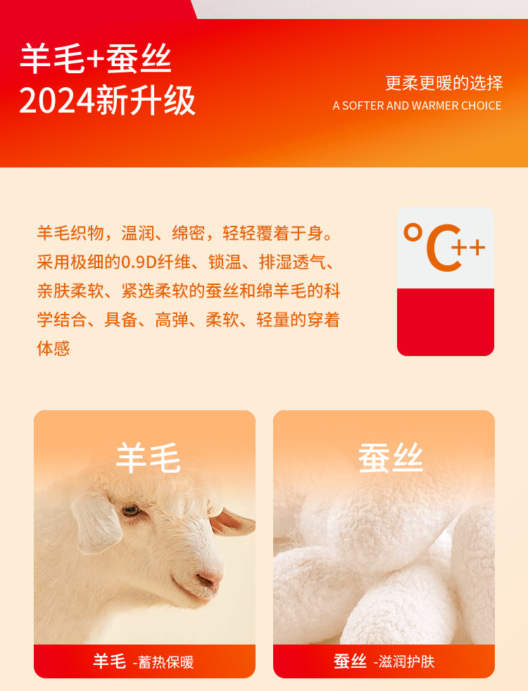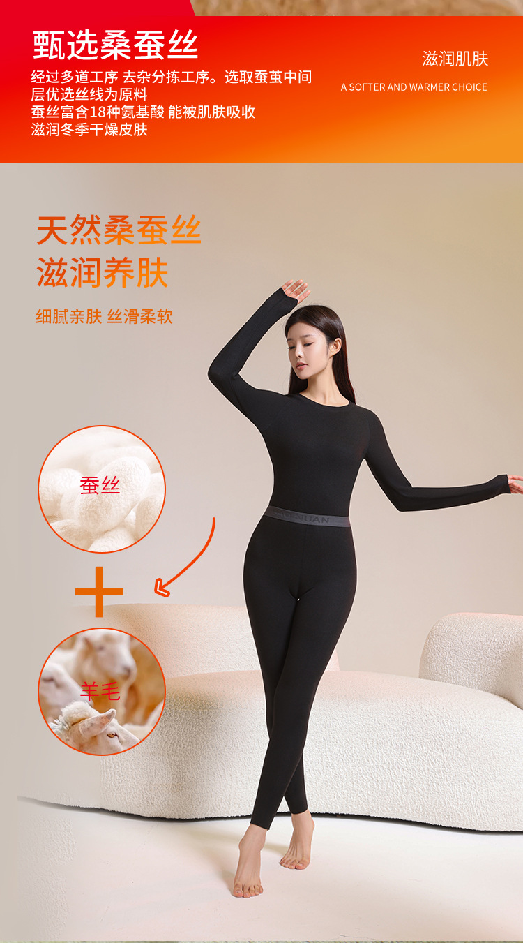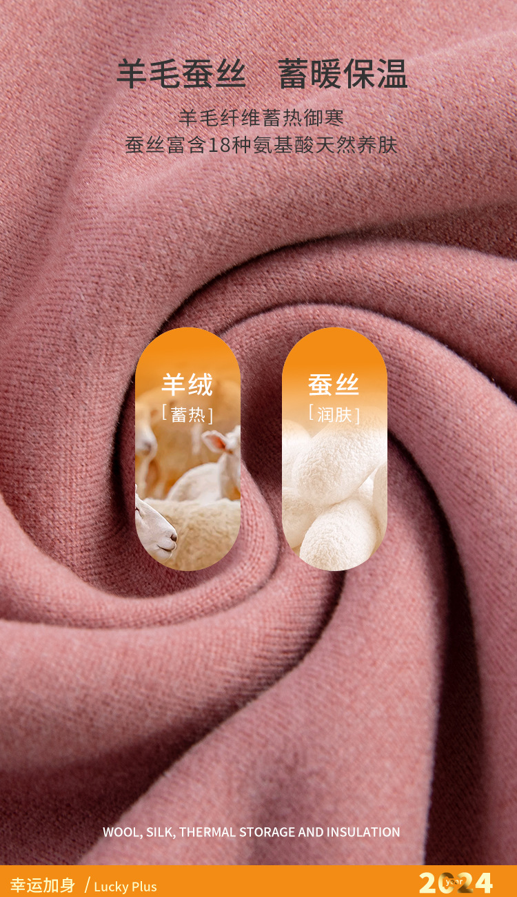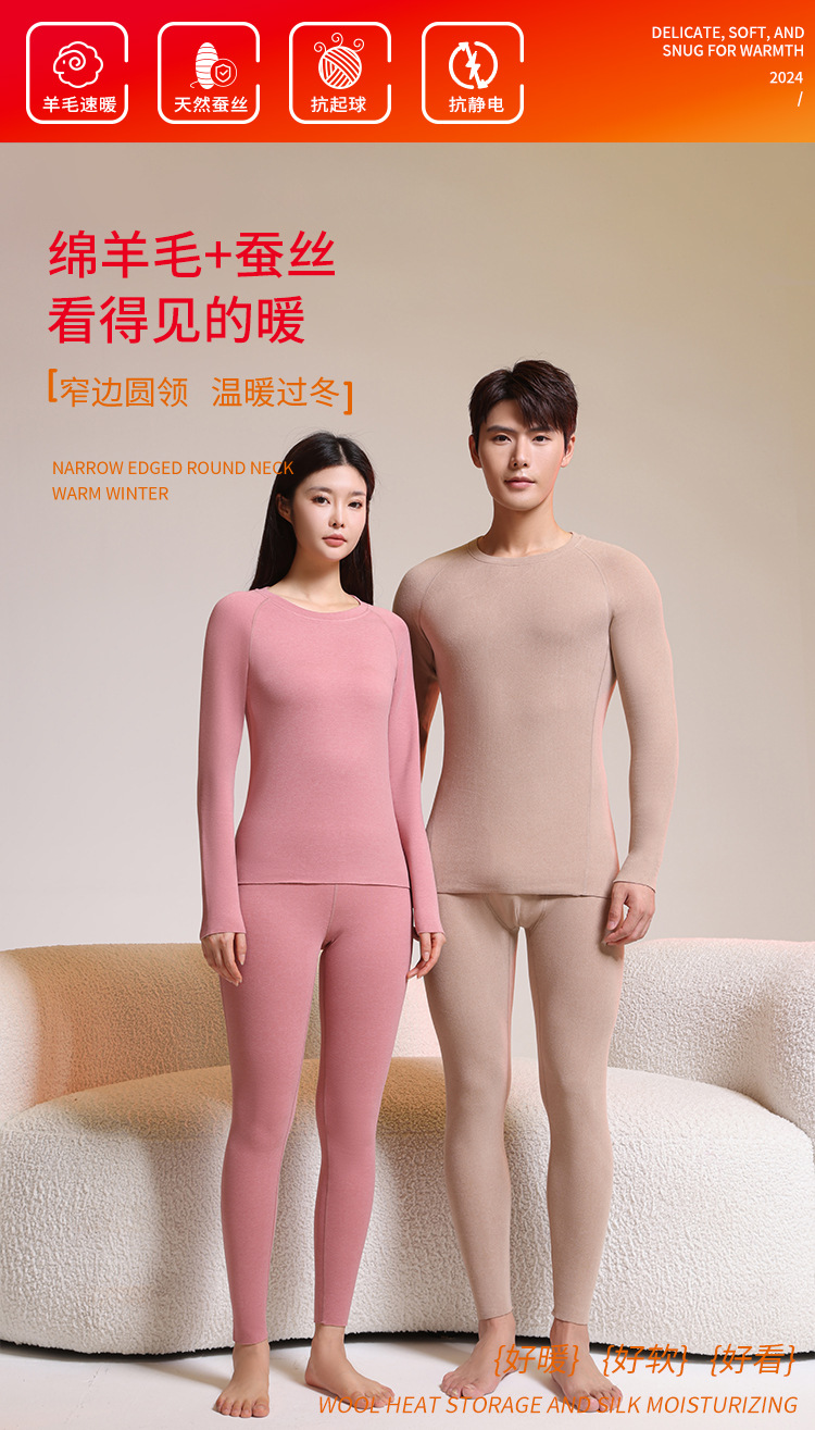 情侣款时尚秋冬保暖套装套头羊毛桑蚕丝秋衣秋裤保暖套装打底套装
