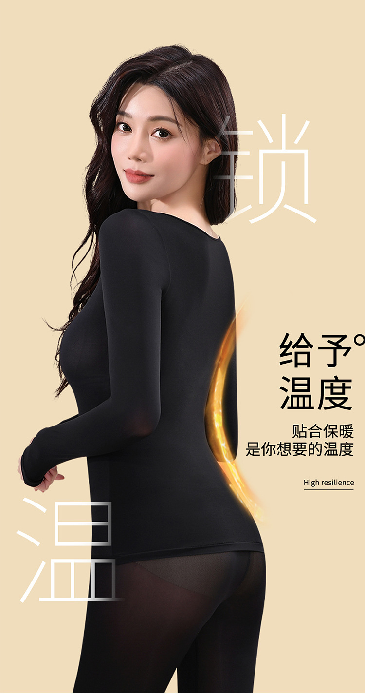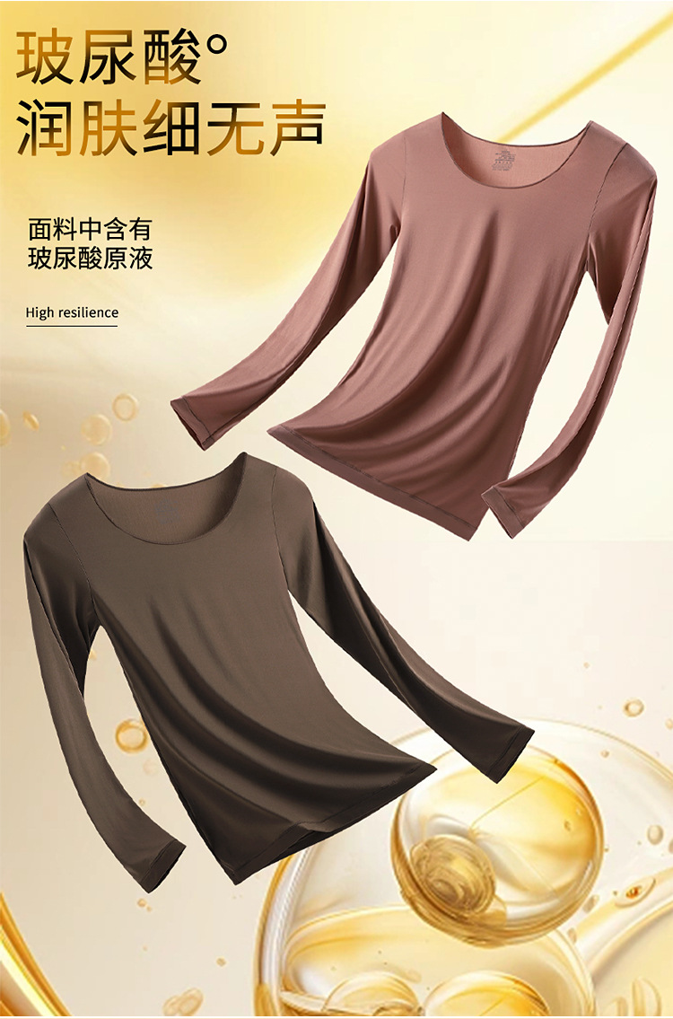 玻尿酸美肤衣套装秋衣女长款高弹保暖内衣抗静电抗起球肌底衣圆领