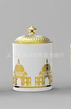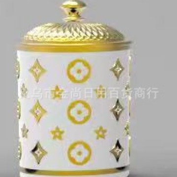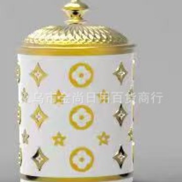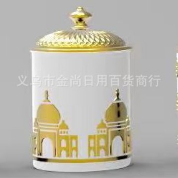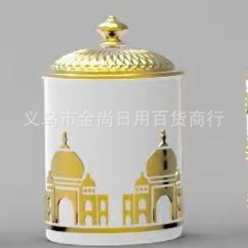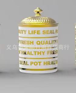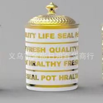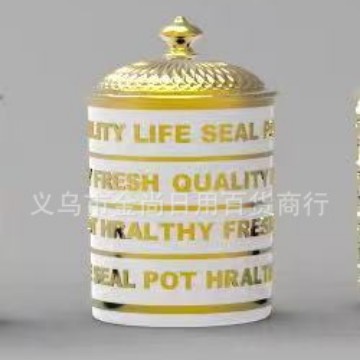 创意奶白烫金金色城堡复古花字母花三件套储物罐家用厨房密封罐