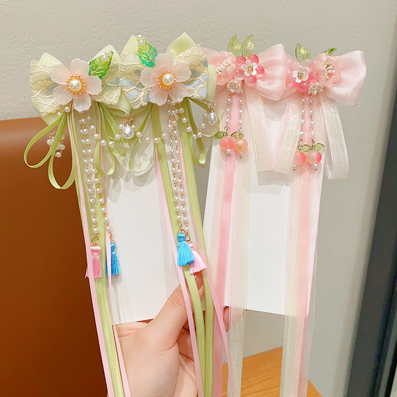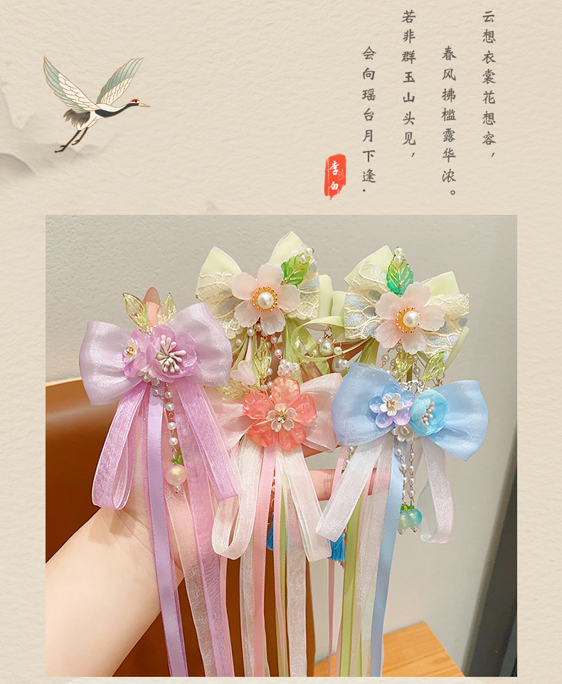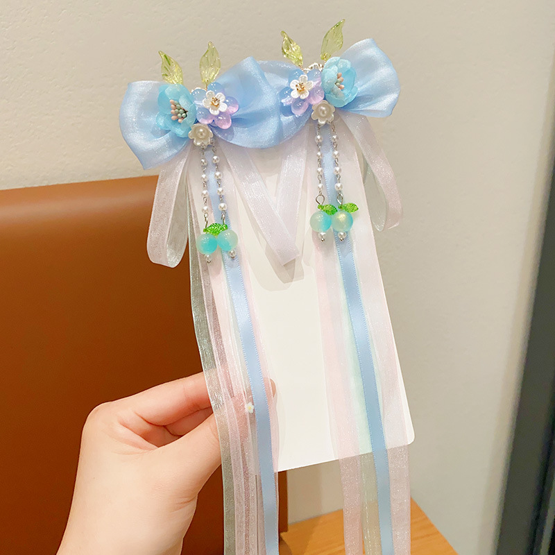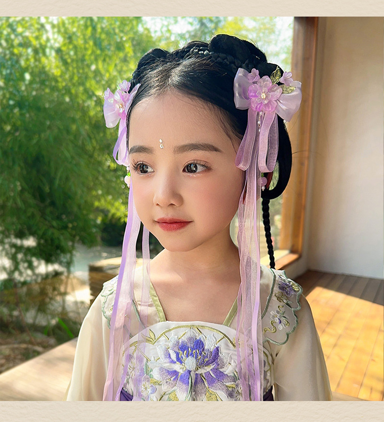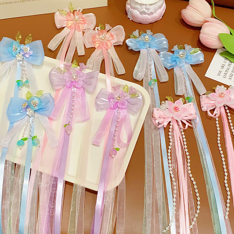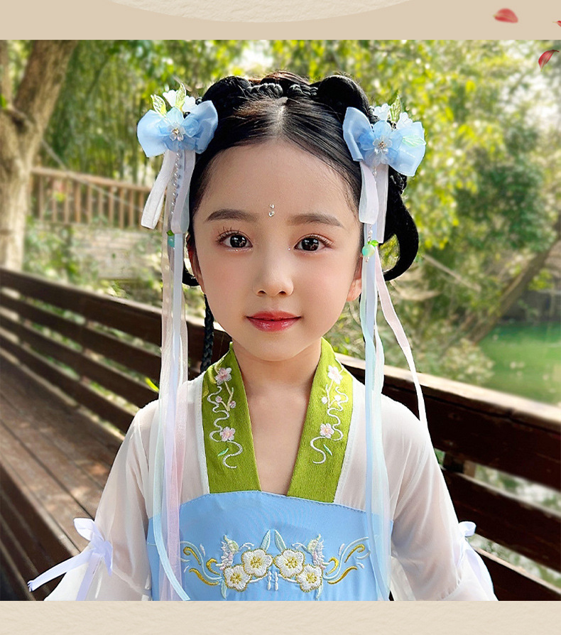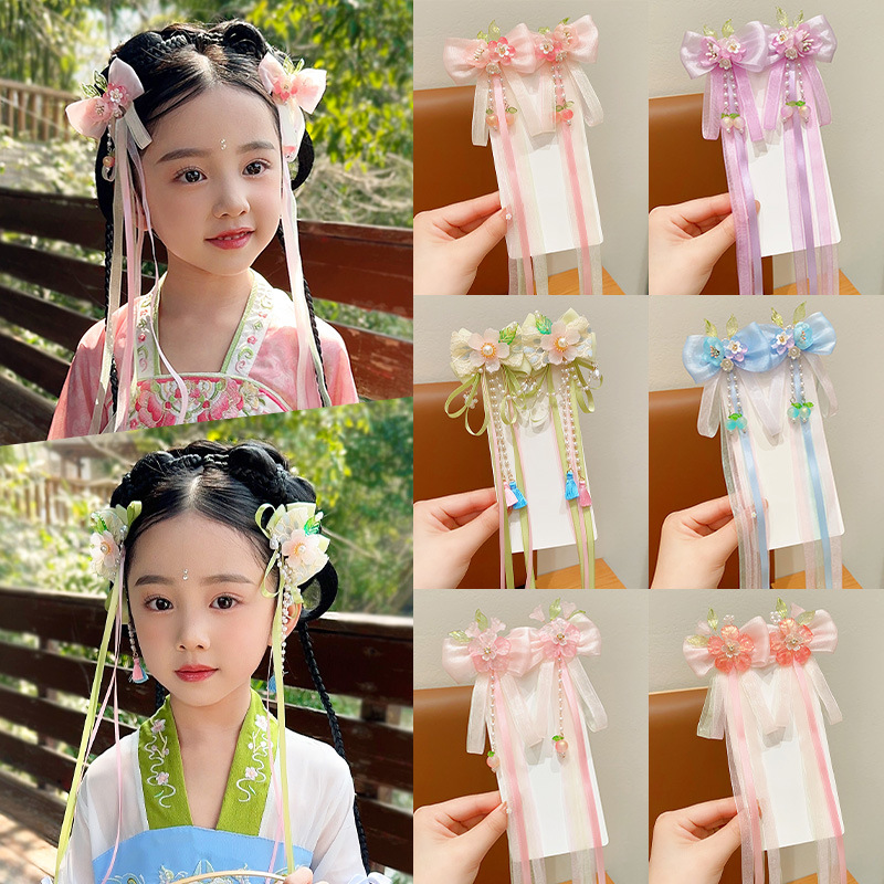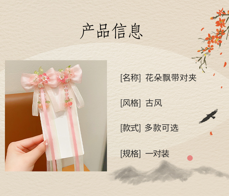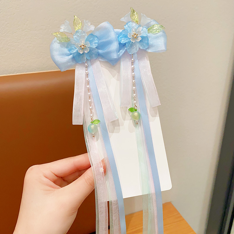 儿童超仙汉服头饰古风发卡小女孩中国风发夹女童古装步摇飘带头花