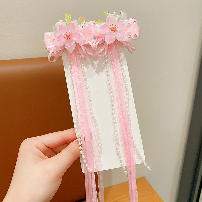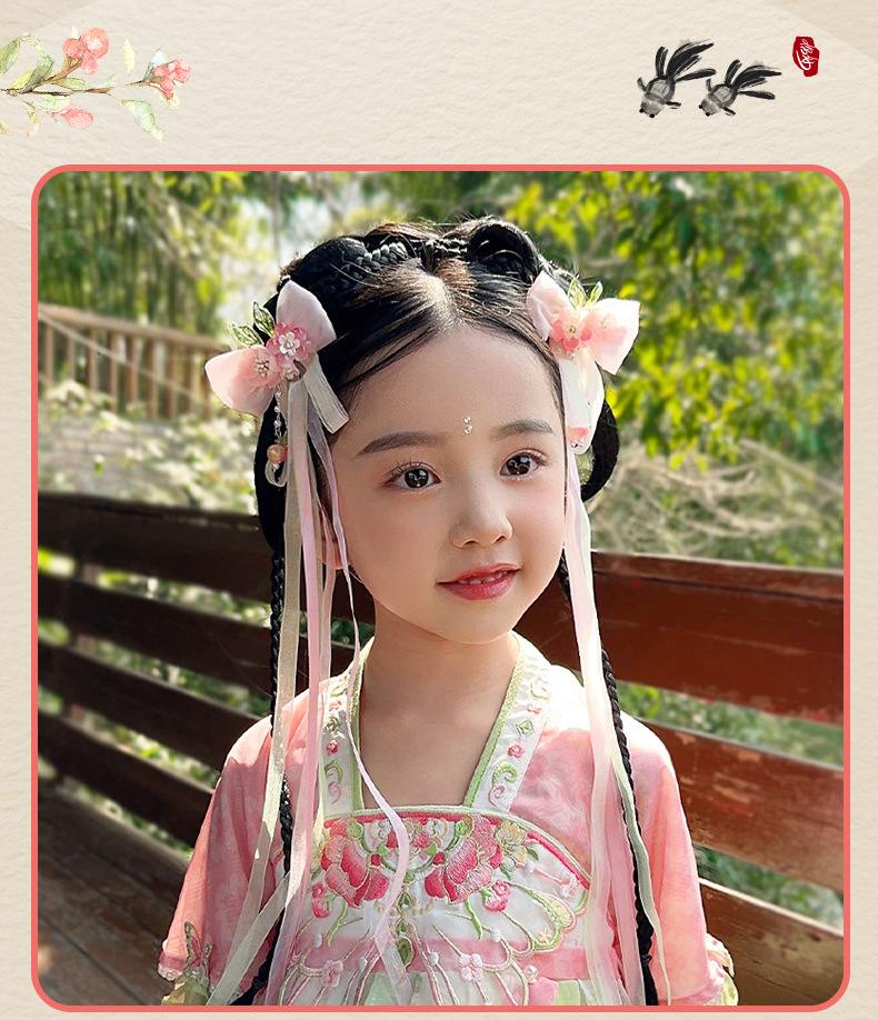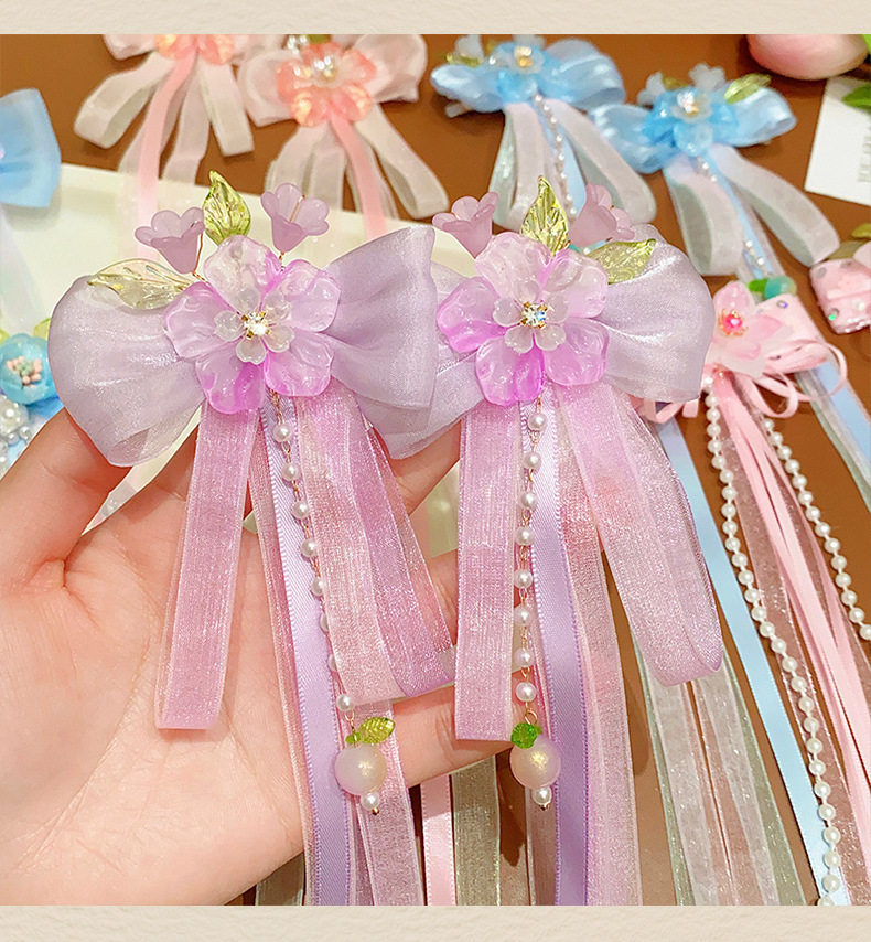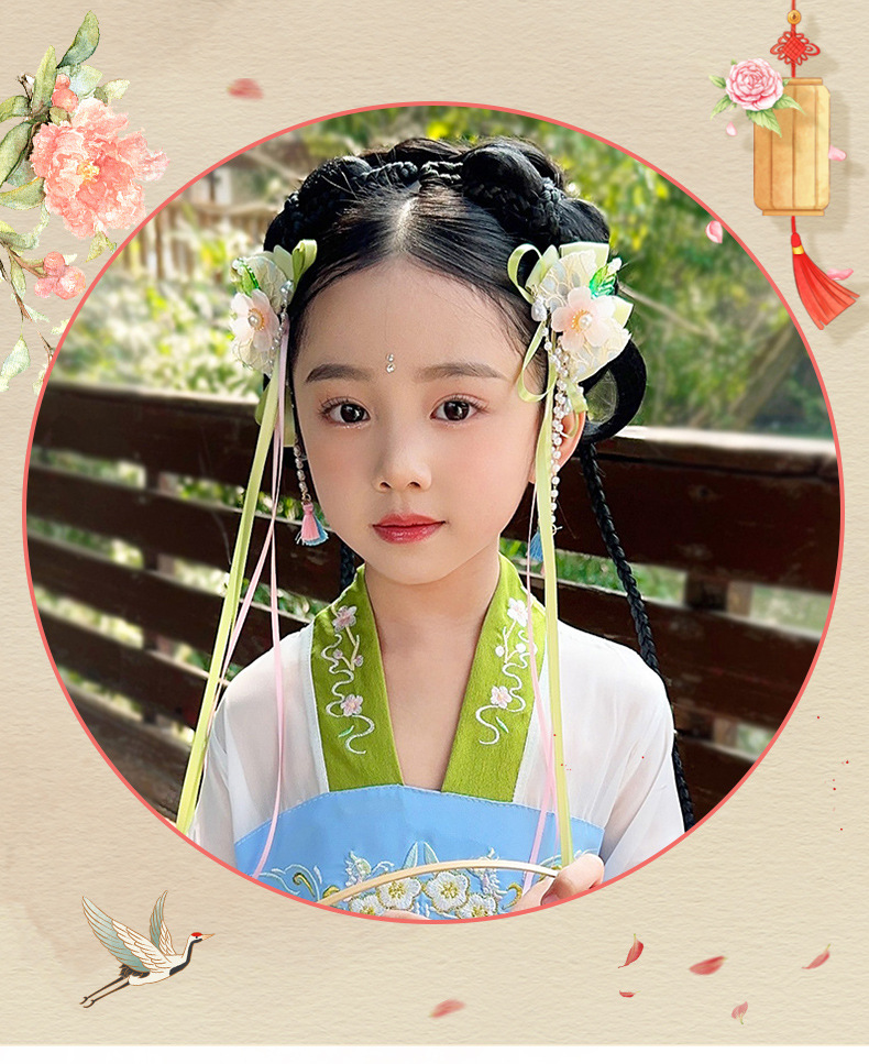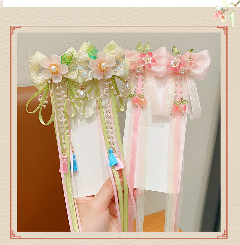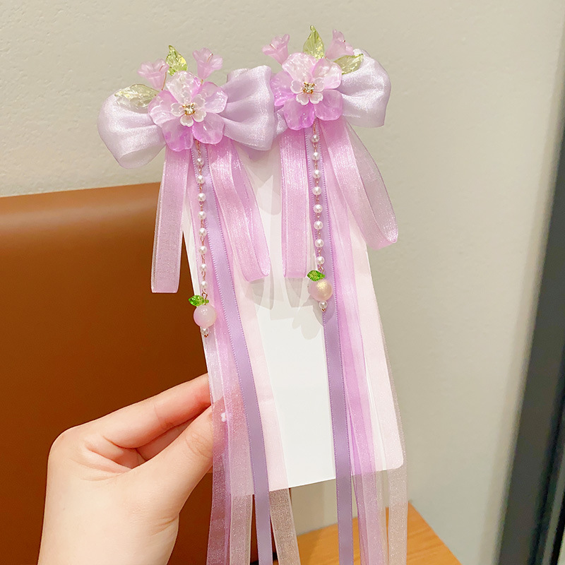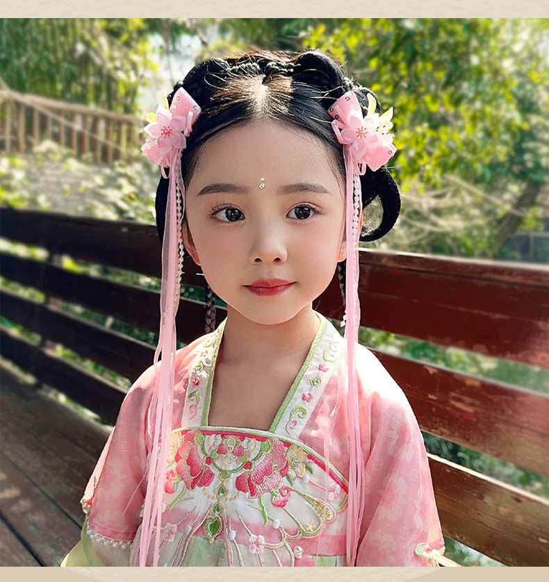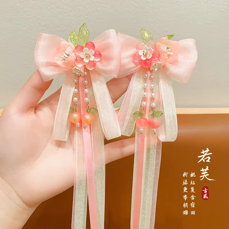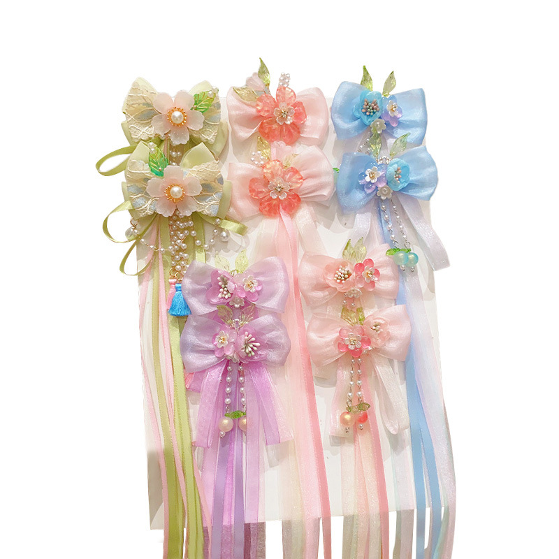 儿童超仙汉服头饰古风发卡小女孩中国风发夹女童古装步摇飘带头花