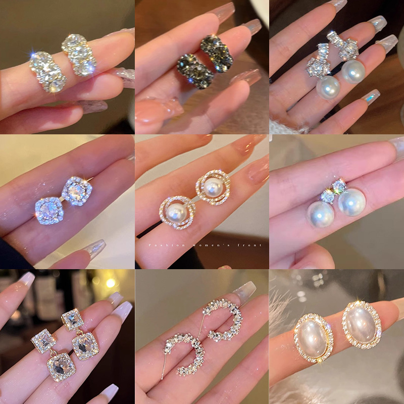 925银针高级感超闪锆石耳环女轻奢精致气质爆款耳钉秋夏耳饰批发