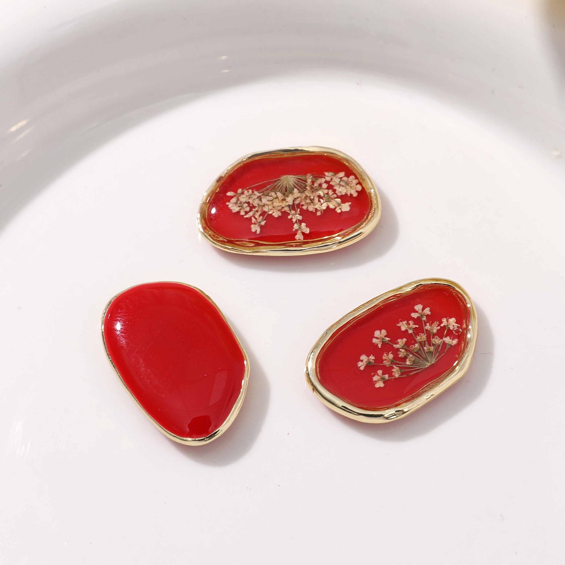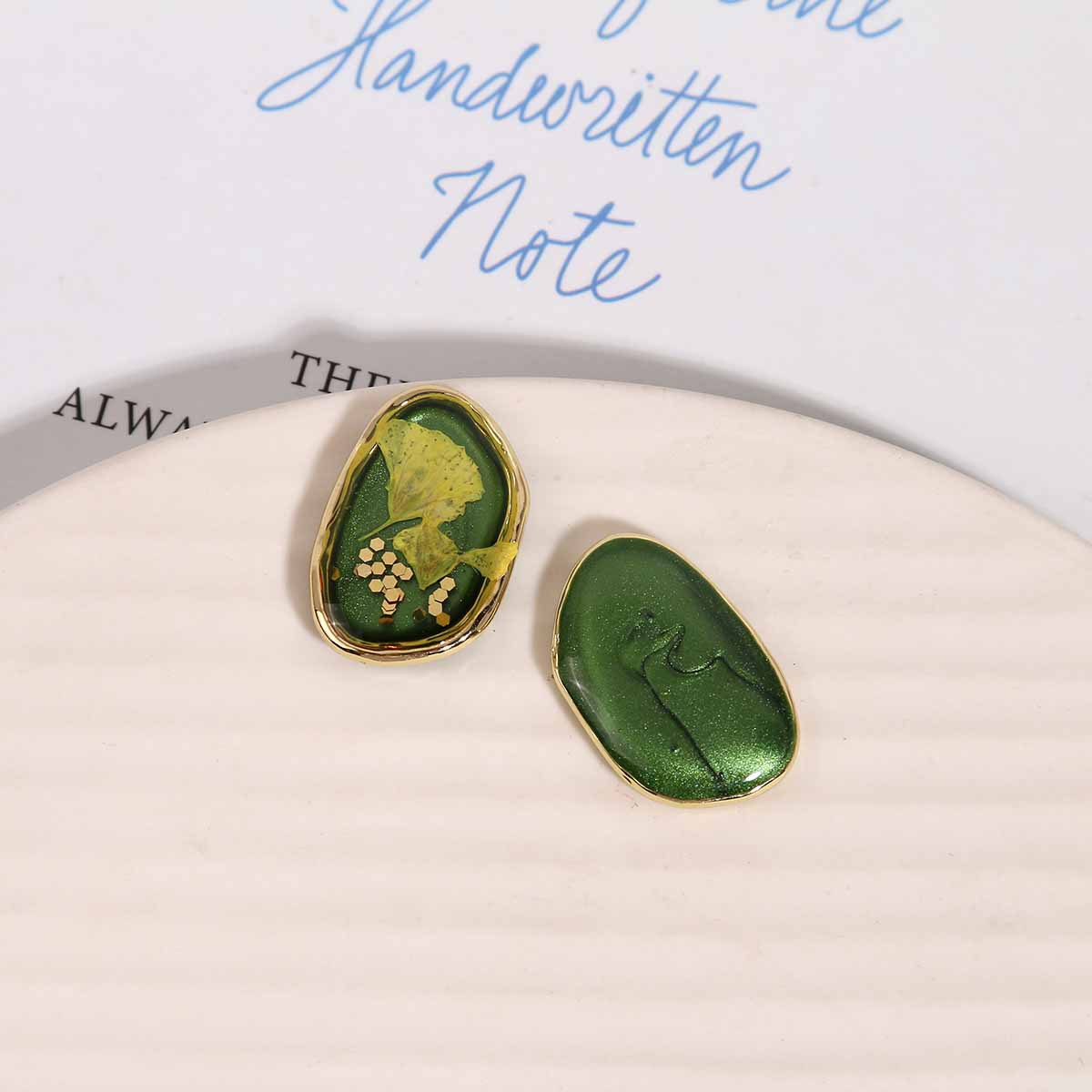 珍珠椭圆流沙颗粒感滴胶水绿叶粉色干花合金配件耳饰DIY饰品配件