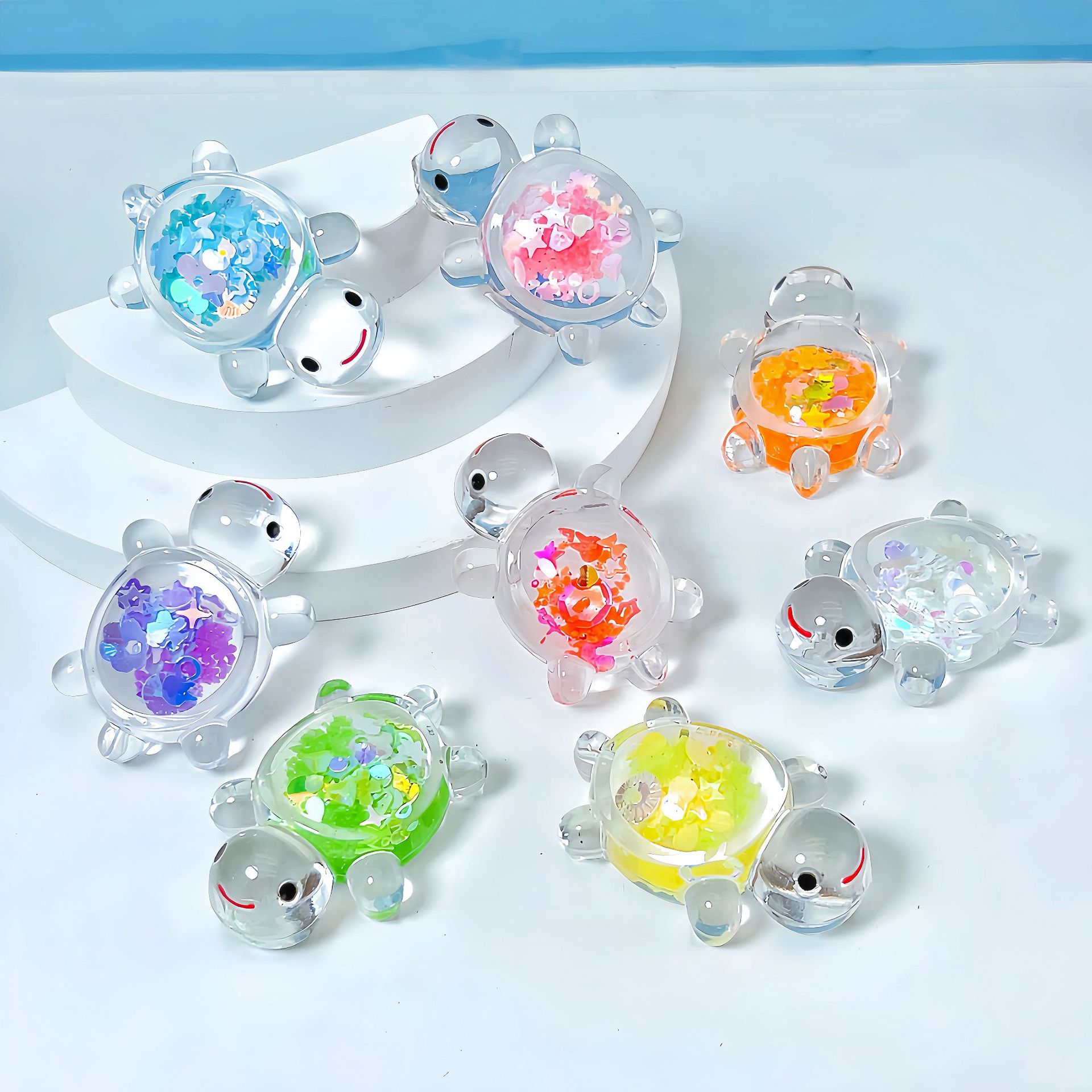 夜光亮片乌龟 可爱diy奶油胶钥匙扣挂件桌面摆件潮玩盲袋饰品配件