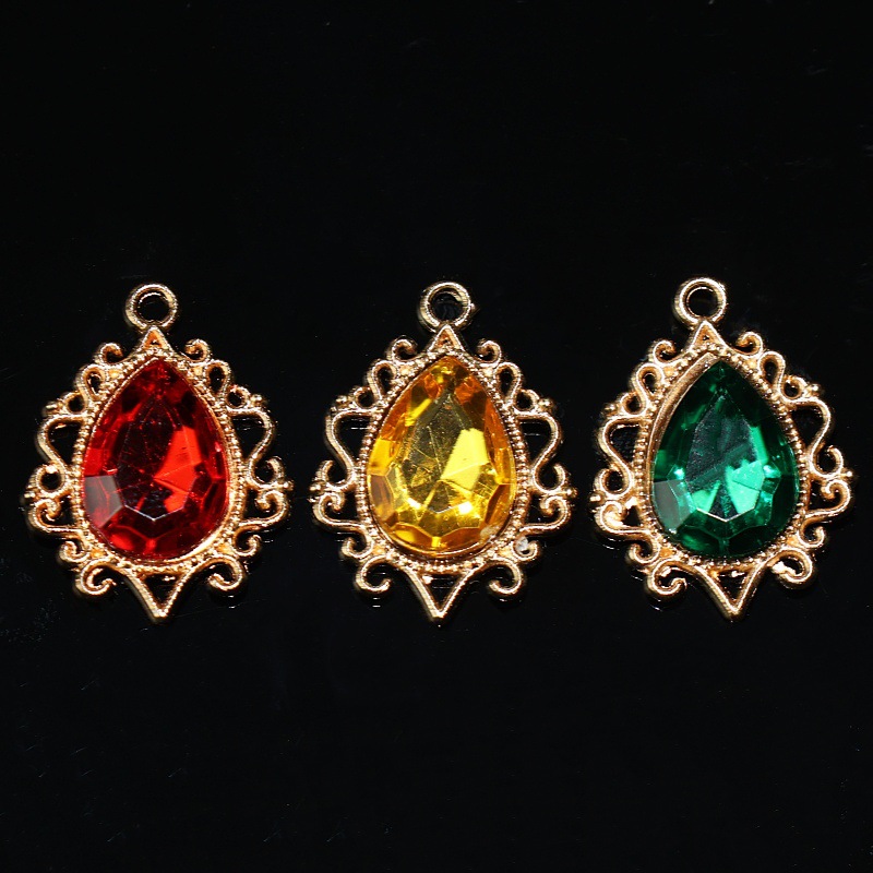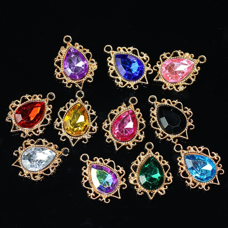 韩版合金花边镶钻水滴吊坠挂件diy手工头饰耳环挂坠配件厂家直销