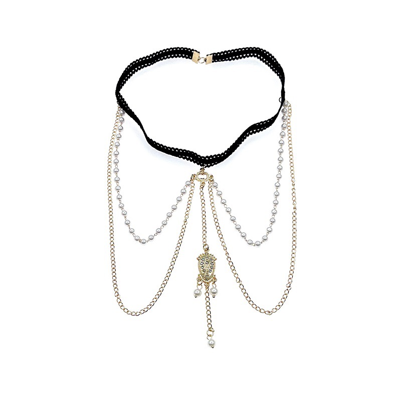 欧美海滩弹力多层珍珠大腿链女 潮流水钻腿链流苏链条几何身体链