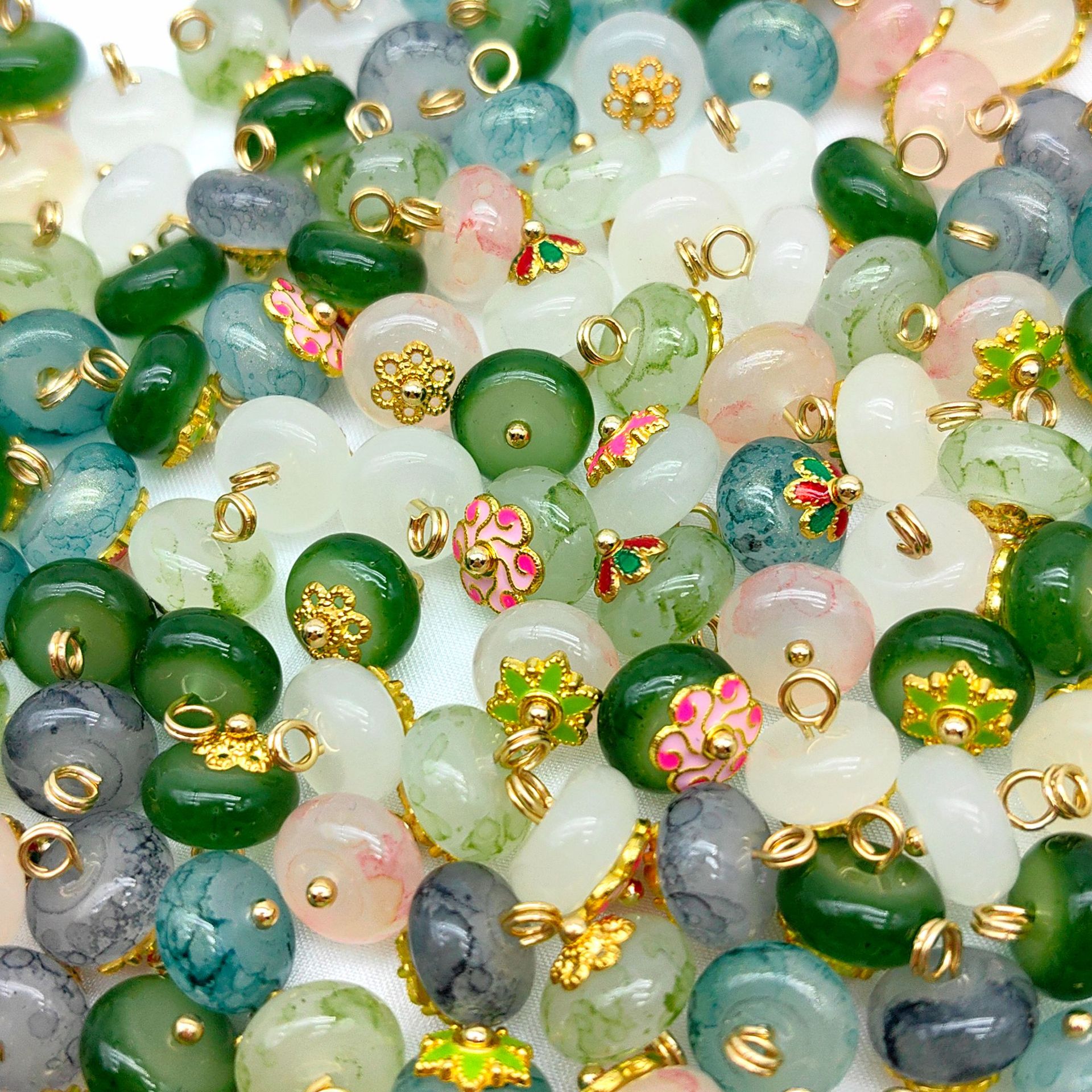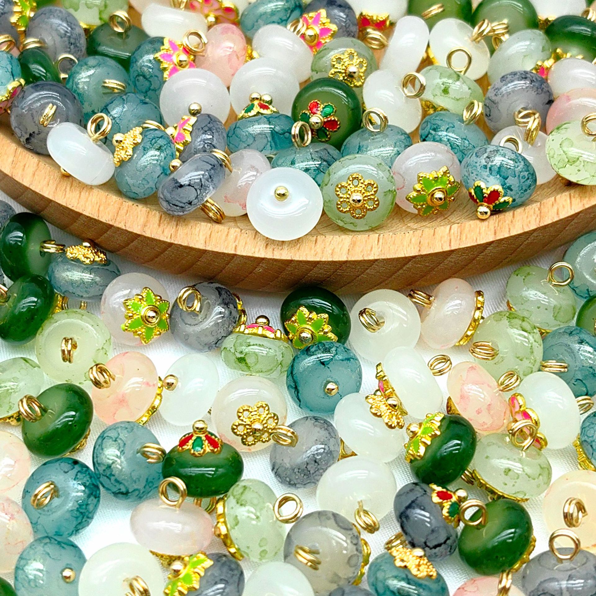 国风汉服中式旗袍纽扣5*10mm琉璃扁平珠算盘珠装饰扣子diy配件