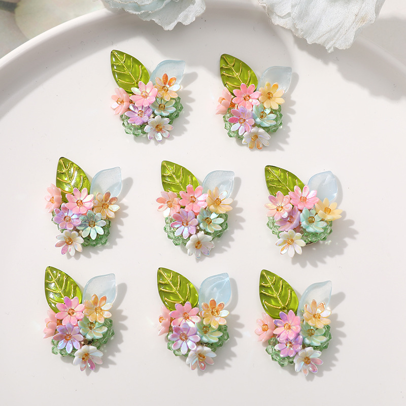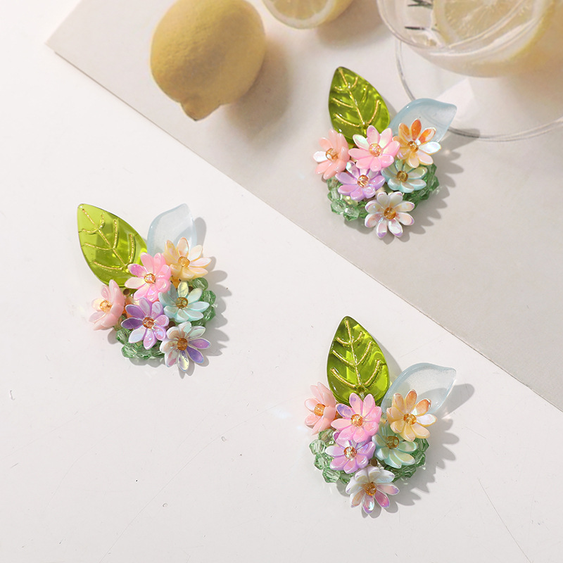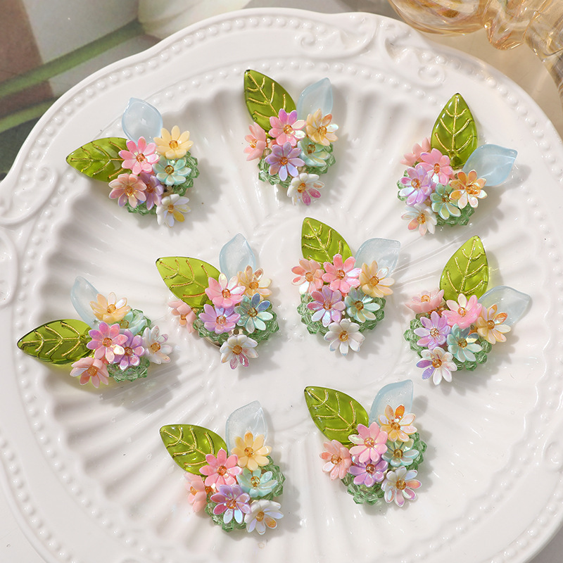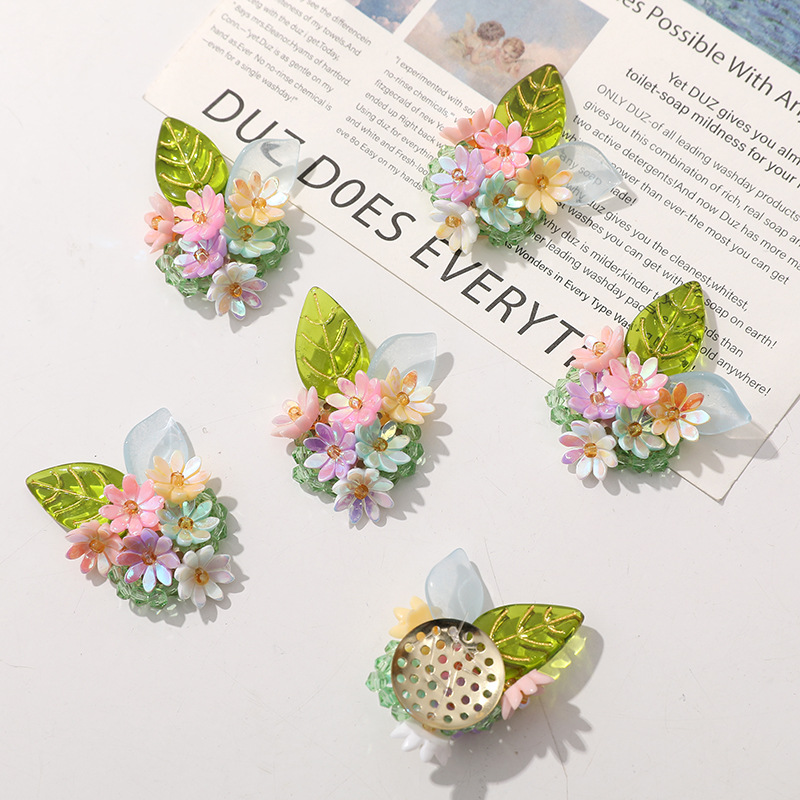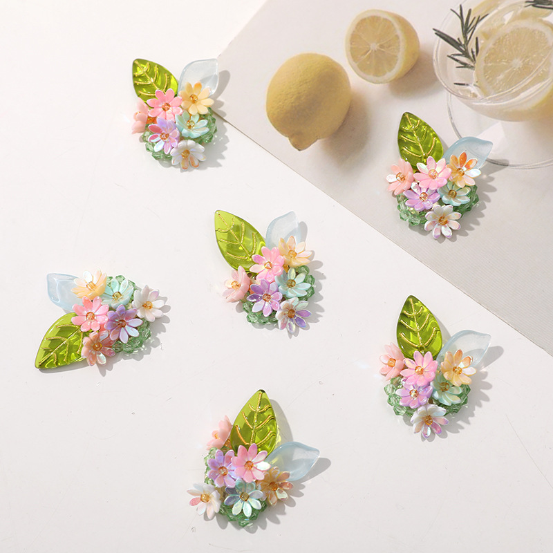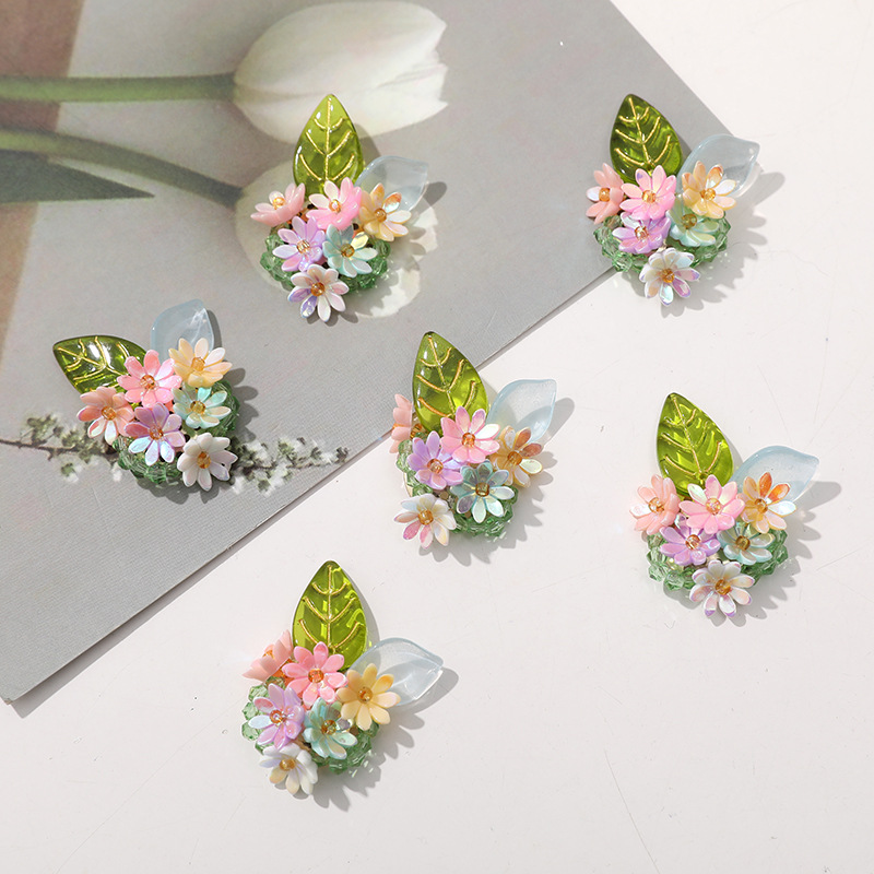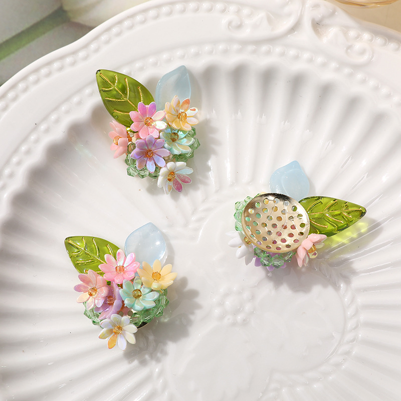 初夏田野小清新绿叶七彩花簇diy手工编织头饰发饰耳饰材料批发