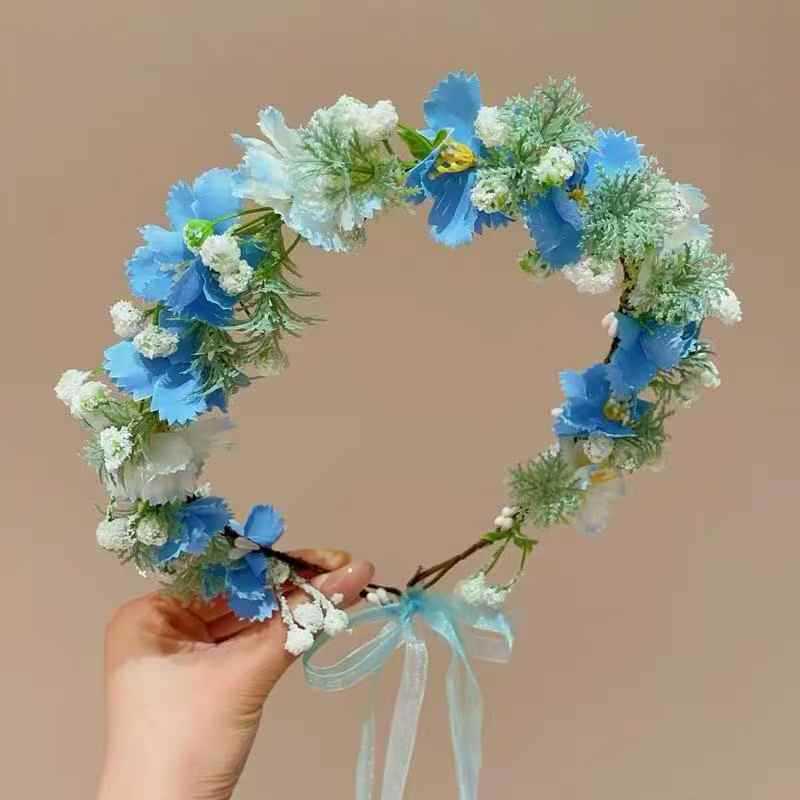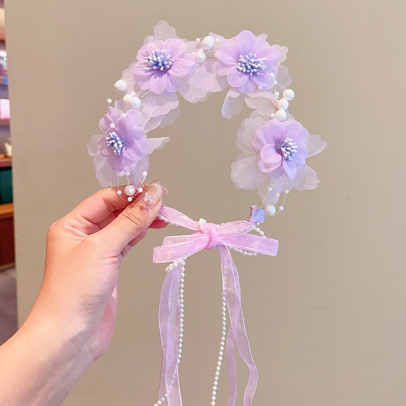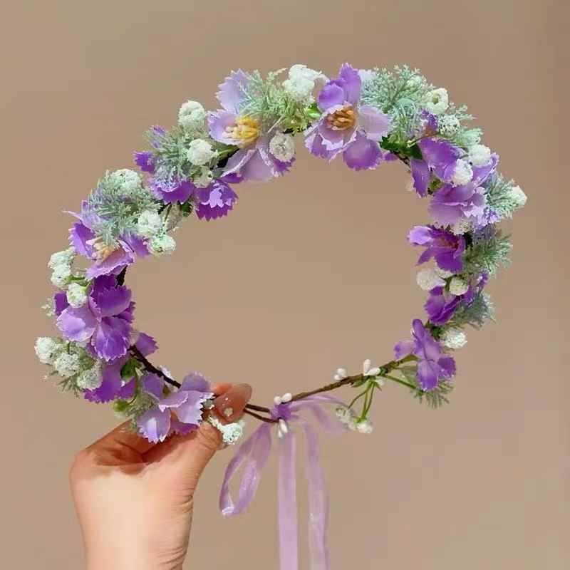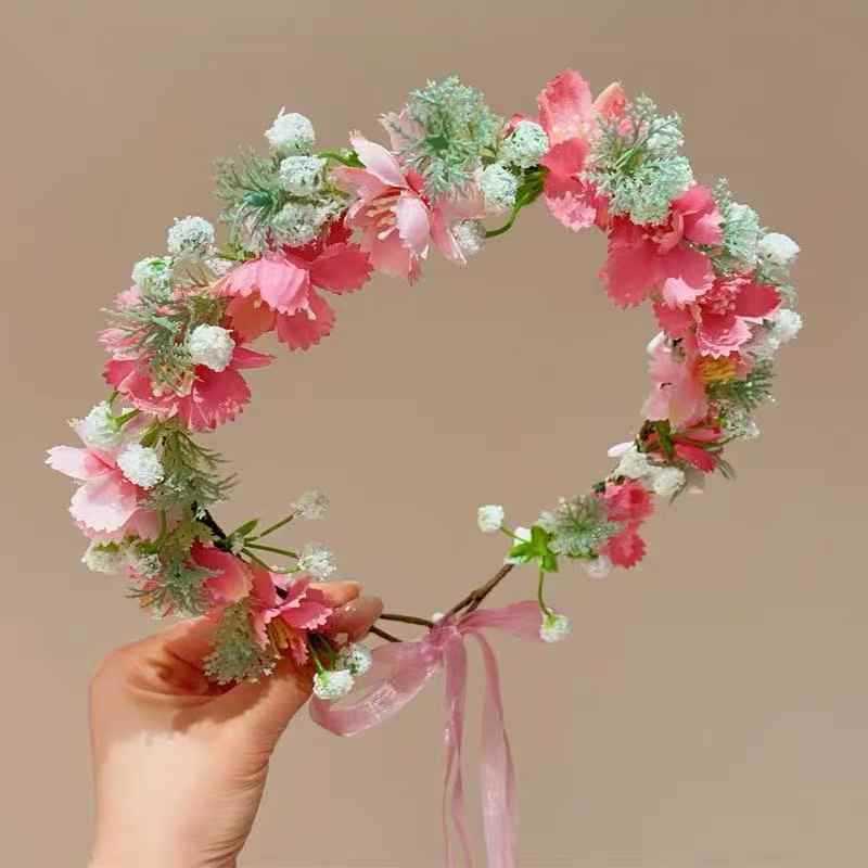 超仙花环发箍头纱伴娘儿童发箍演出花童生日森系公主旅行拍照头饰