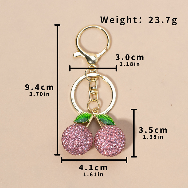 跨境创意可爱镶钻小樱桃钥匙扣挂件汽车女包金属钥匙链圈卡通礼品