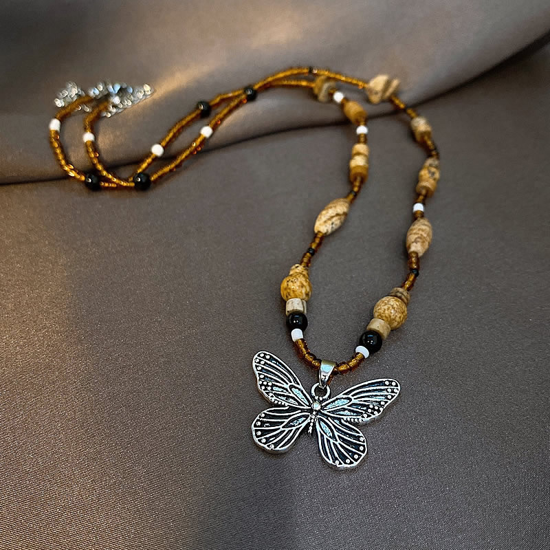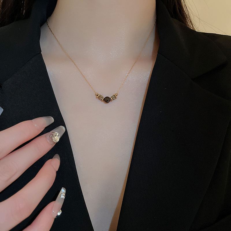 跨境复古虎眼石不锈钢项链小众轻奢高级感锁骨链时尚百搭饰品批发