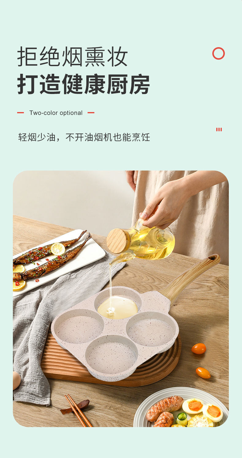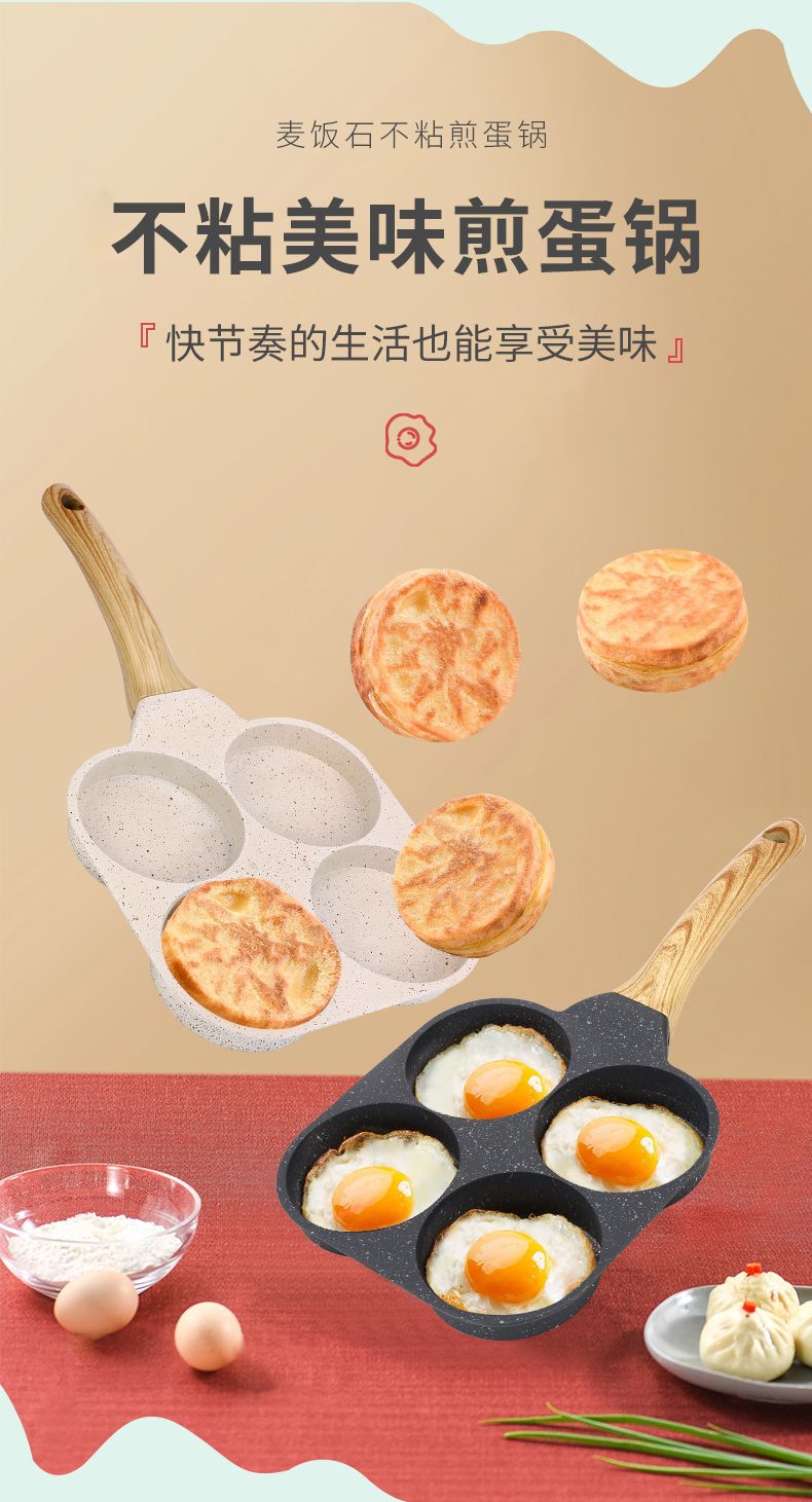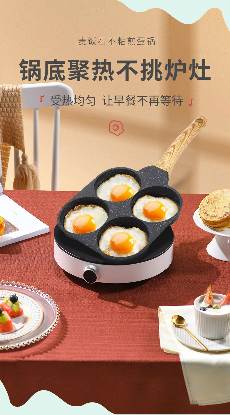 跨境批发麦饭石不粘锅四孔鸡蛋汉堡平底煎锅电磁炉专用迷你煎蛋锅