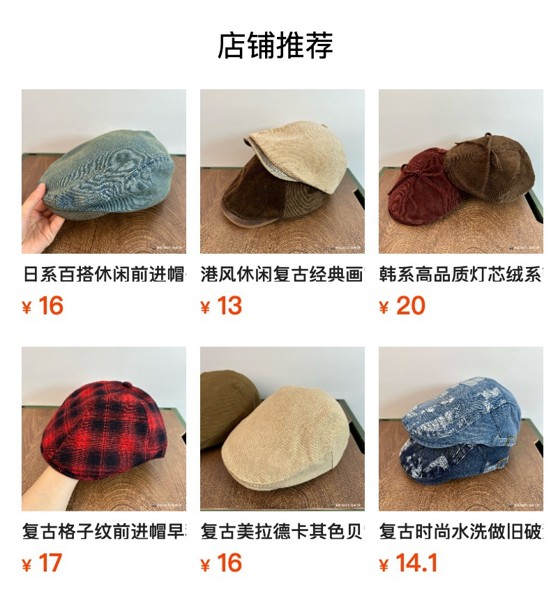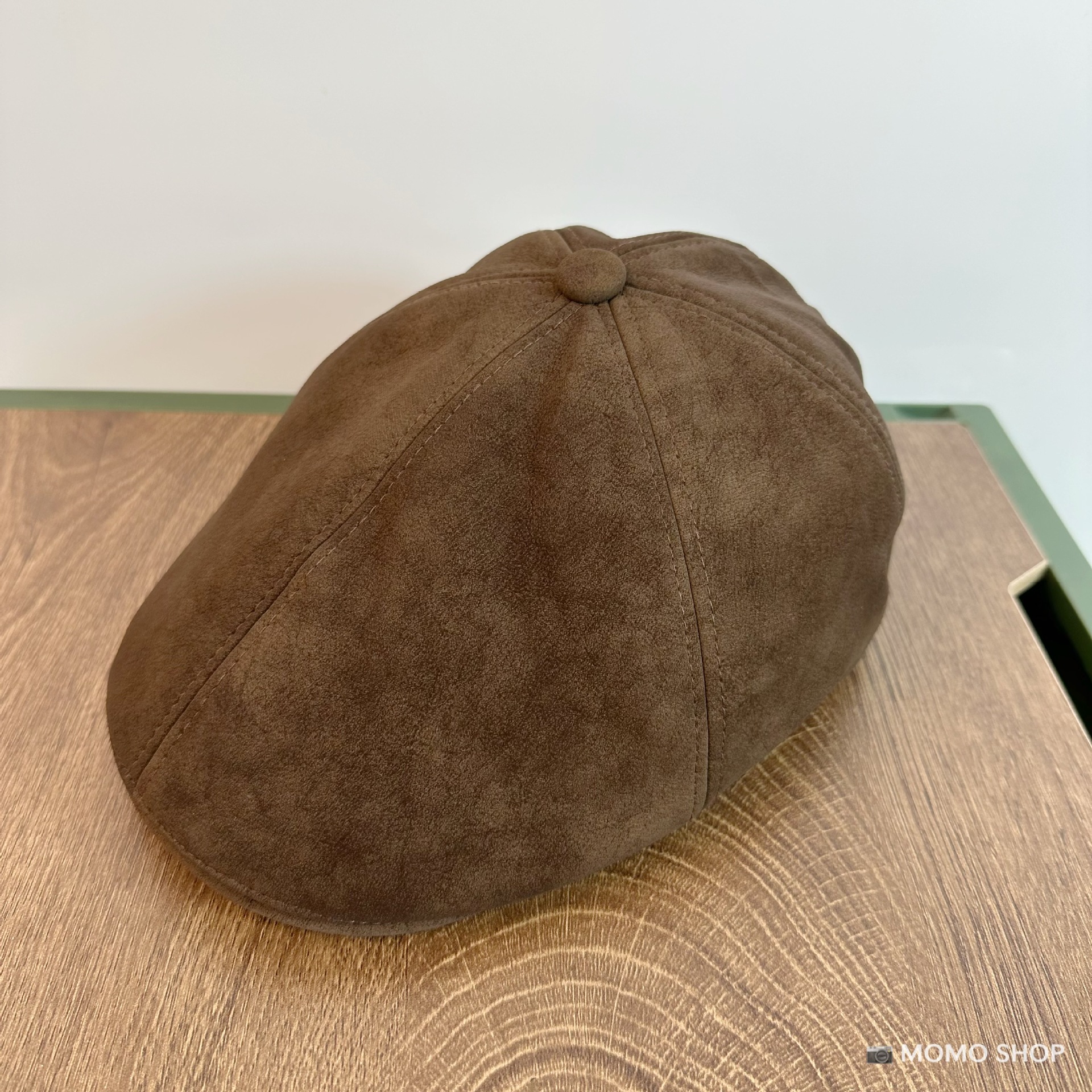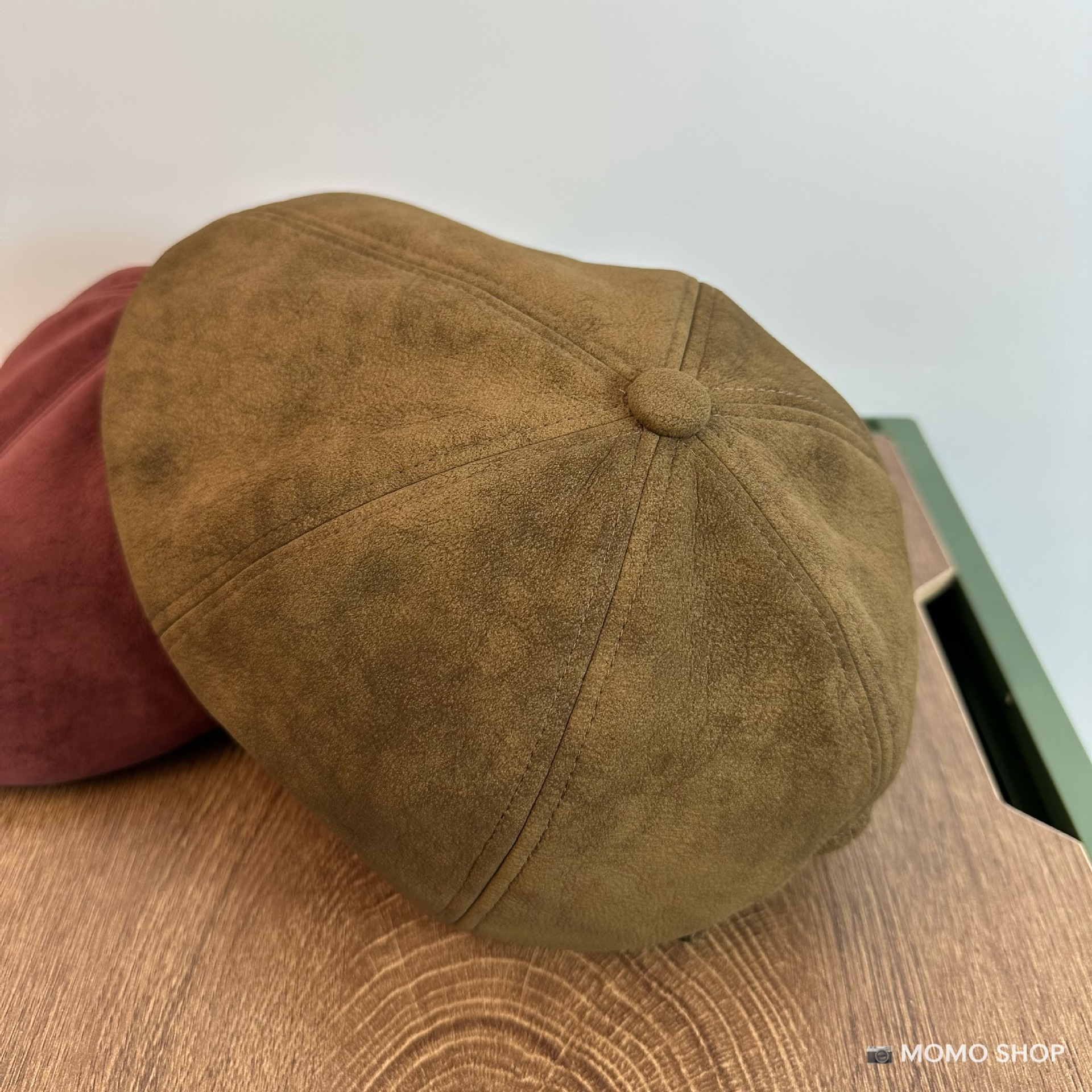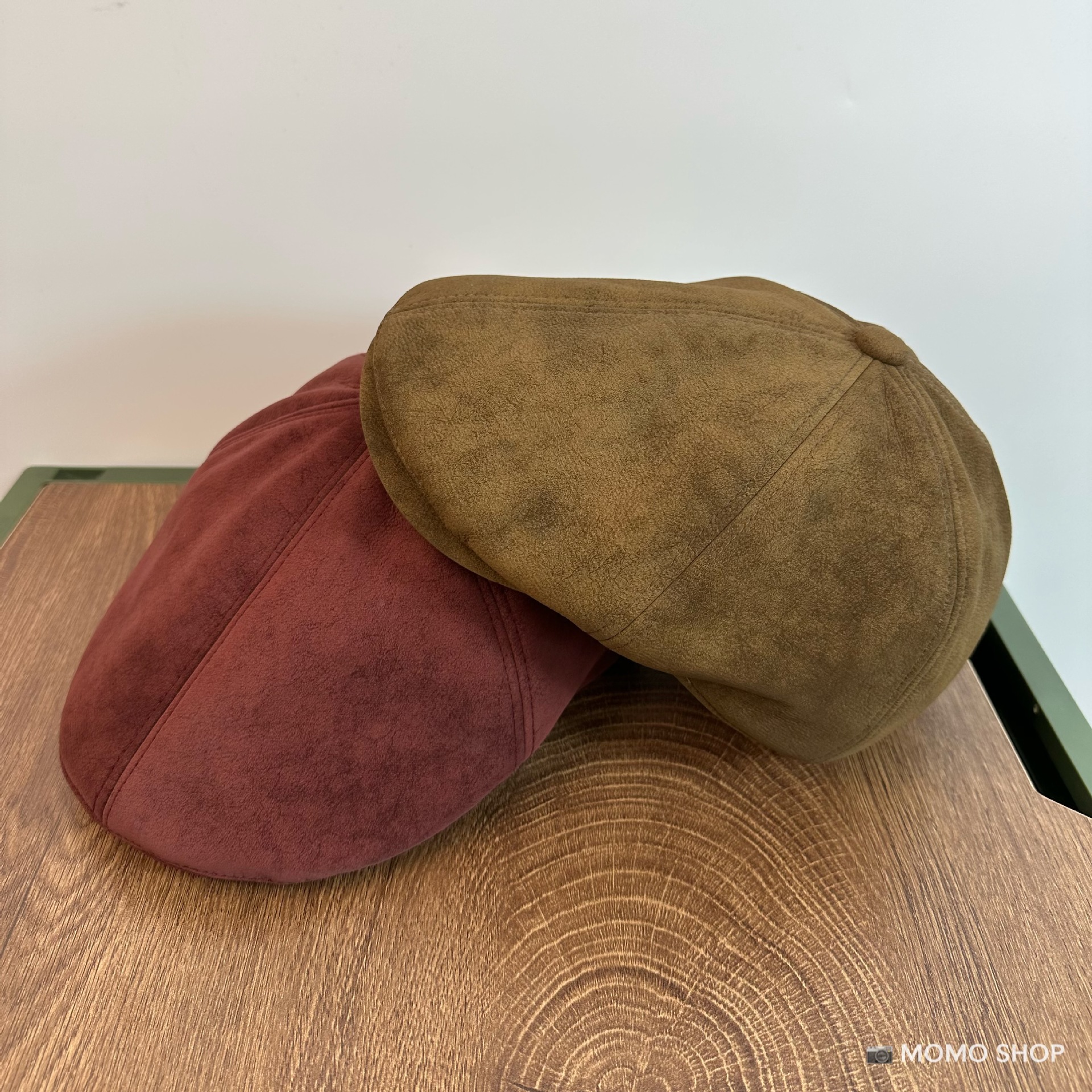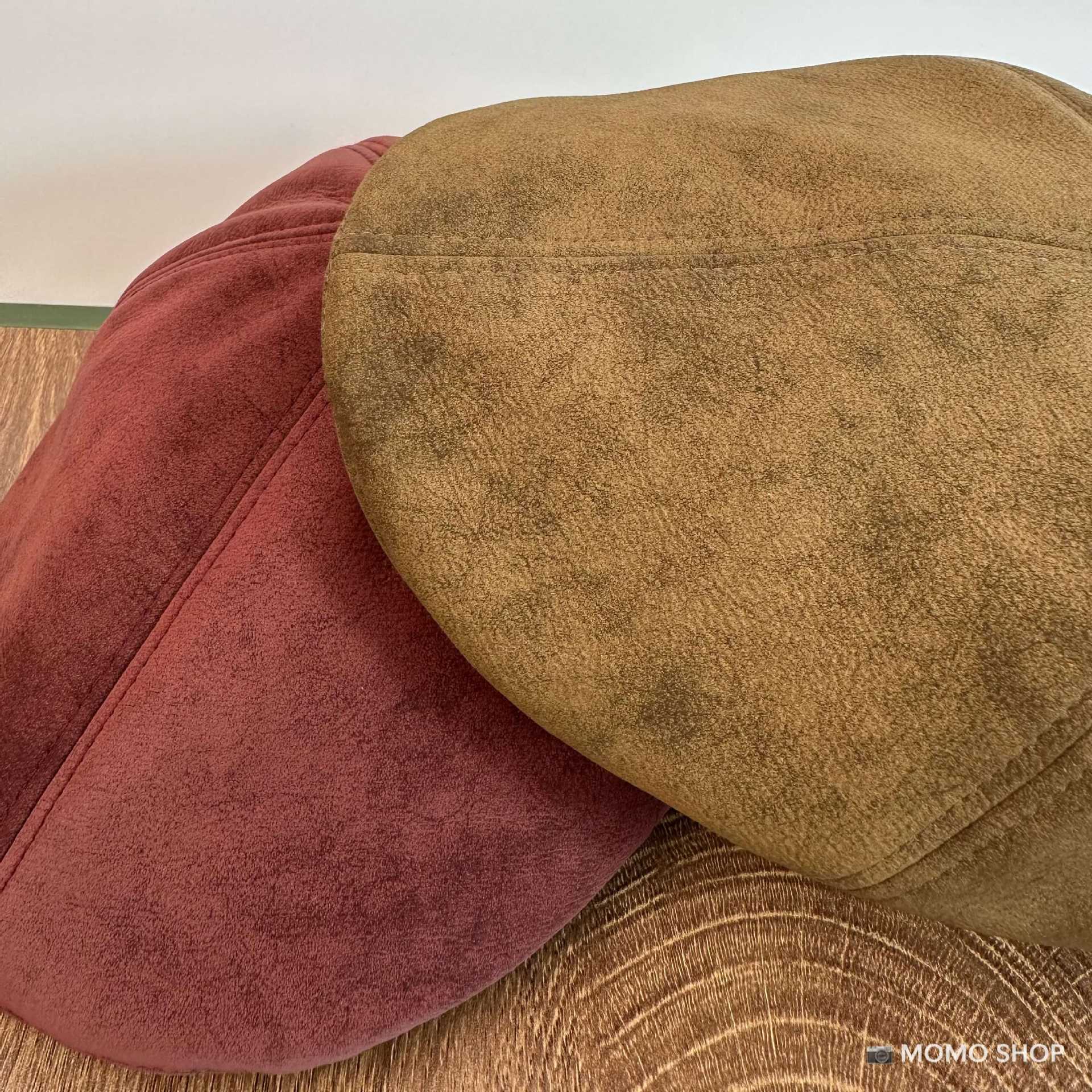 日系复古麂皮绒前进帽女秋冬百搭大头围贝雷帽显脸小反戴画家帽子