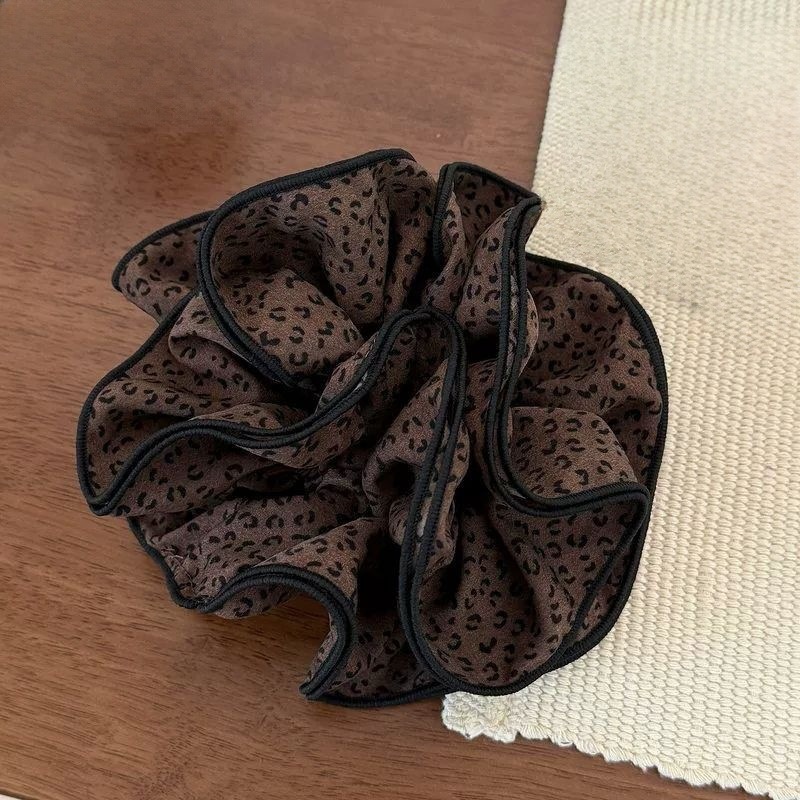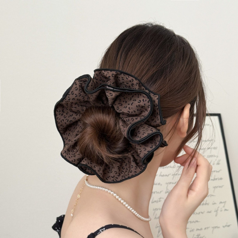 美拉德秋冬豹纹深色系四层大肠发圈丸子头花发绳时尚百搭头绳发饰