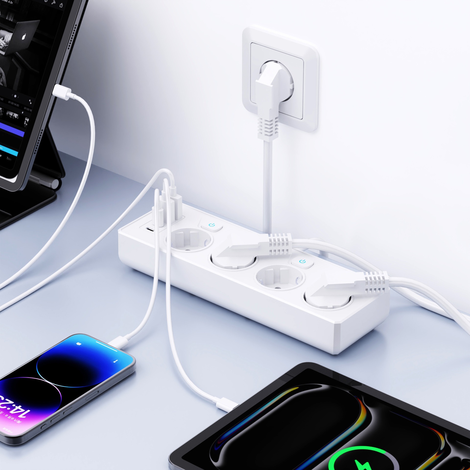 跨境热销新款欧规插排多功能短线便携一转多带开关USB欧洲插线板