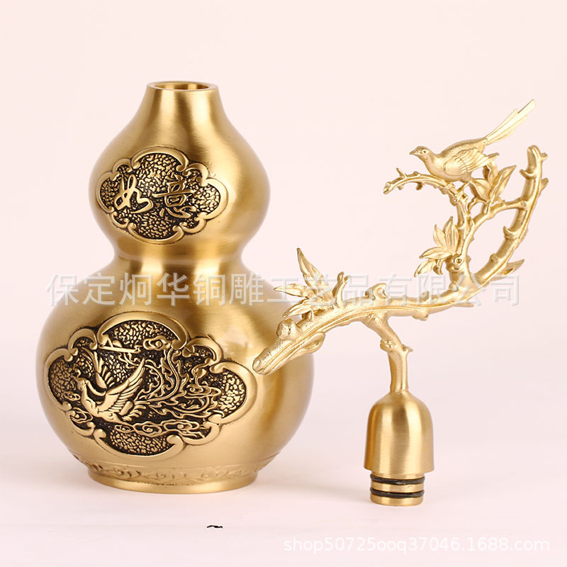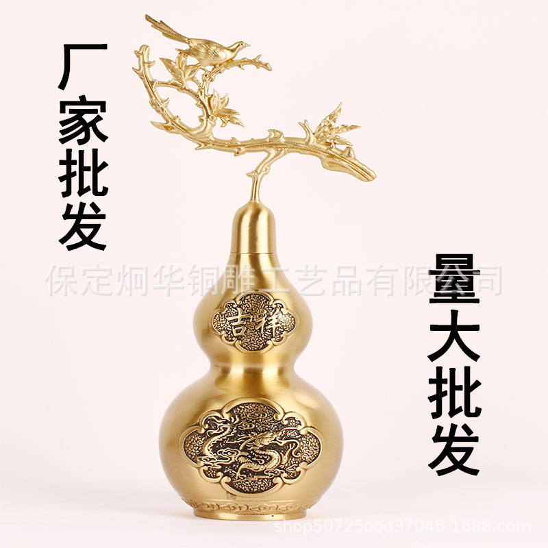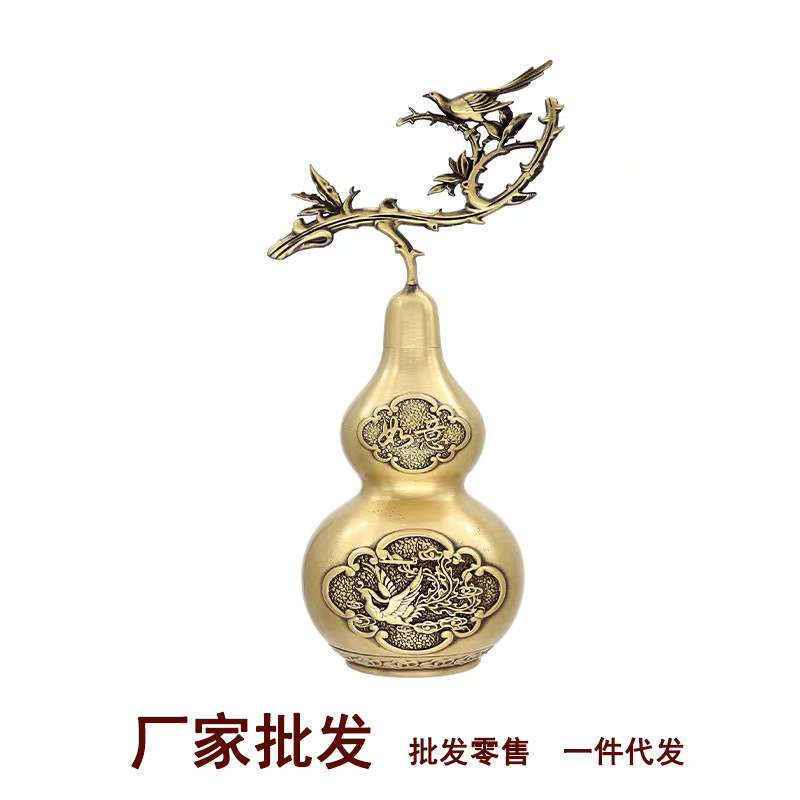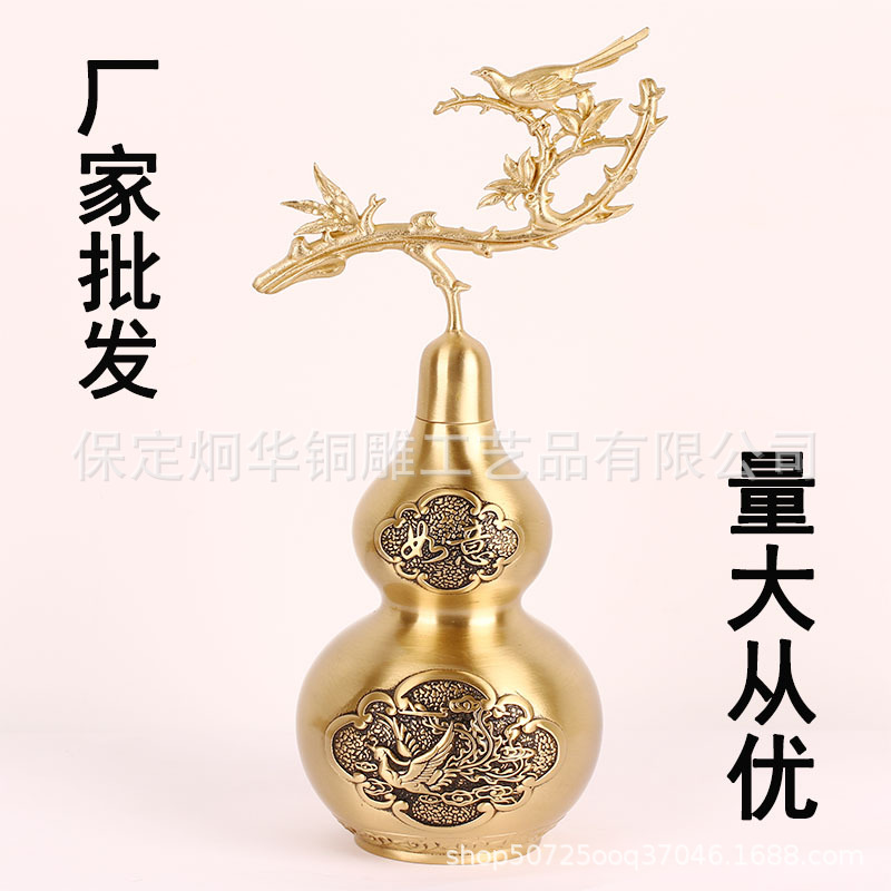 批发喜上眉梢吉祥如意铜葫芦家居办公室空心开口黄铜葫芦摆件