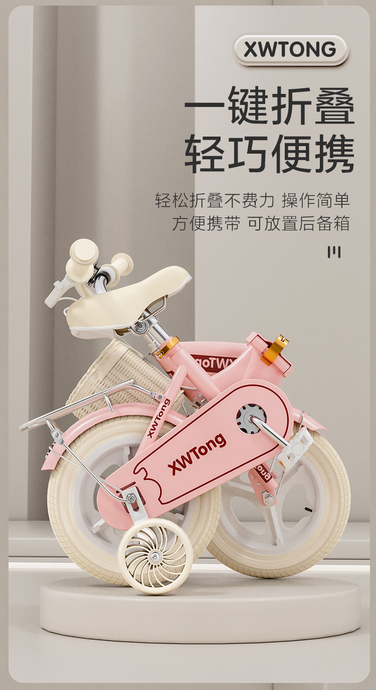 儿童自行车男女孩3岁5岁6岁 12/16/18/20寸单车折叠自行车脚踏车