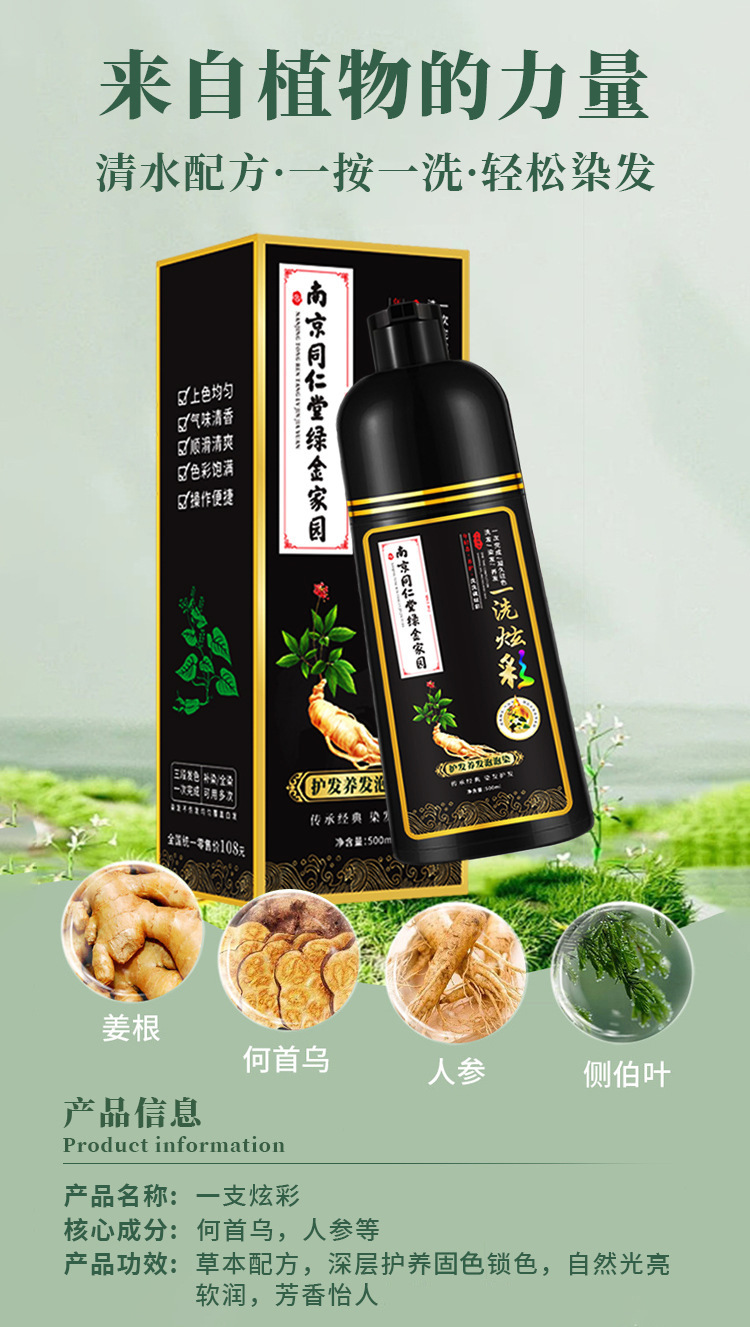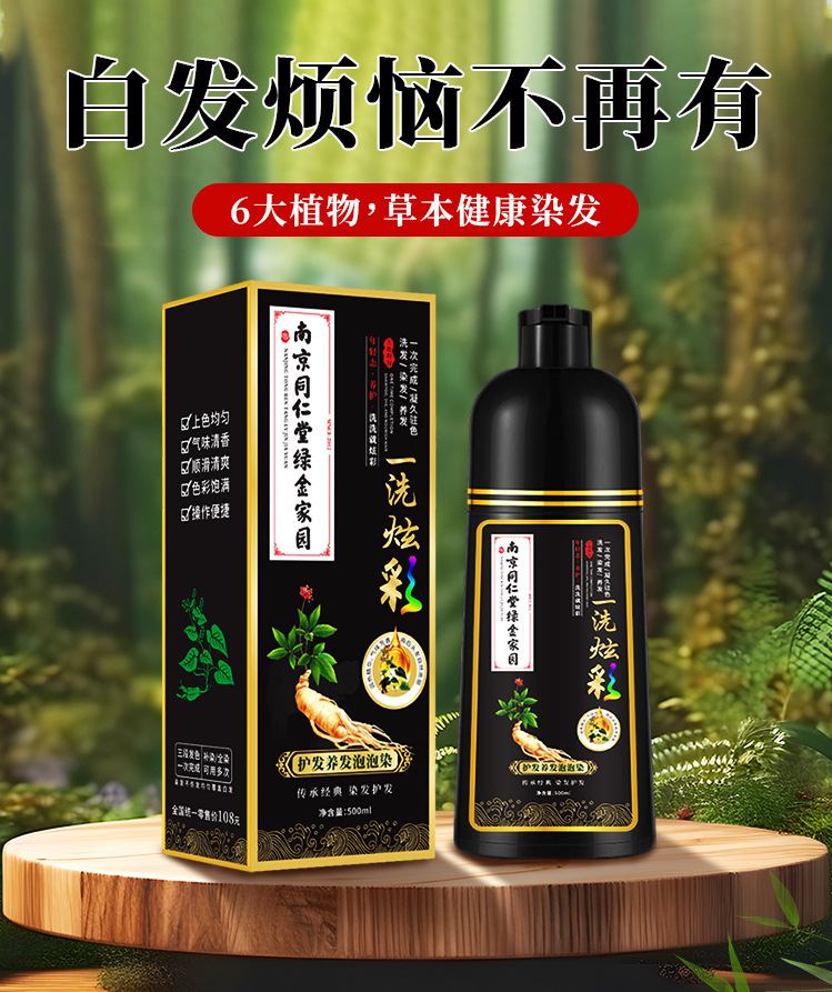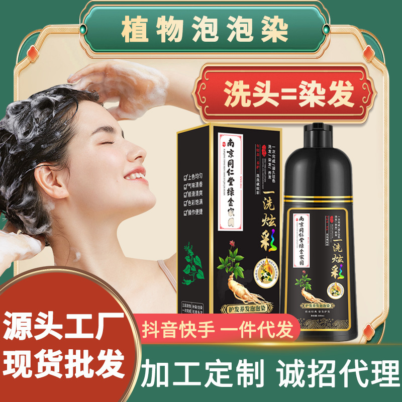 南京同仁堂植物泡泡染发剂流行色染发膏无需调配一洗就黑正品家用