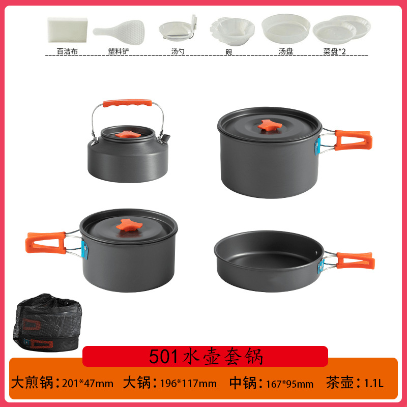 户外露营套锅烧水壶锅具装备野营野炊用品便携式炊具厨具煮茶全套