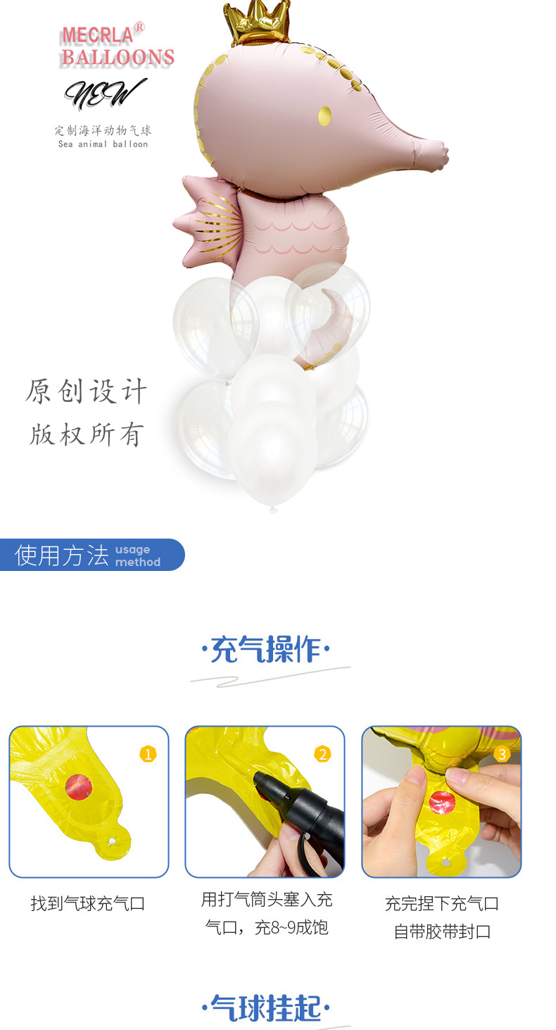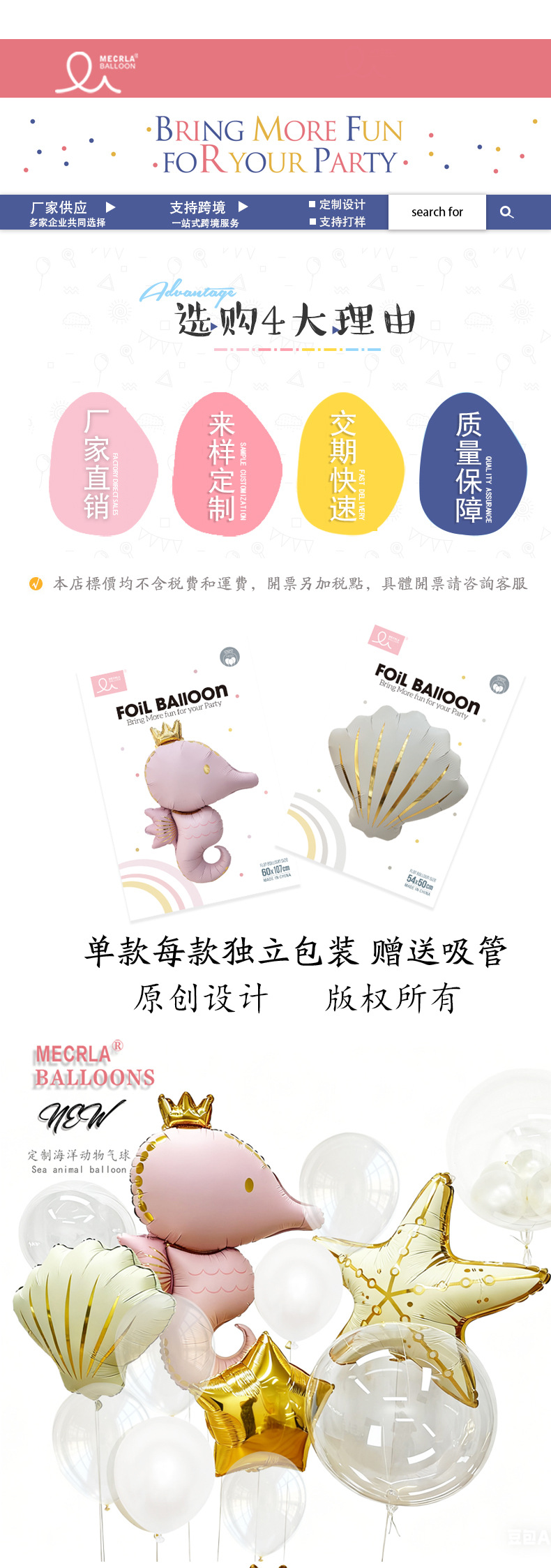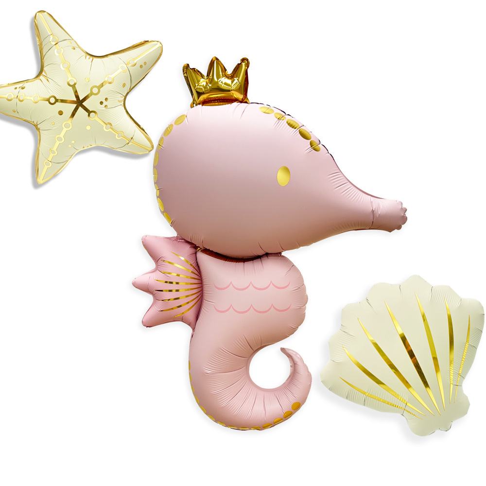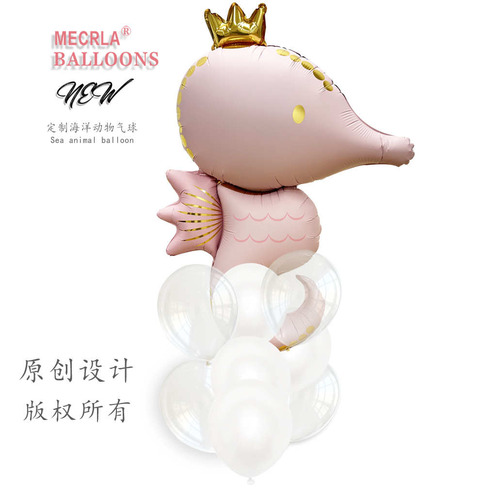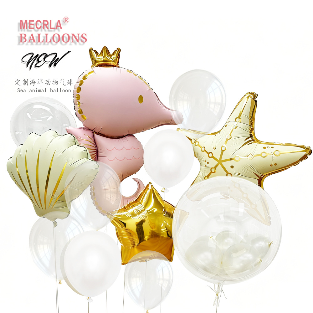 MECRLA哑光皇冠海马 贝壳 海星 儿童 婚礼海洋主题们梦幻装饰气球