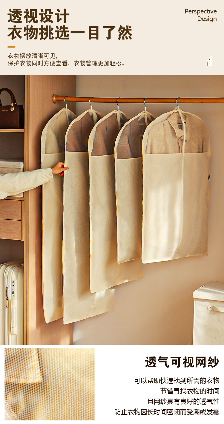 立体棉麻透气衣服防尘罩家用衣柜挂衣袋西服大衣皮草可视大防尘袋