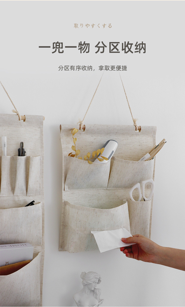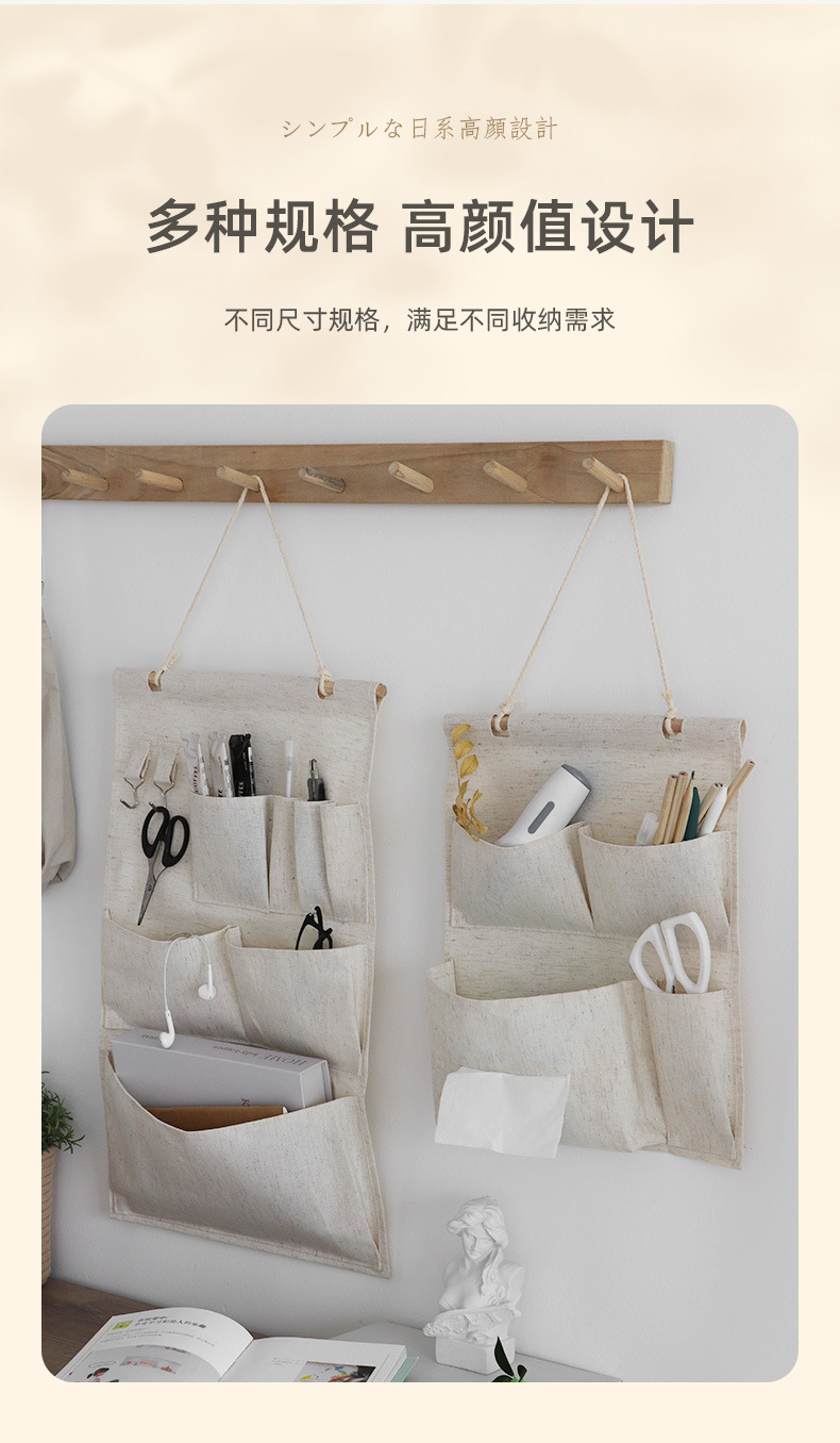 跨境代发棉麻悬挂式门后挂墙储物袋床头手机置物袋寝室宿舍挂兜