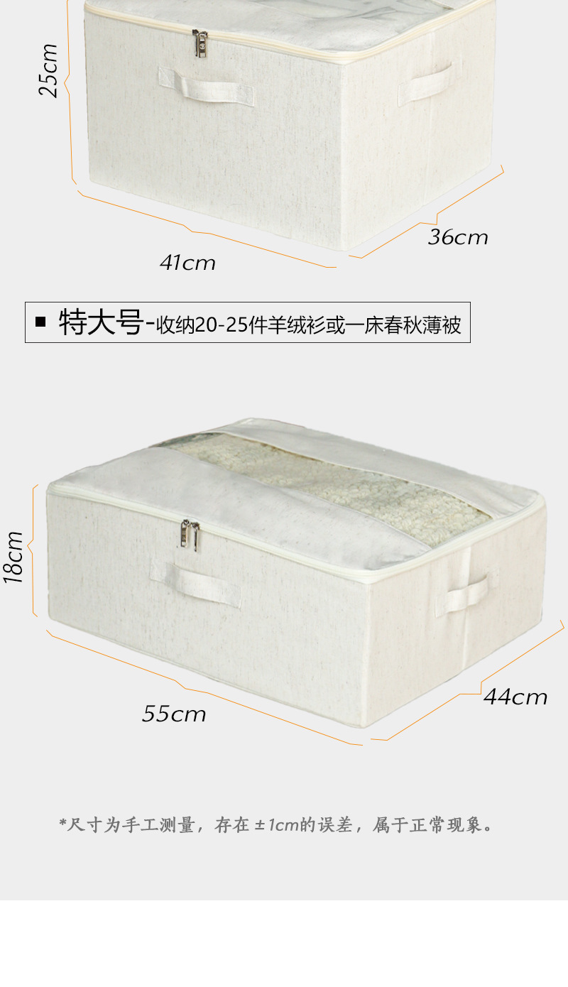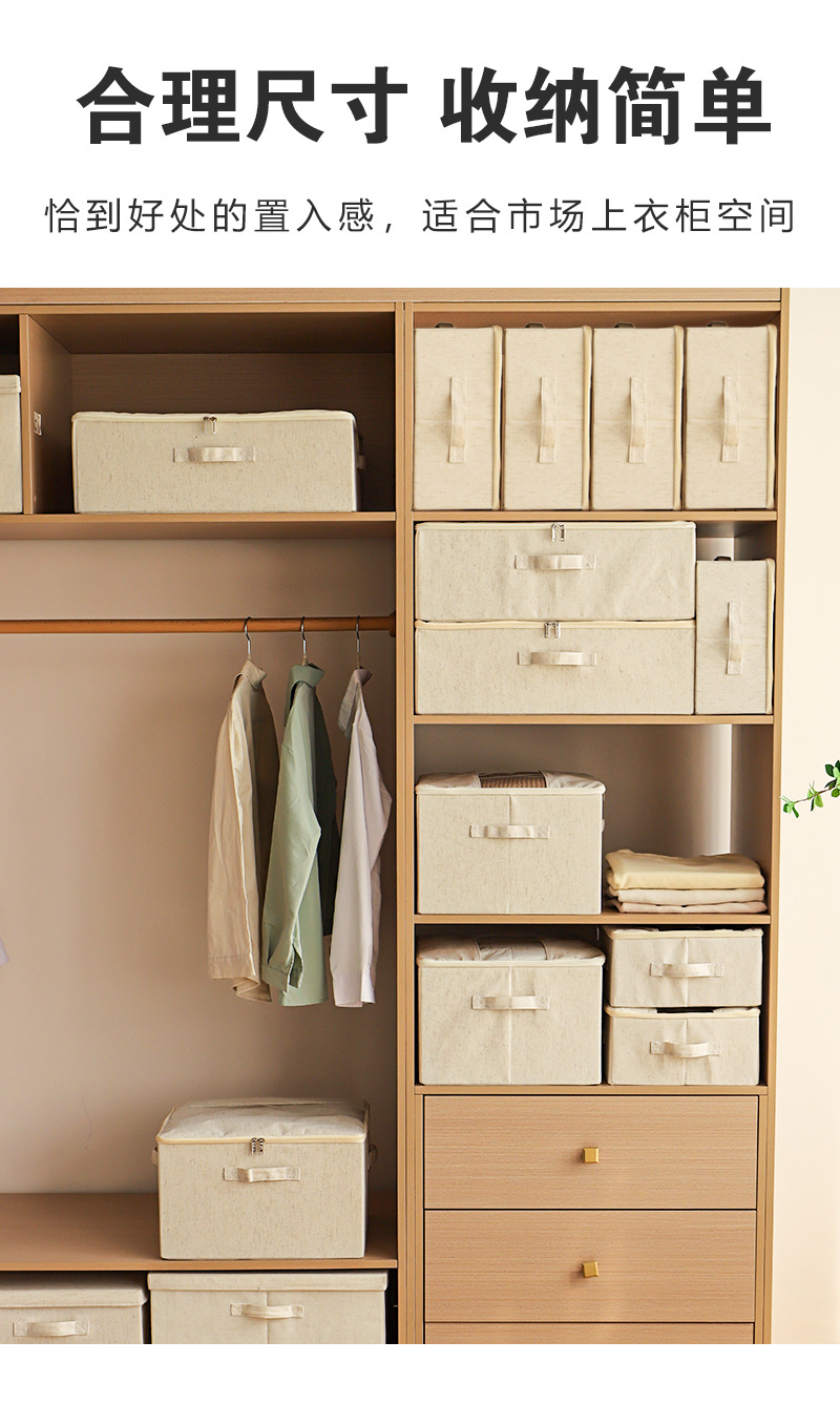天山棉麻软盖收纳箱多功能衣物整理盒可折叠衣柜分层大容量储物箱