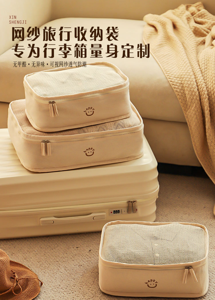 纯棉透视衣物收纳袋家用大容量防尘袋便携旅行袋出差行李箱储物袋