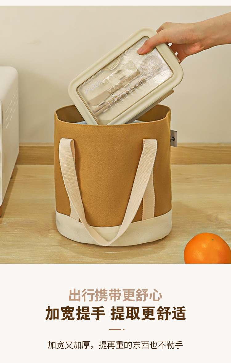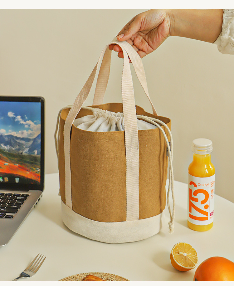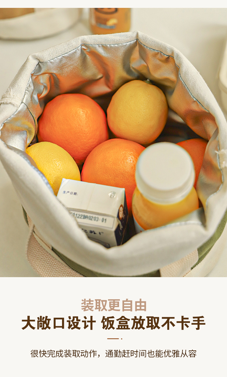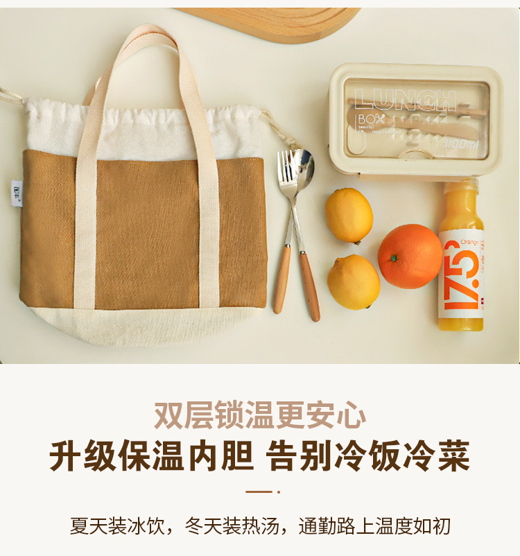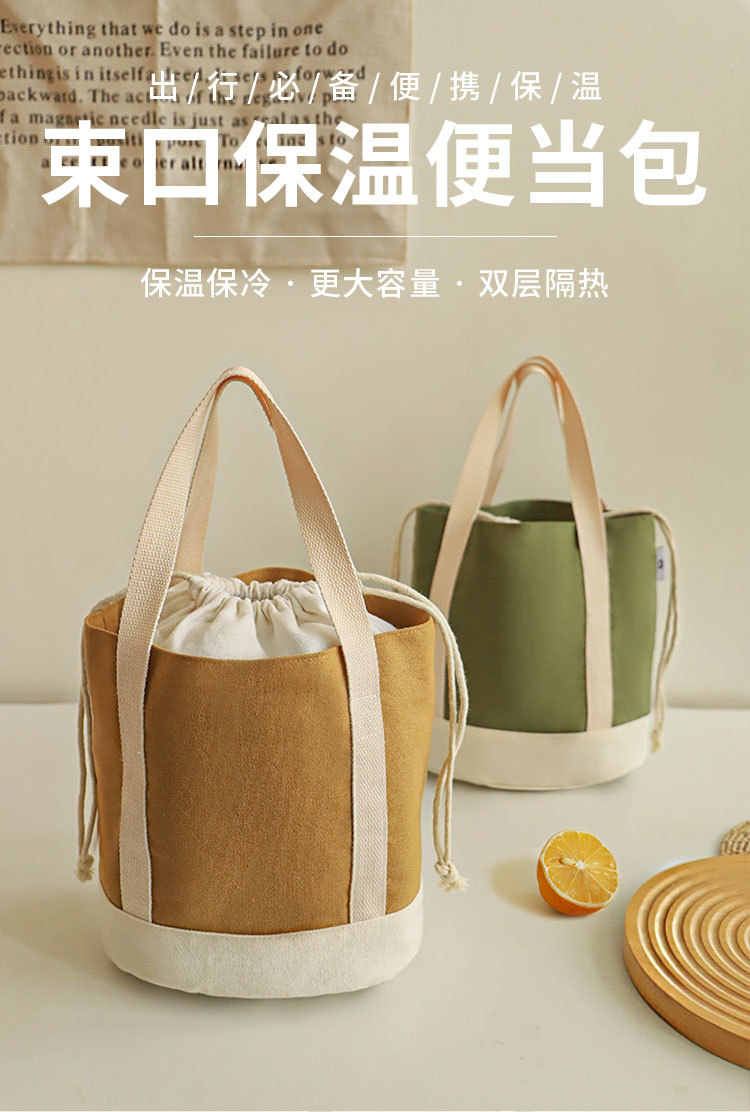 加厚帆布便当包手提饭袋保温保鲜午餐包学生上班族便携束口饭盒袋