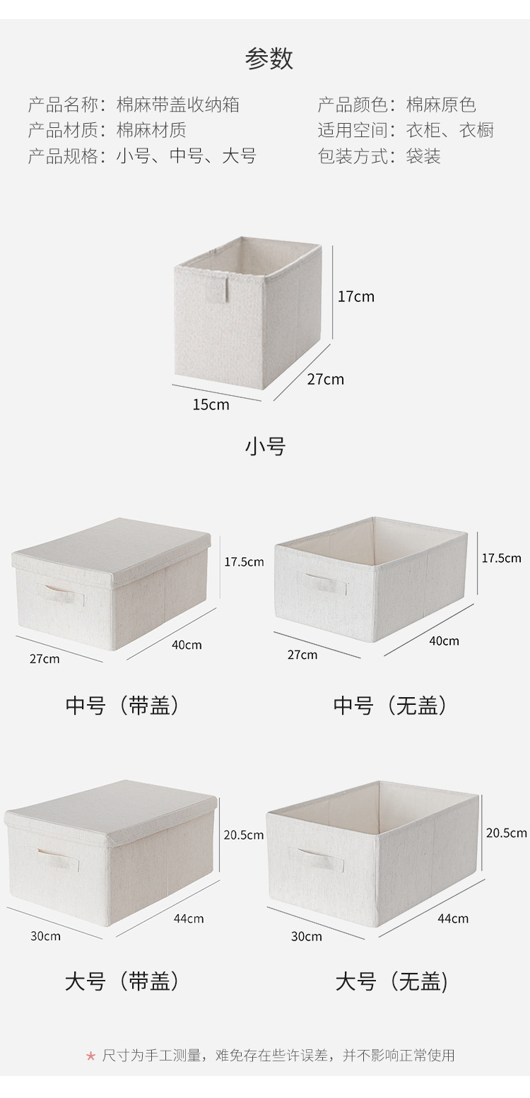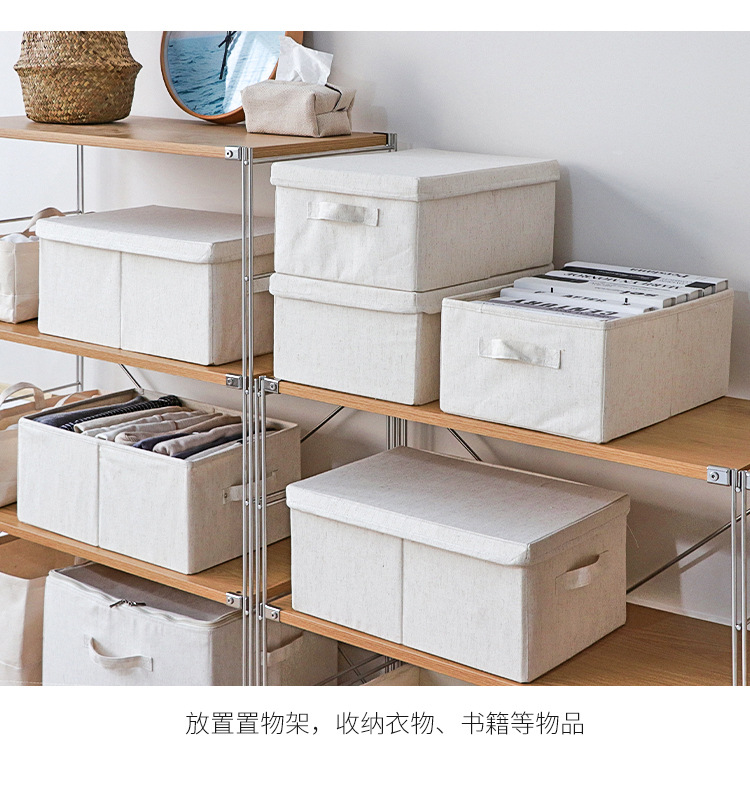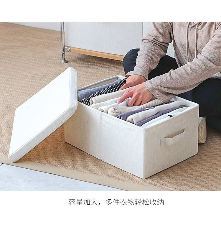 天山棉麻衣物收纳箱带盖衣柜可折叠收纳盒衣服零食玩具日式整理箱