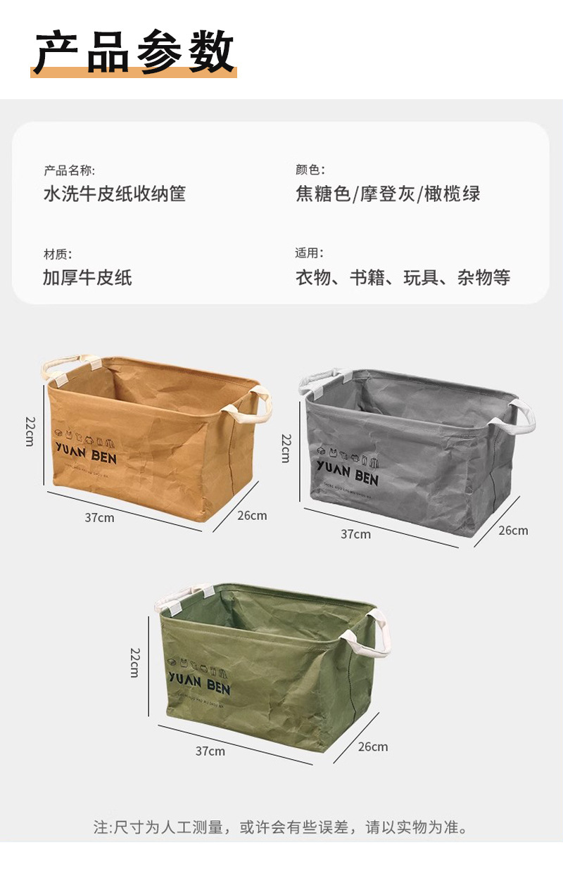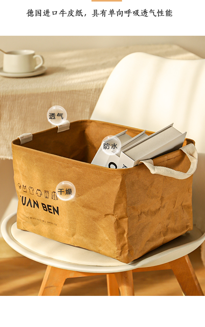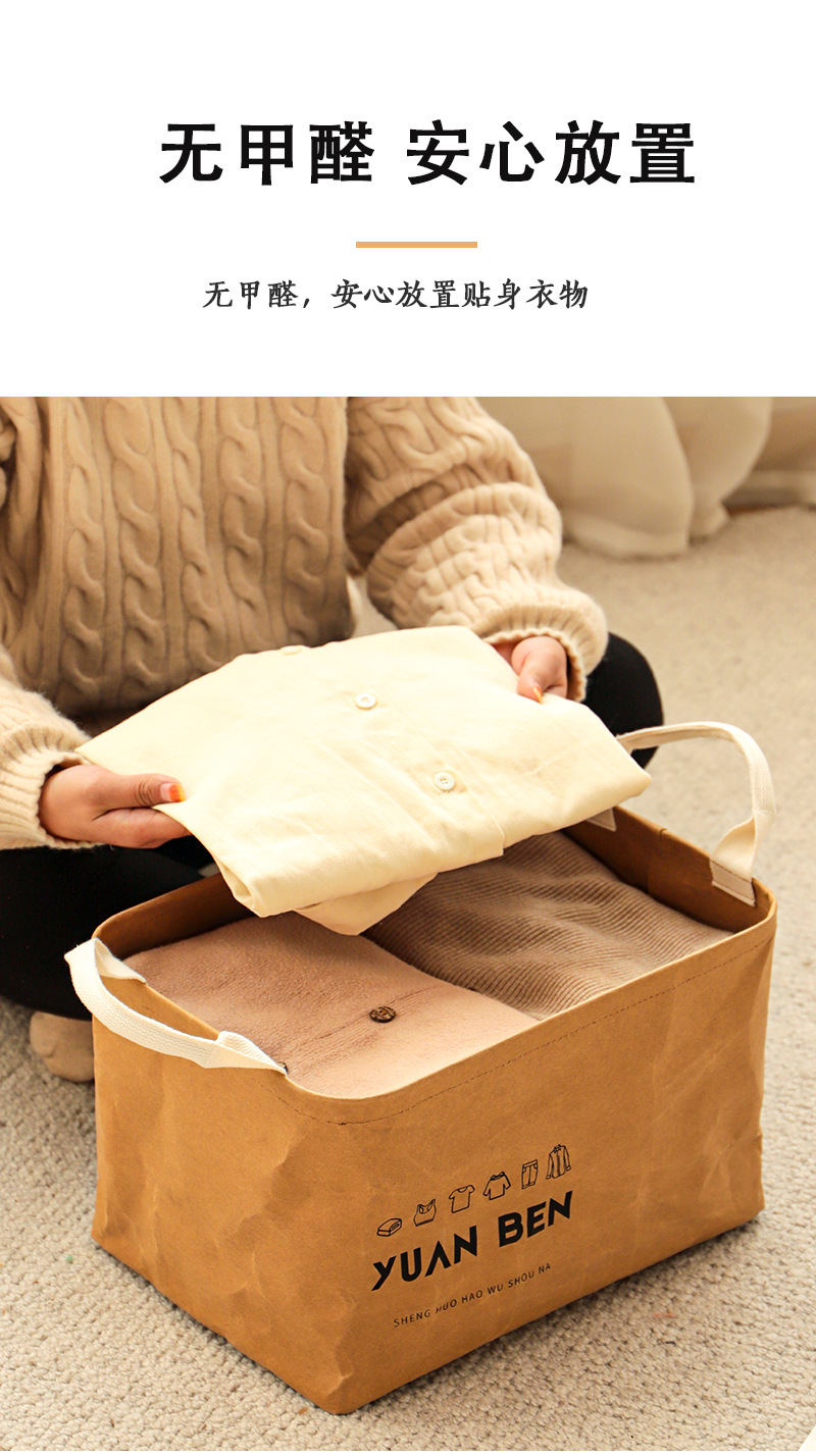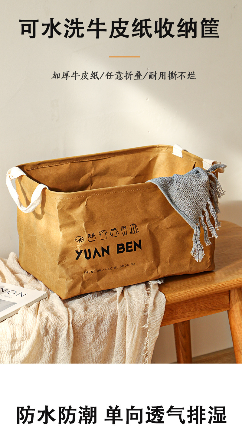 牛皮纸脏衣篓脏衣服收纳筐杂物整理储物筐家用大容量可手提折叠框
