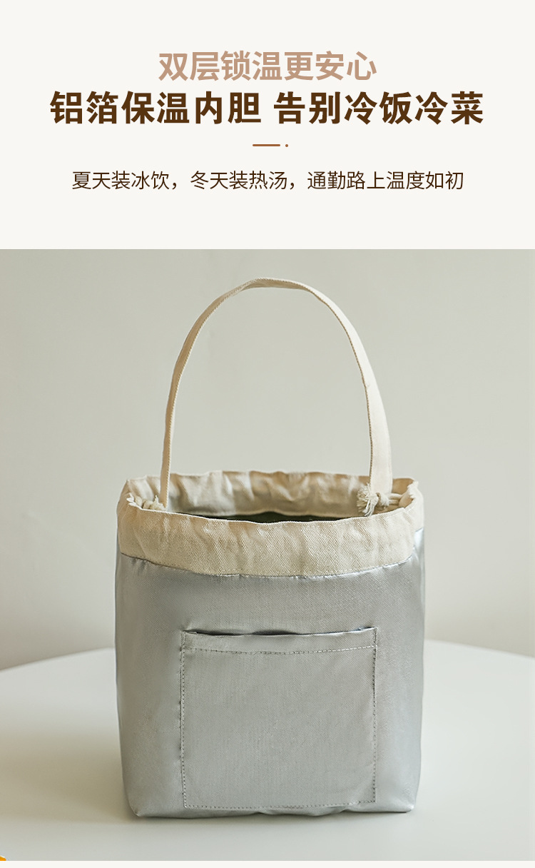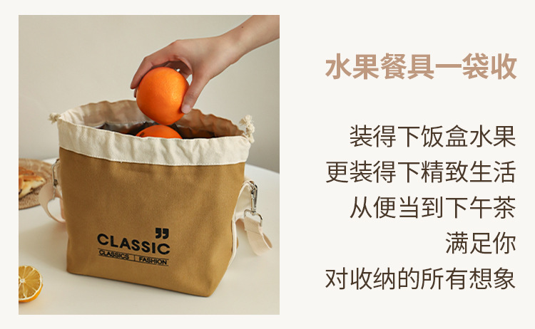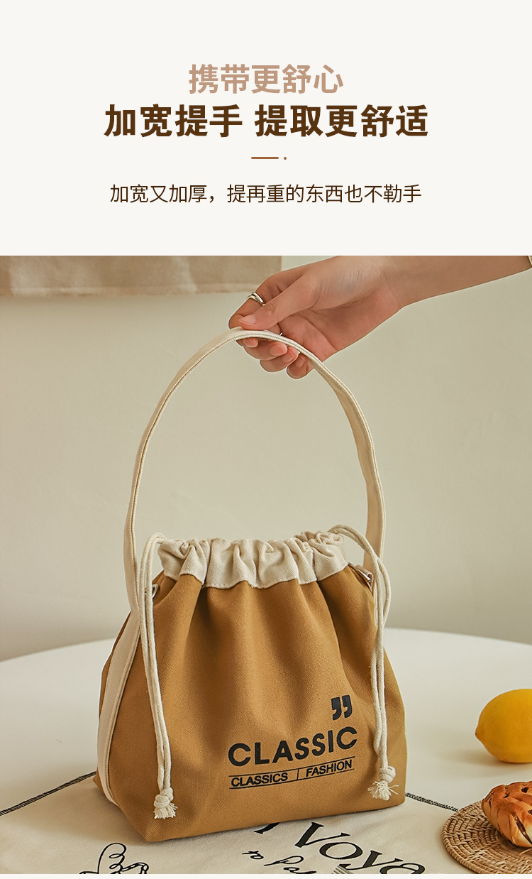 日式帆布拼接加大便当包上班保温保鲜饭盒袋学生便携多功能手提袋