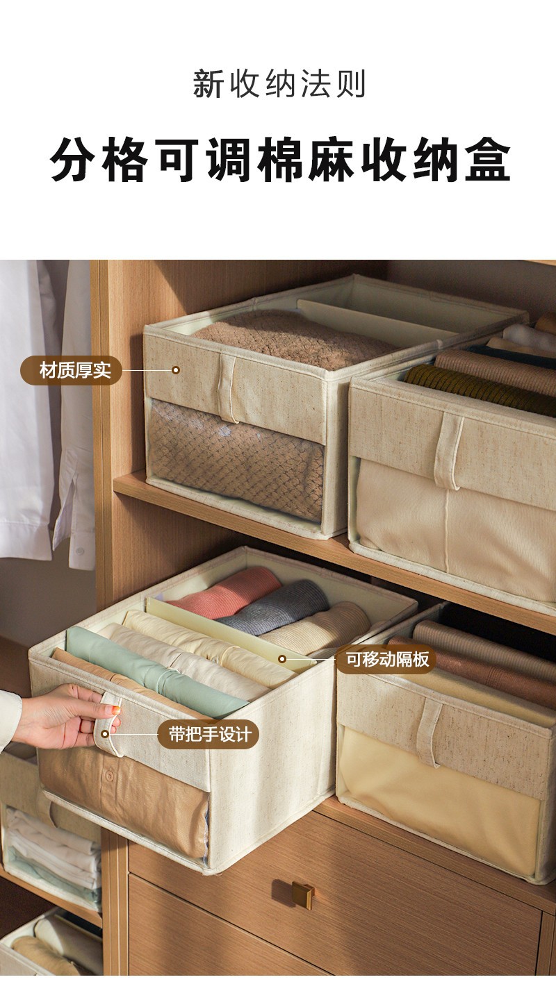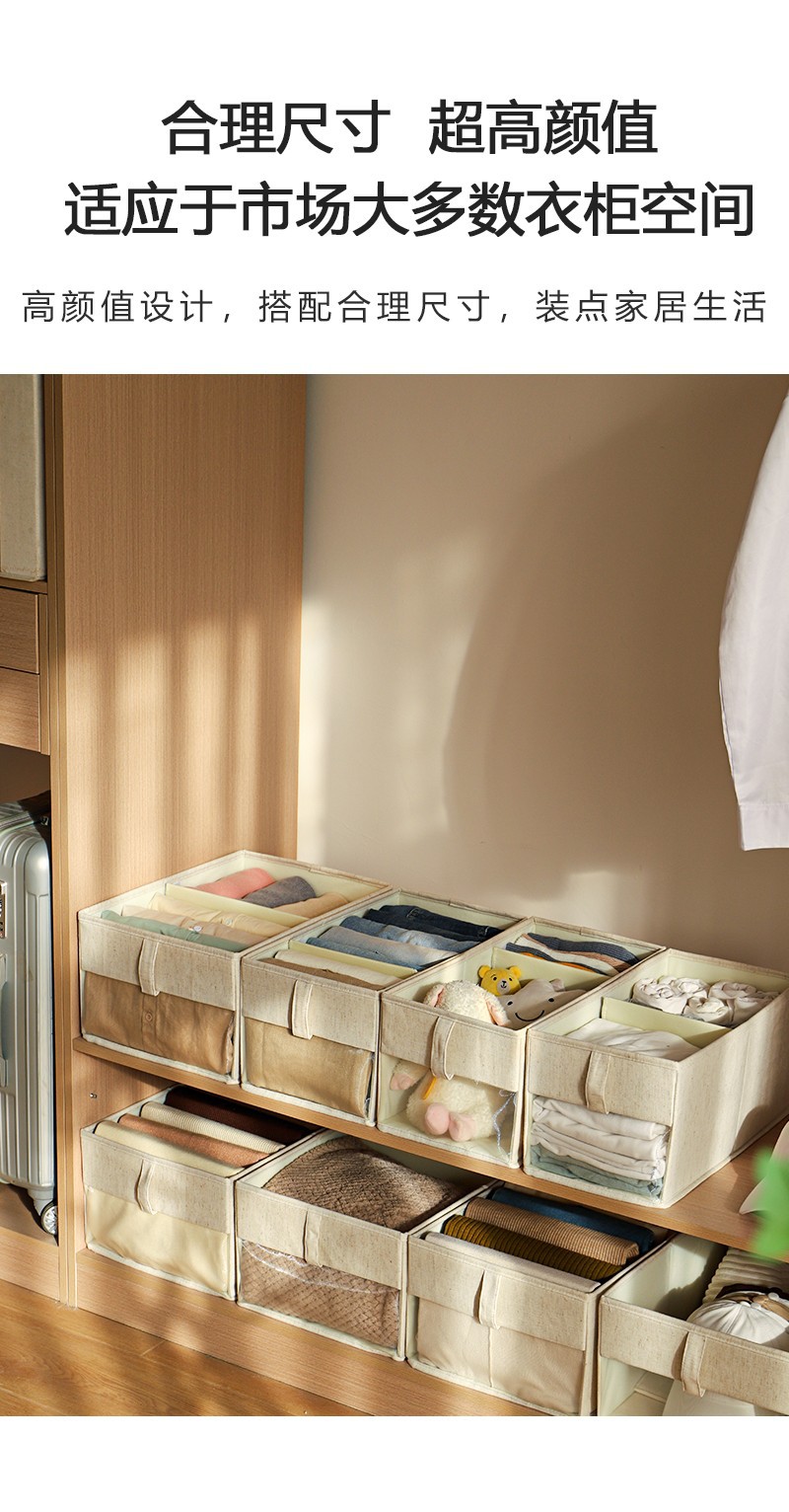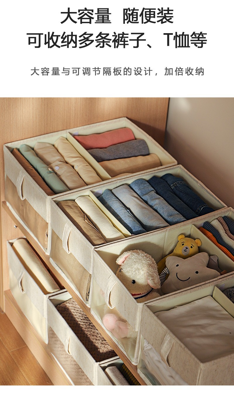 天山棉麻视窗多功能收纳盒衣物抽屉式收纳箱分隔可调节整理储物盒