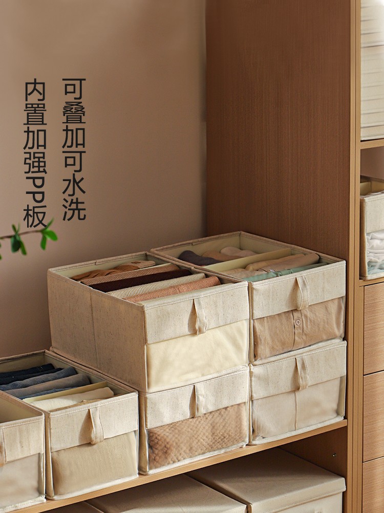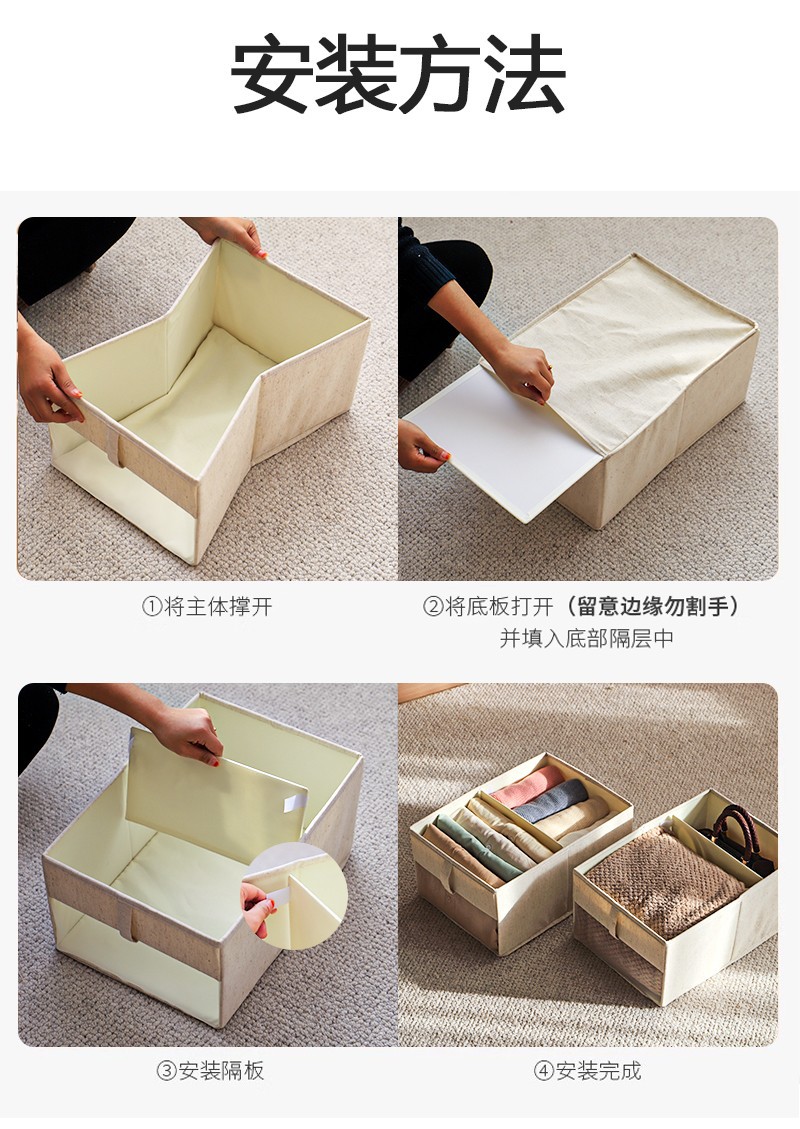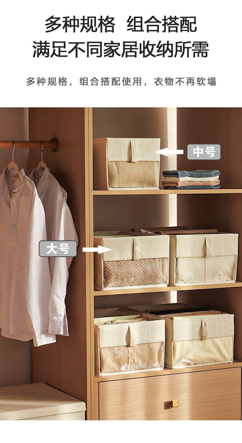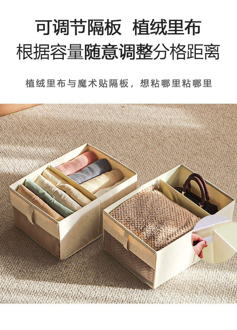 天山棉麻视窗多功能收纳盒衣物抽屉式收纳箱分隔可调节整理储物盒