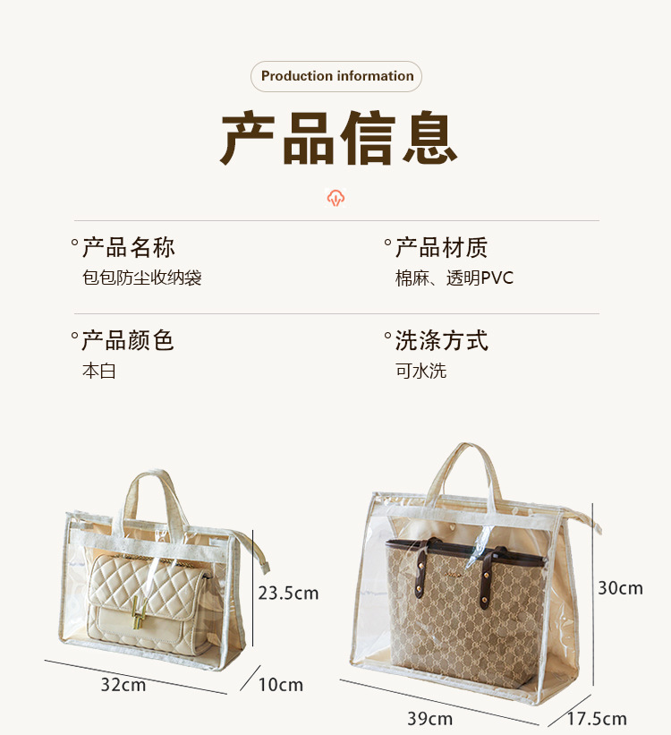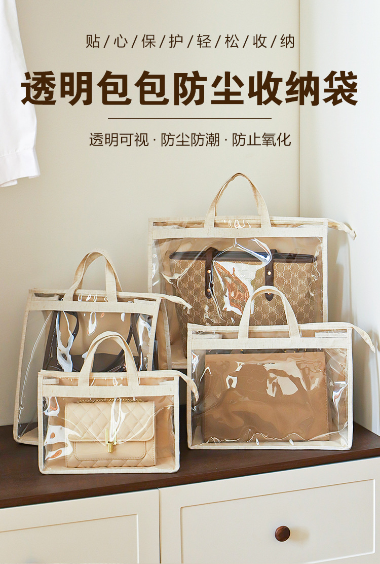 pvc防尘包包收纳袋奢侈品拉链袋密封可视袋子衣柜挂袋折叠收纳袋