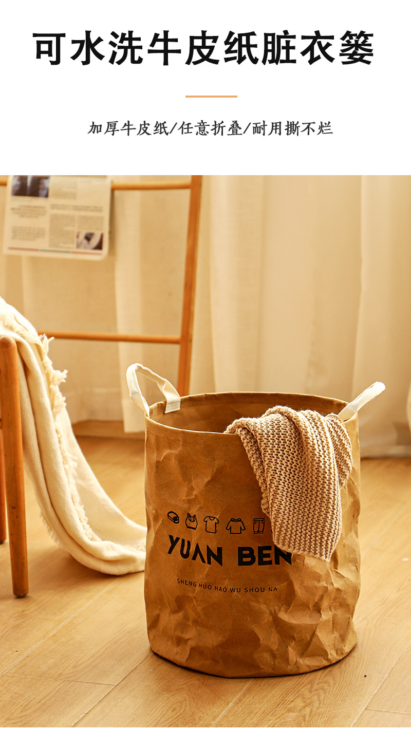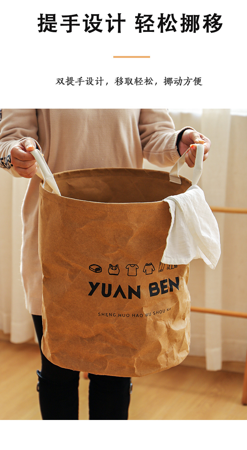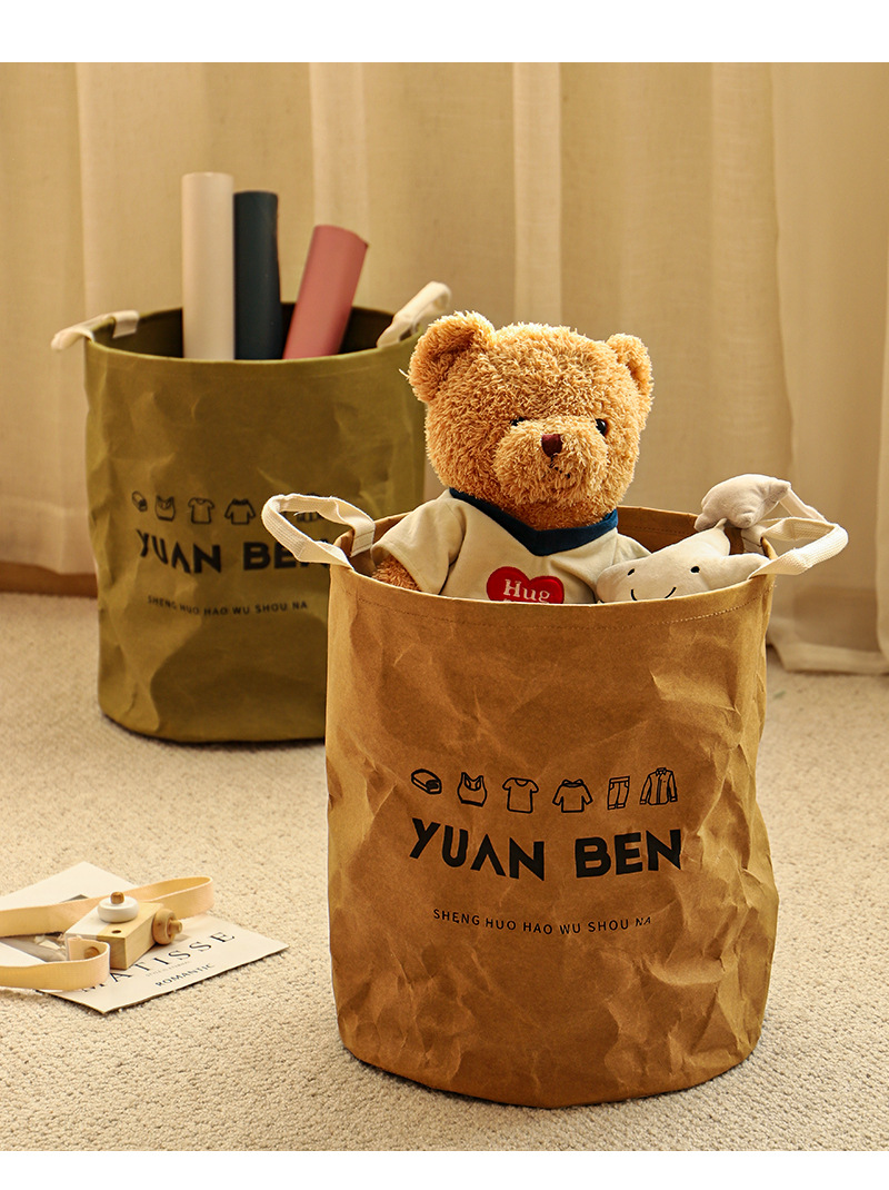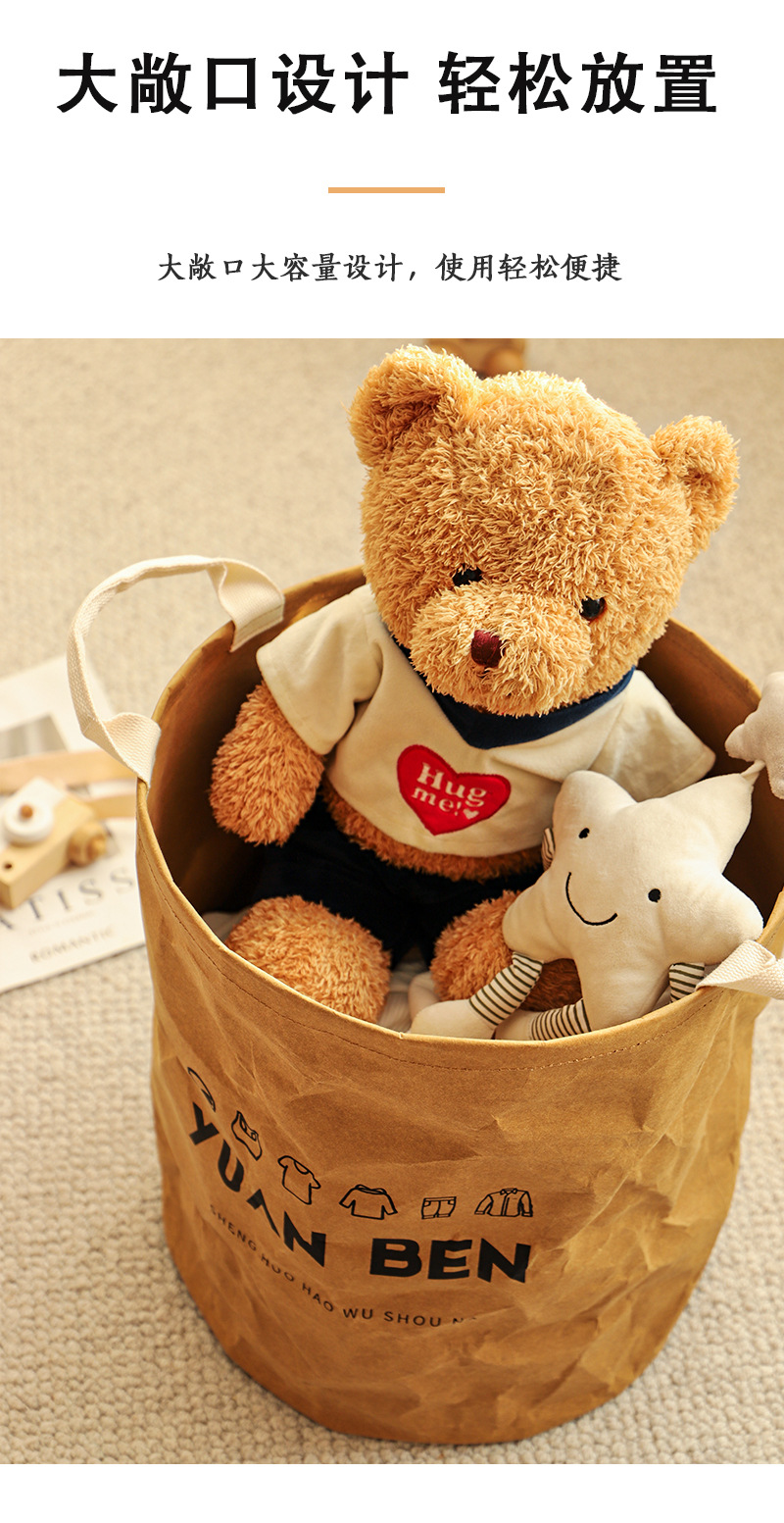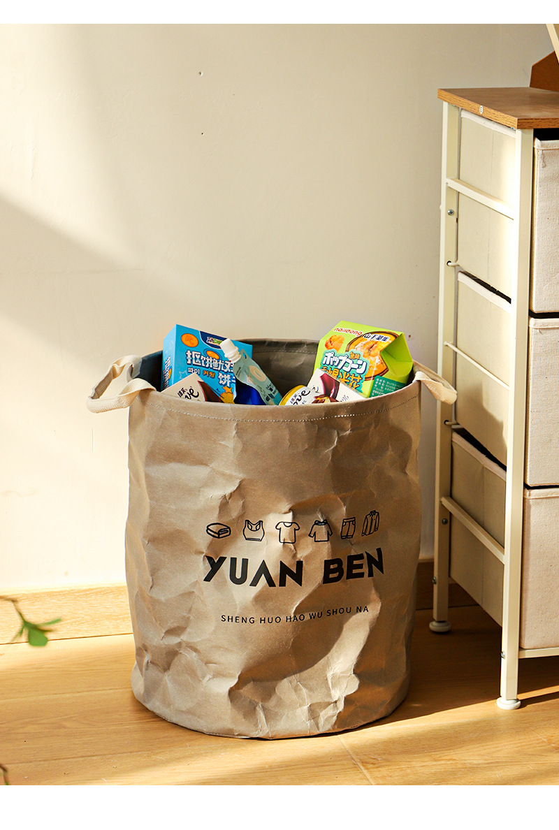 客厅储物间牛皮纸衣物收纳桶脏衣篓家用毛绒玩具整理筐子防水防潮