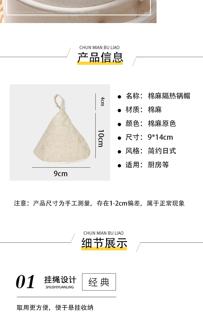 天山棉麻日式厨房隔热防烫锅盖帽加厚悬挂锅耳套布艺砂锅把手手套