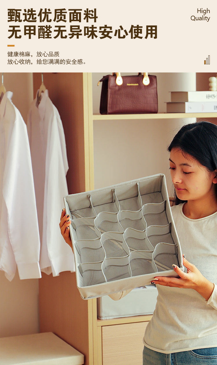 家用内衣内裤袜子收纳盒布艺多功能分格抽屉式放文胸整理大内衣盒
