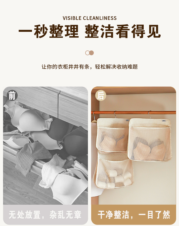 袜子收纳挂袋内衣内裤网兜衣柜悬挂收纳宿舍床边墙壁大容量收纳袋