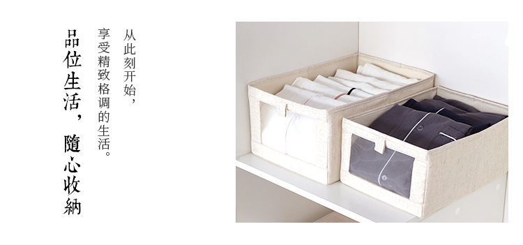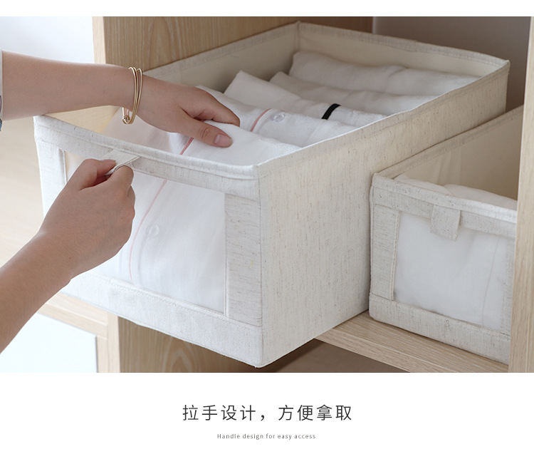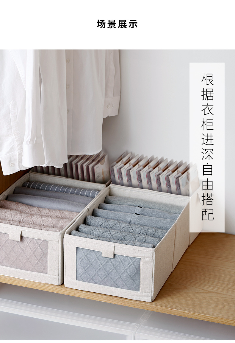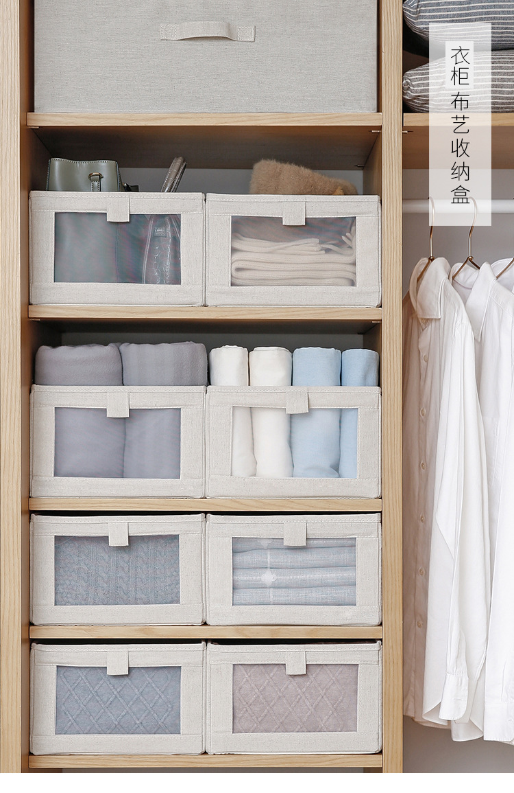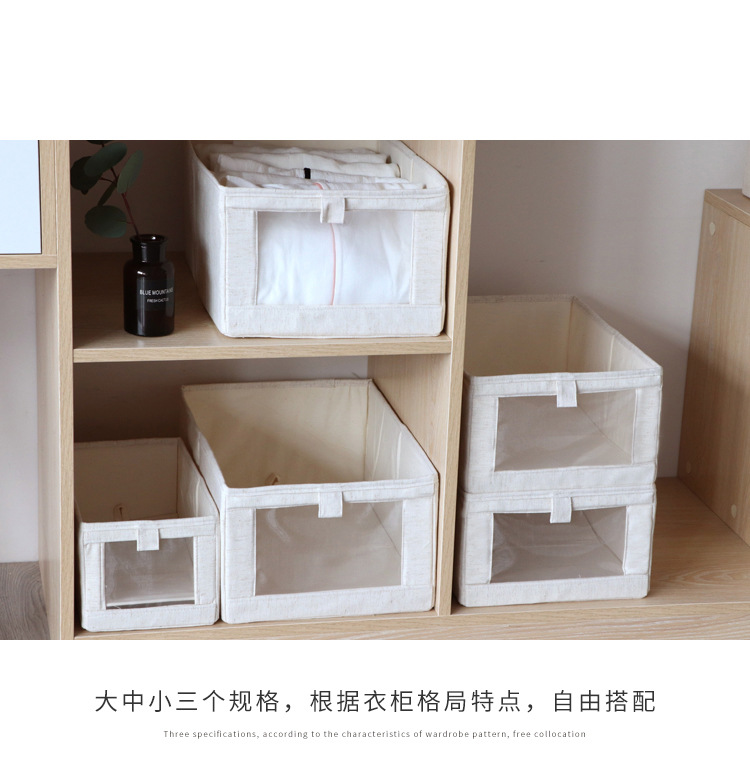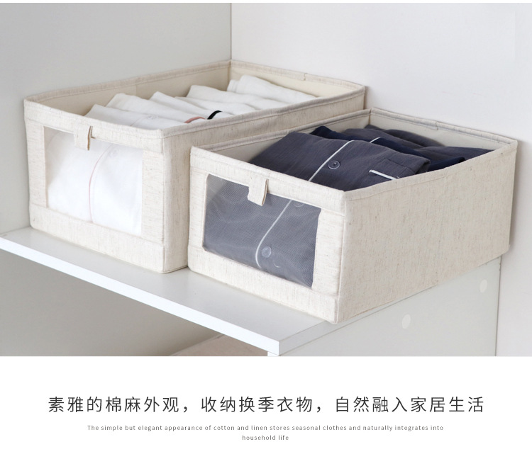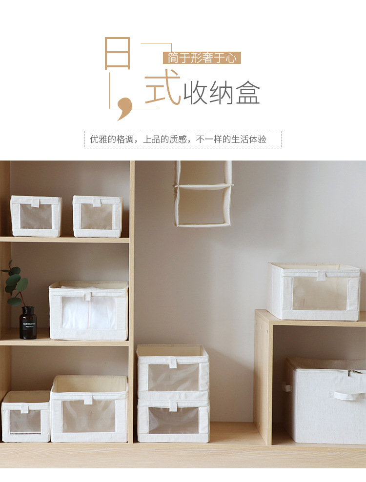日式天山棉麻收纳盒视窗折叠衣柜抽屉式收纳盒玩具衣服杂物整理箱