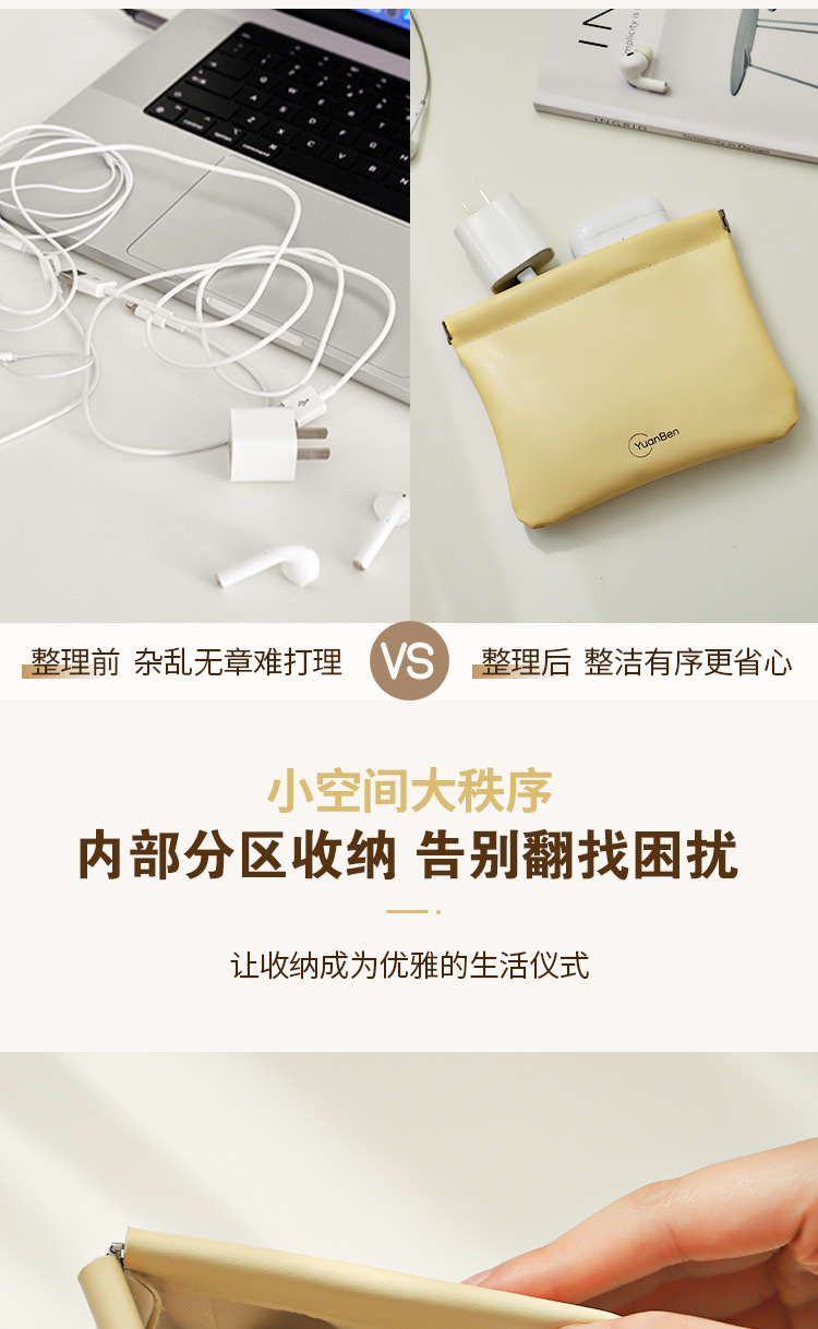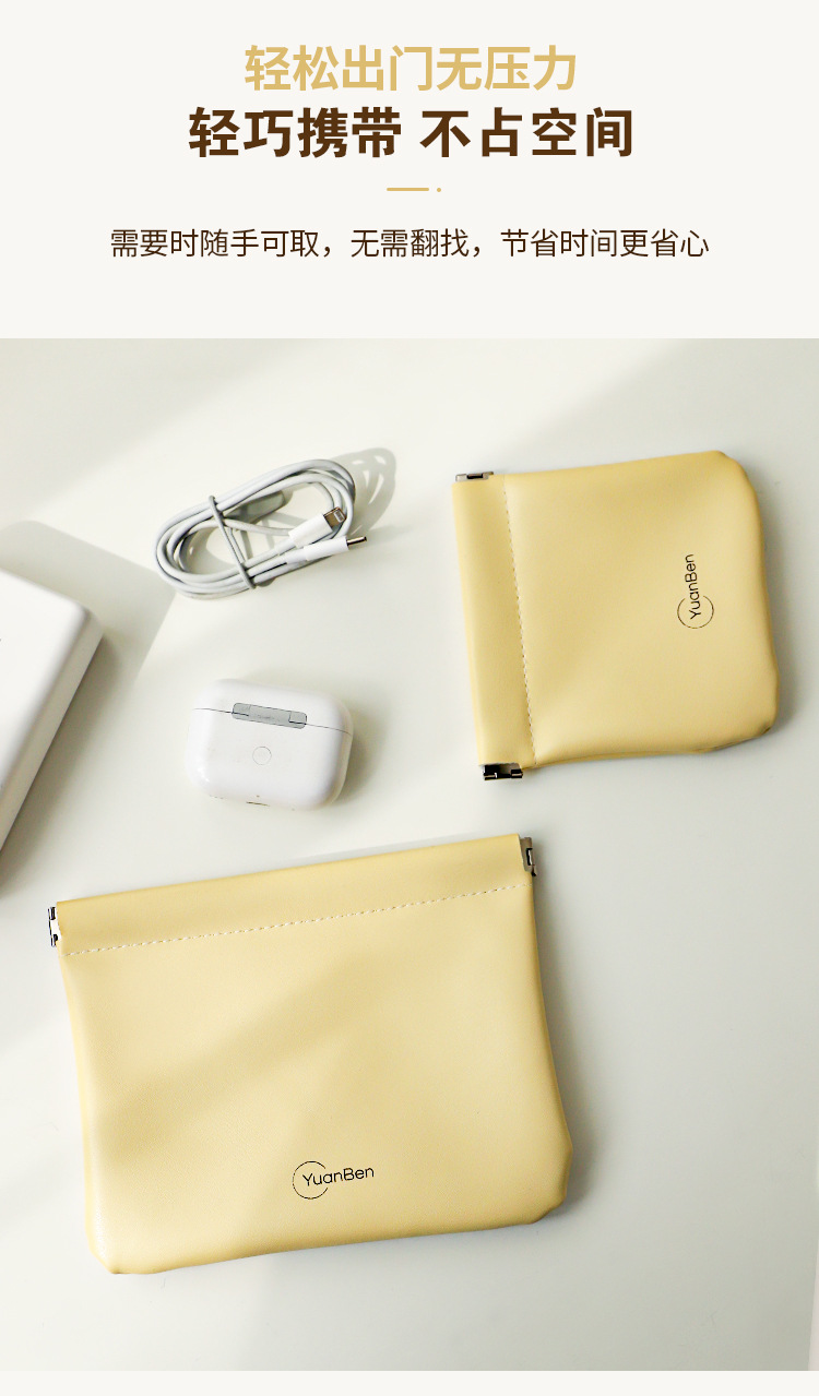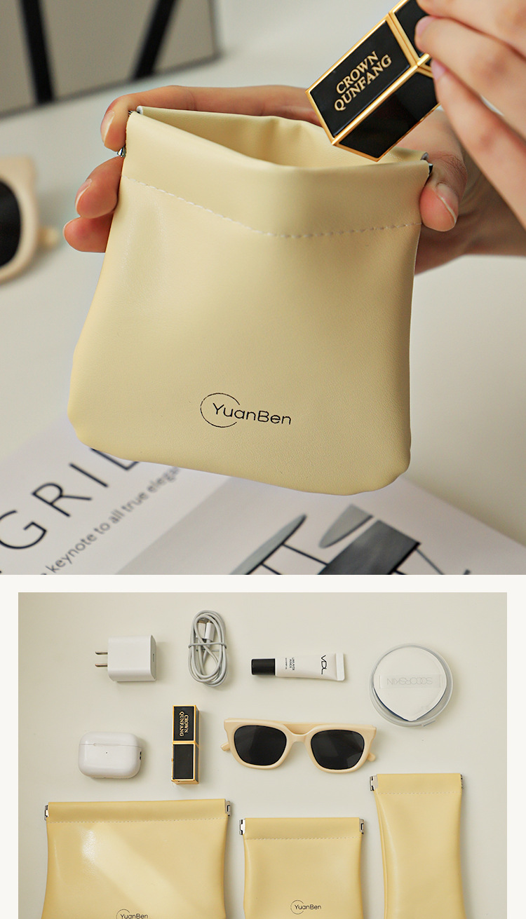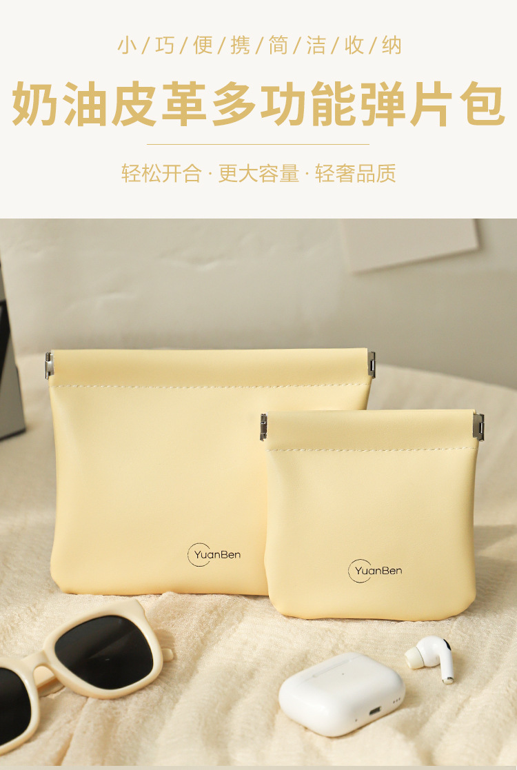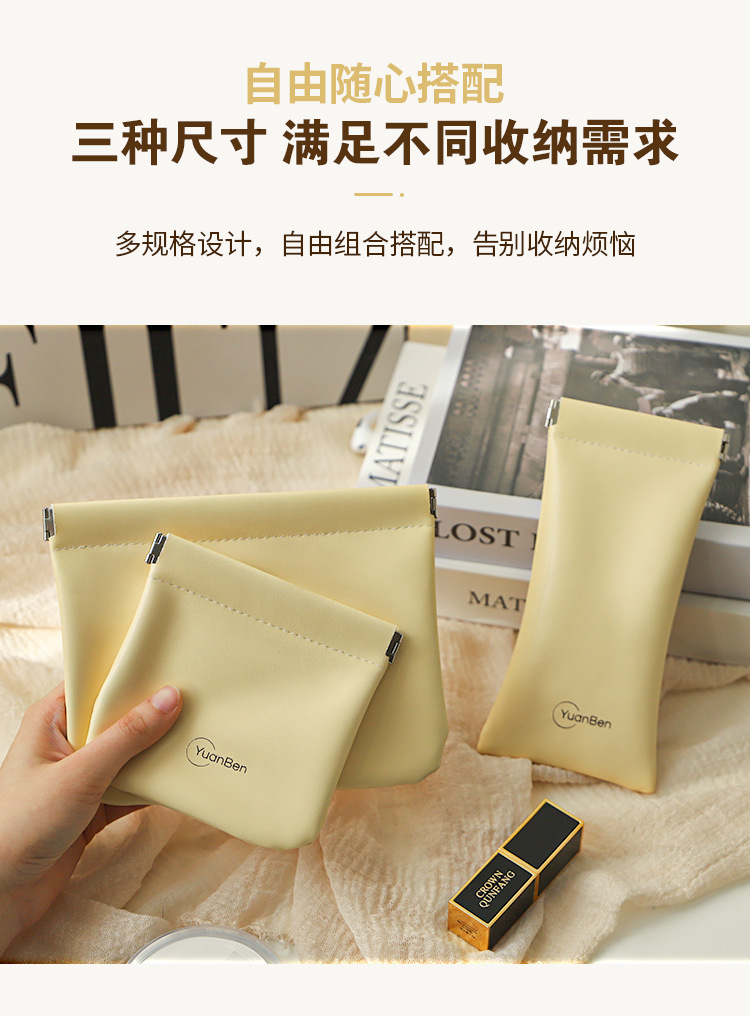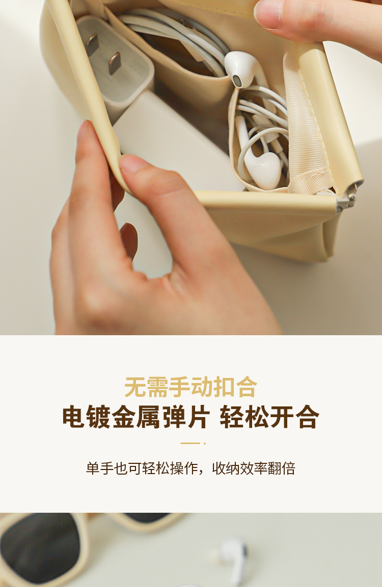 PU弹片自动闭合收纳袋多功能口红眼影化妆袋耳机数据线便携随身袋