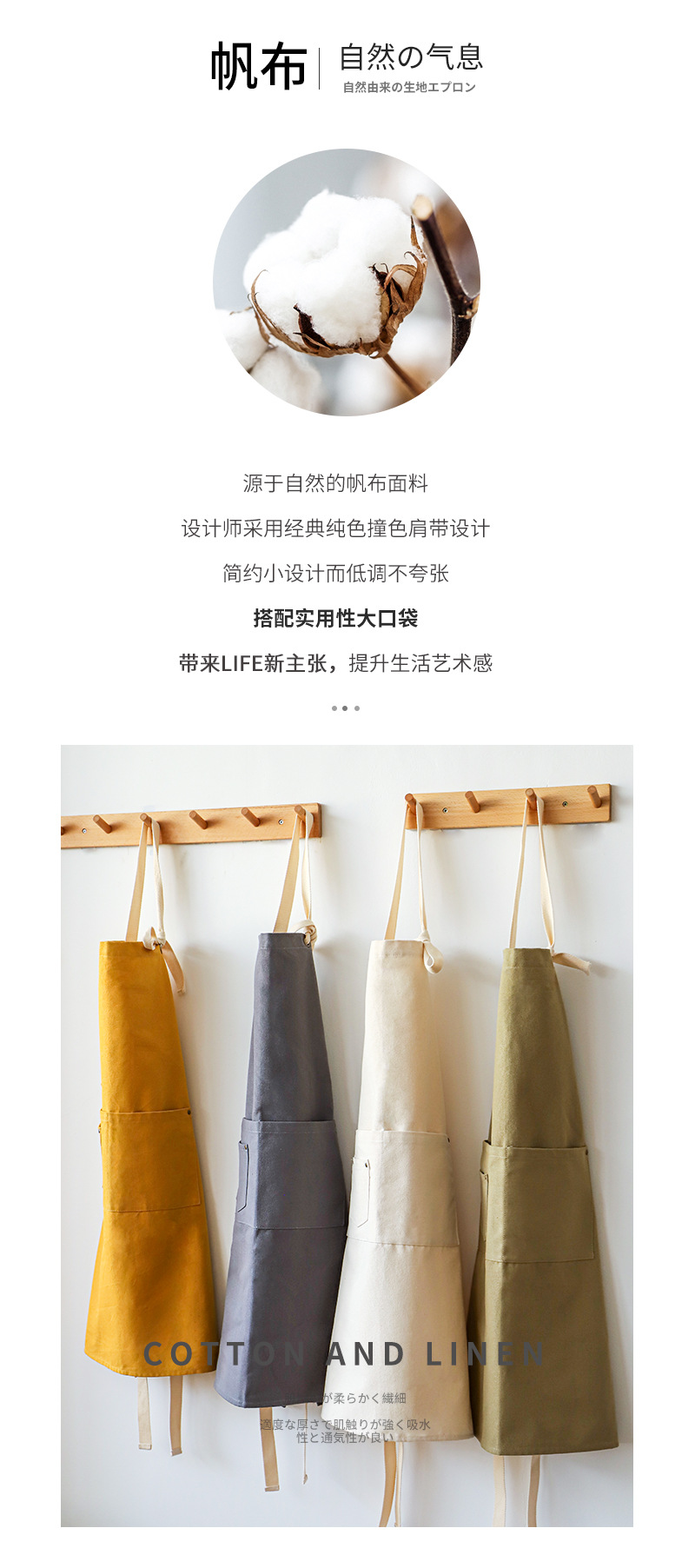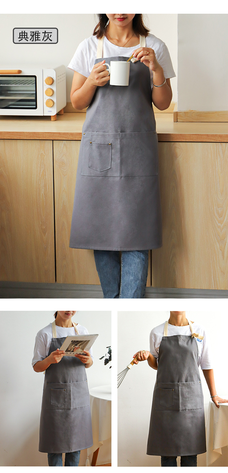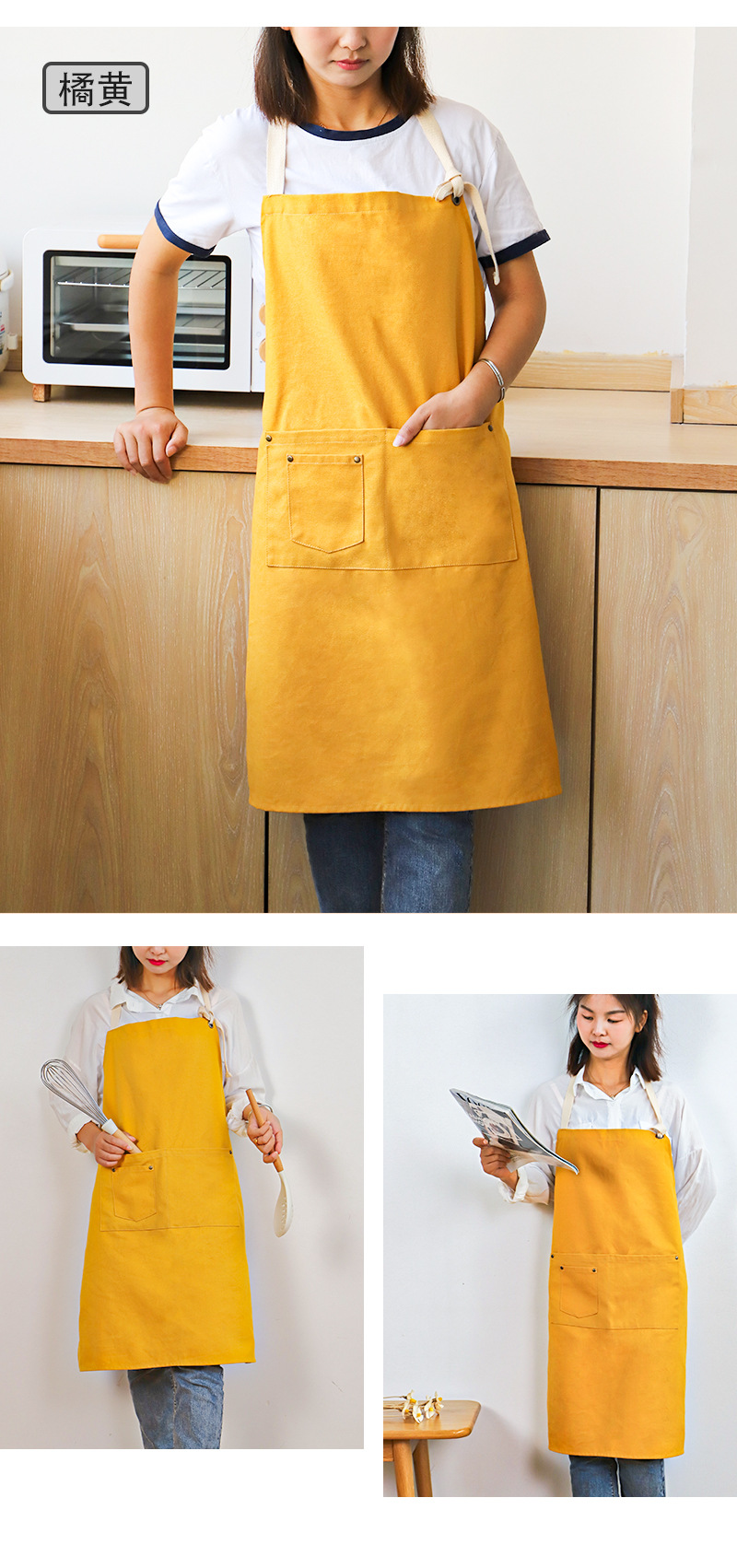 帆布加厚围裙厨房做饭防水防油污挂脖款围裙奶茶店花店餐饮工作服