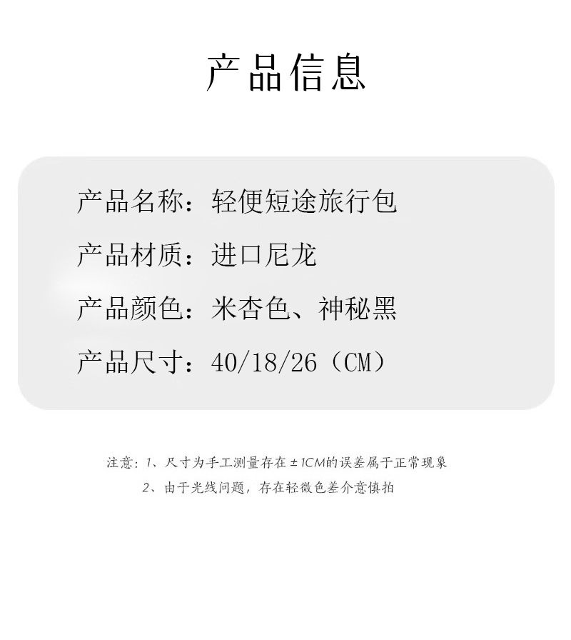 尼龙防水大容量手提包旅行出差衣物收纳袋瑜伽健身通勤便携单肩包