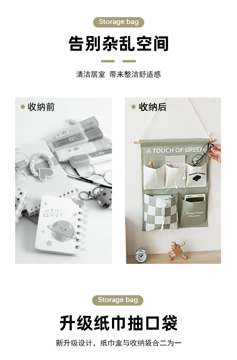 厂家布艺收纳袋挂袋墙挂式置物墙上悬挂宿舍神器卧室布袋手机挂兜