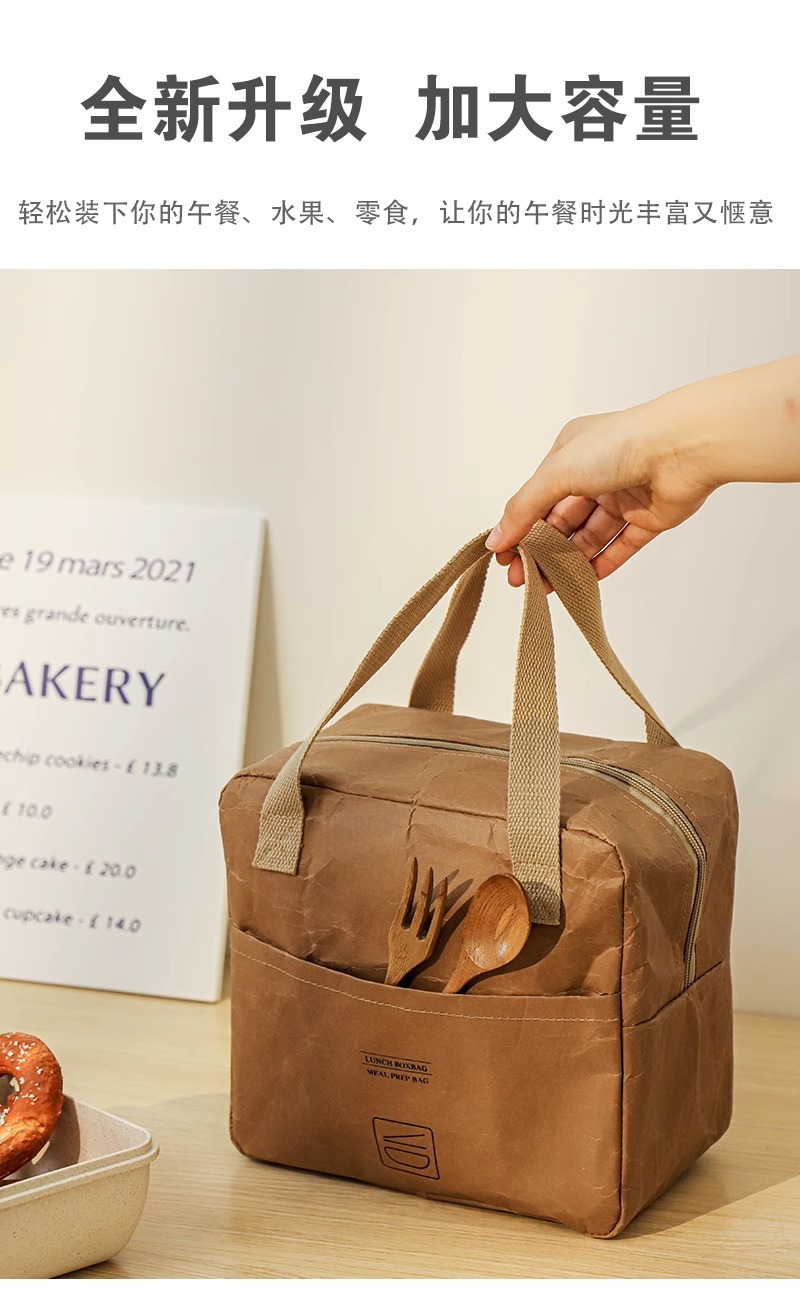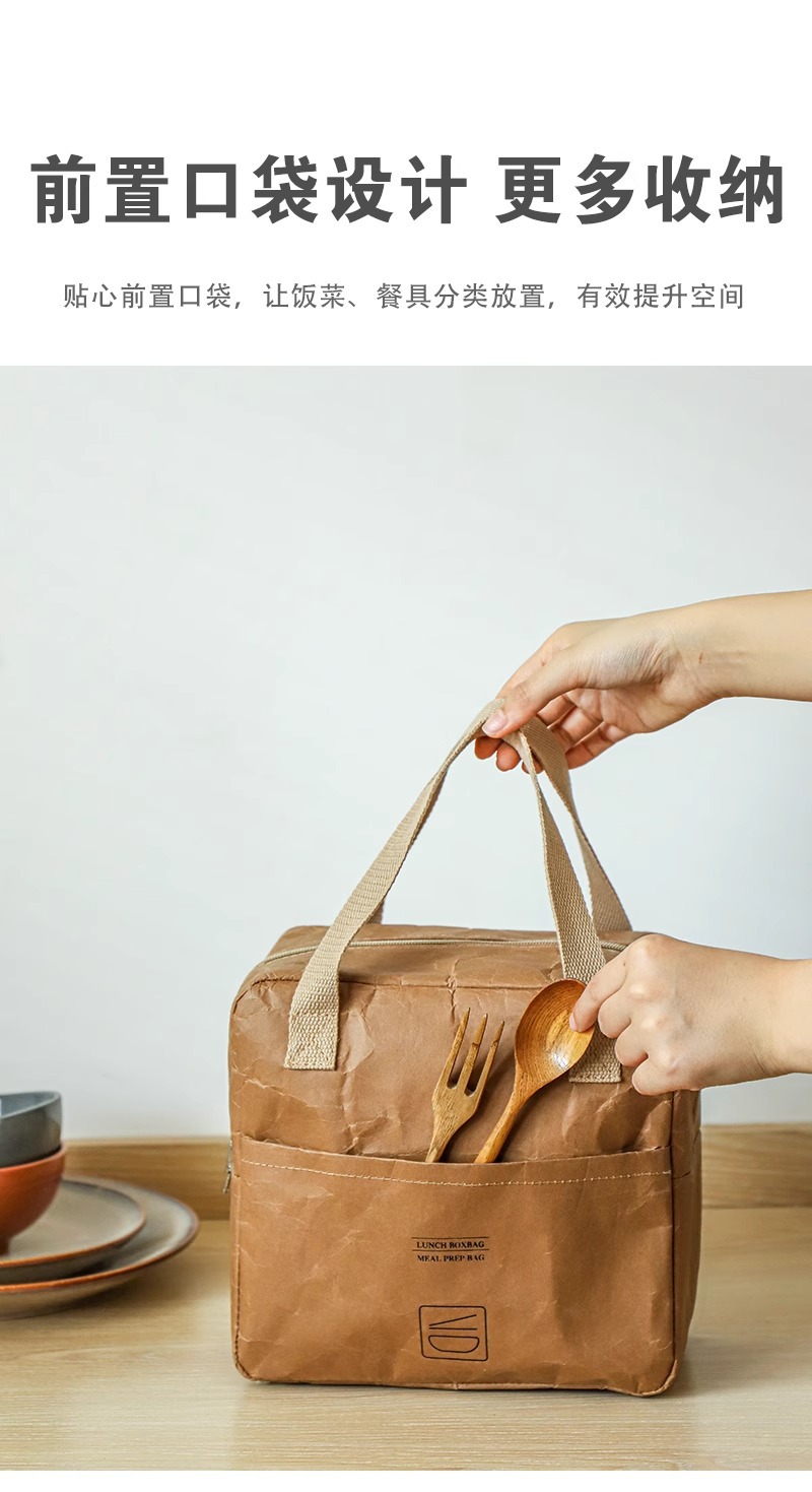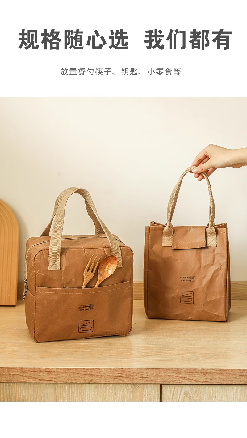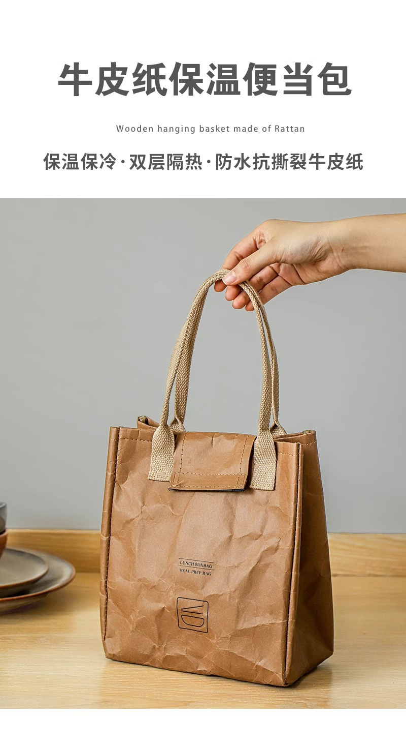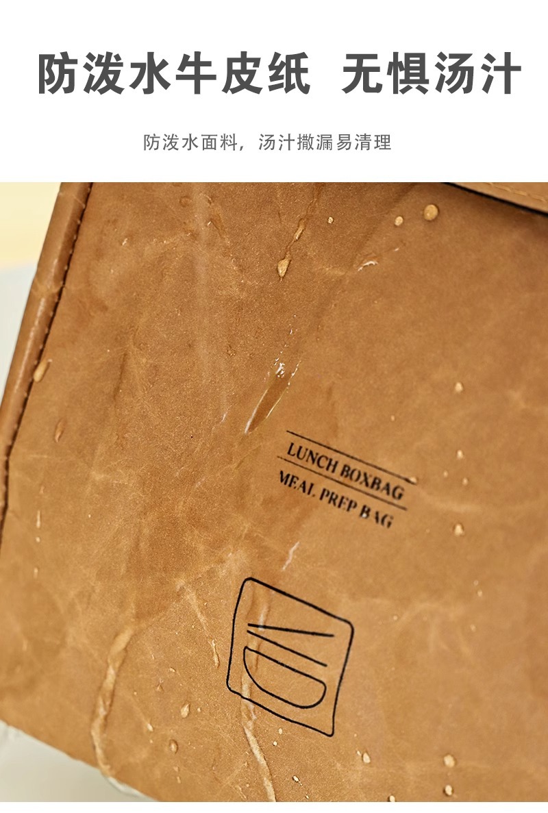 素朴时光加厚防水牛皮纸饭盒袋溜娃野餐包手提袋学生上班族便当包