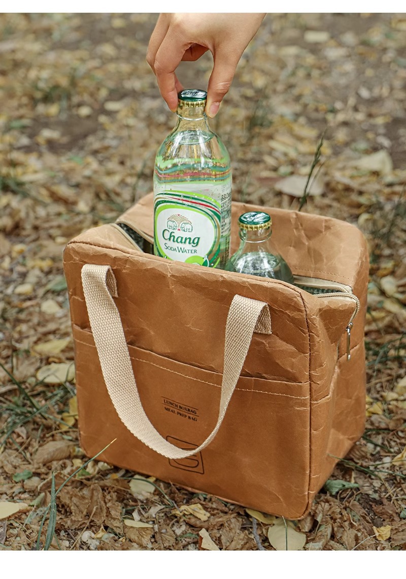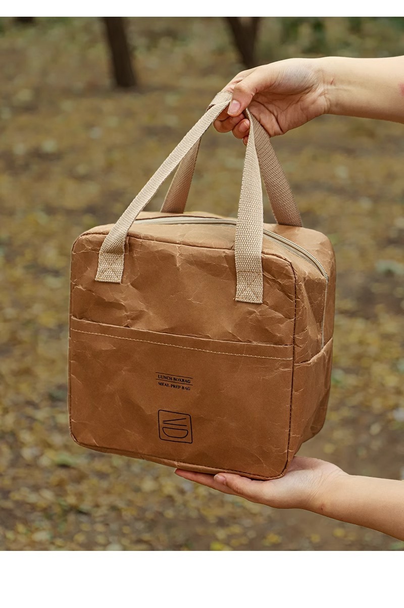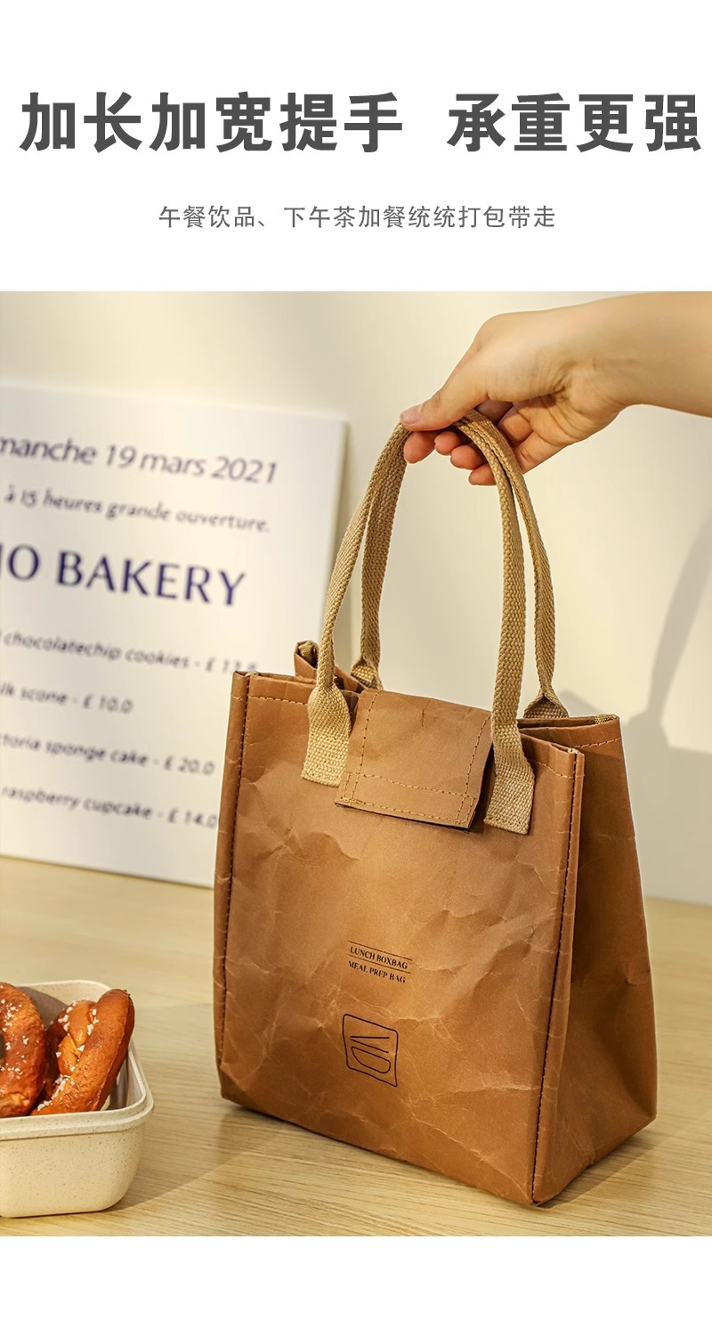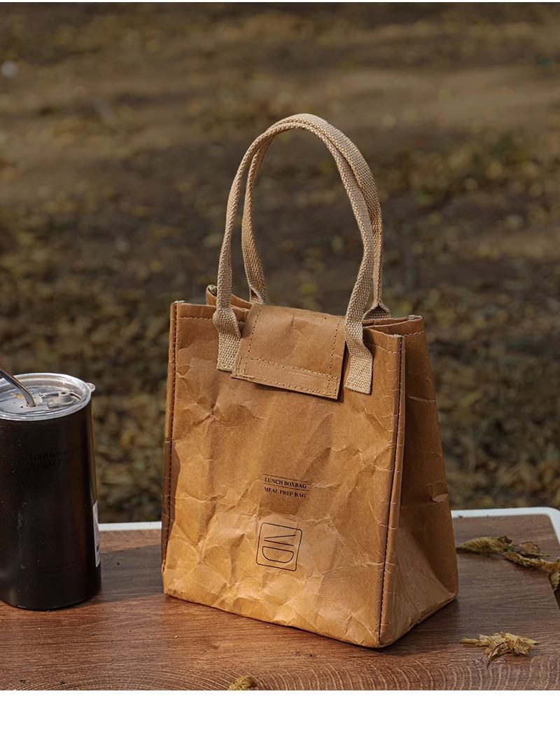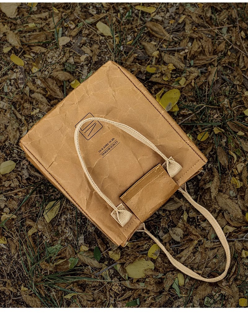 素朴时光加厚防水牛皮纸饭盒袋溜娃野餐包手提袋学生上班族便当包