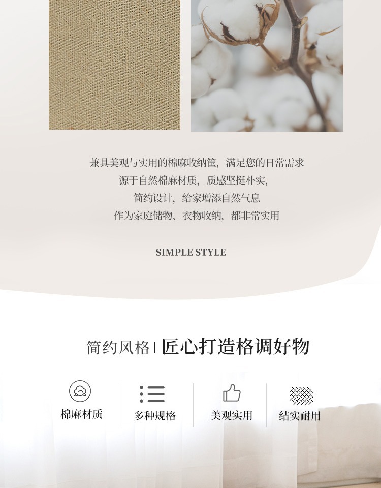 素朴日式家用衣物收纳盒棉麻布艺大容量可折叠收纳框可视窗整理箱